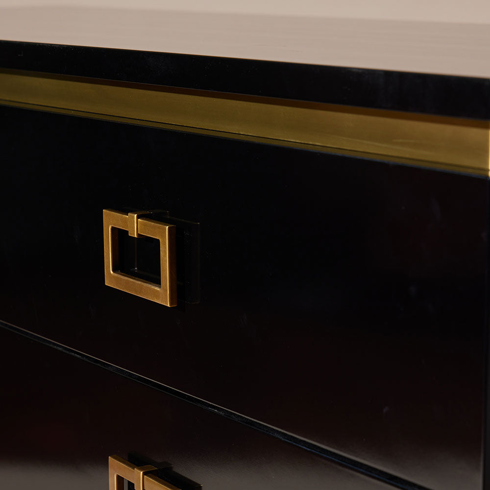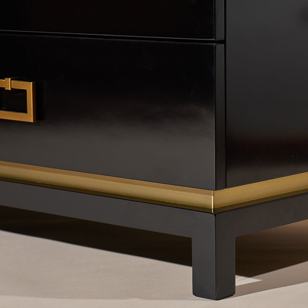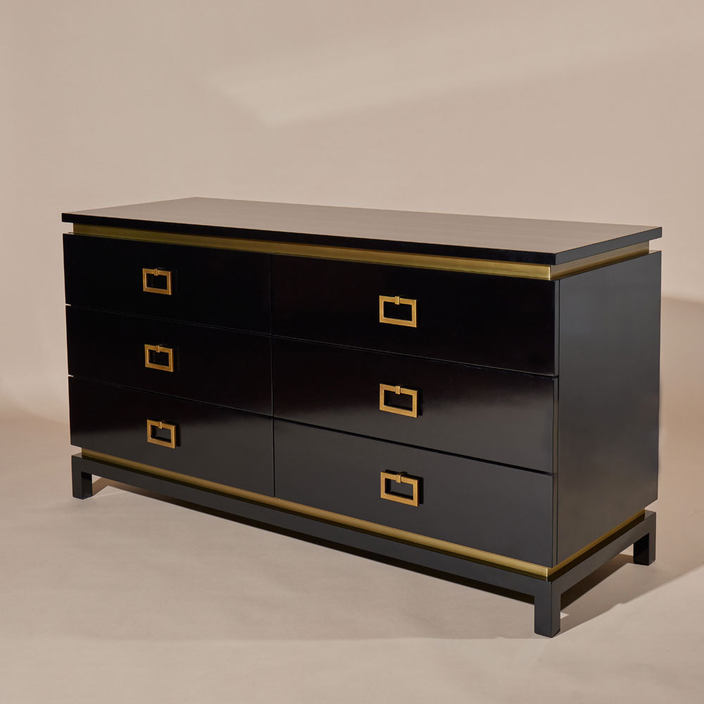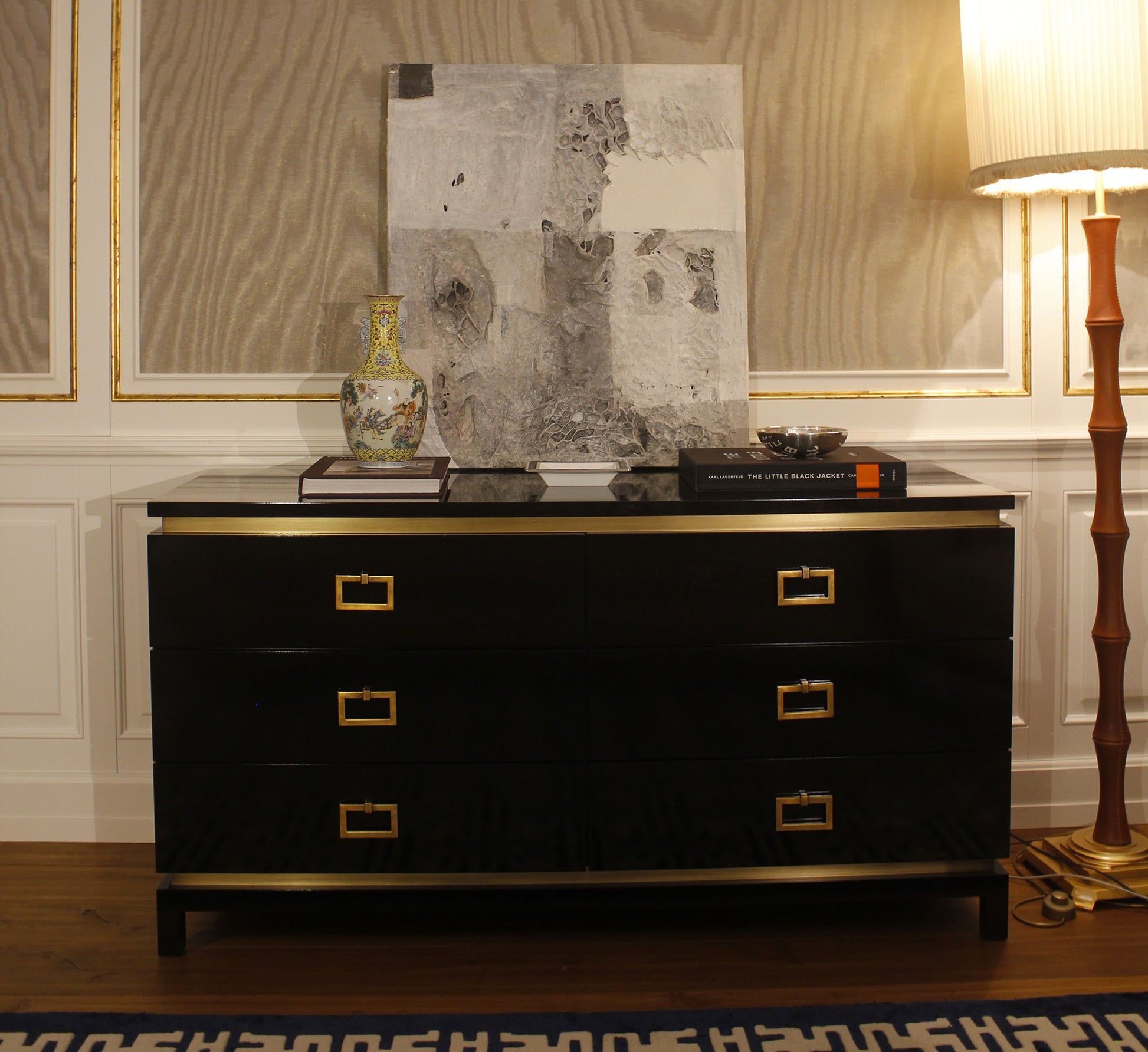 A chest of drawers characterized by the dialogue between its contemporary shape and its Asian tone. Materials and finishes recall the ancient chinoiserie, giving a range of contrasts and elegant reflections.