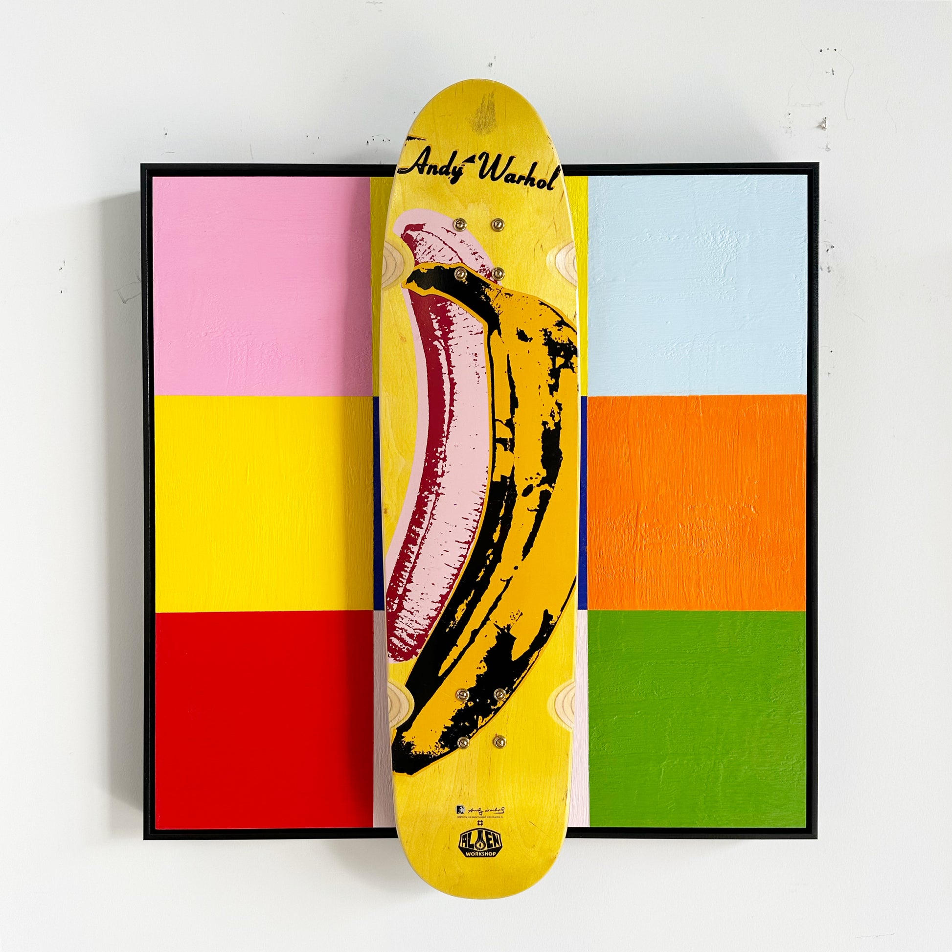 In Deck series. Encaustic and Andy Warhol Foundation x Alien Workshop Skate Deck float-mounted on board.