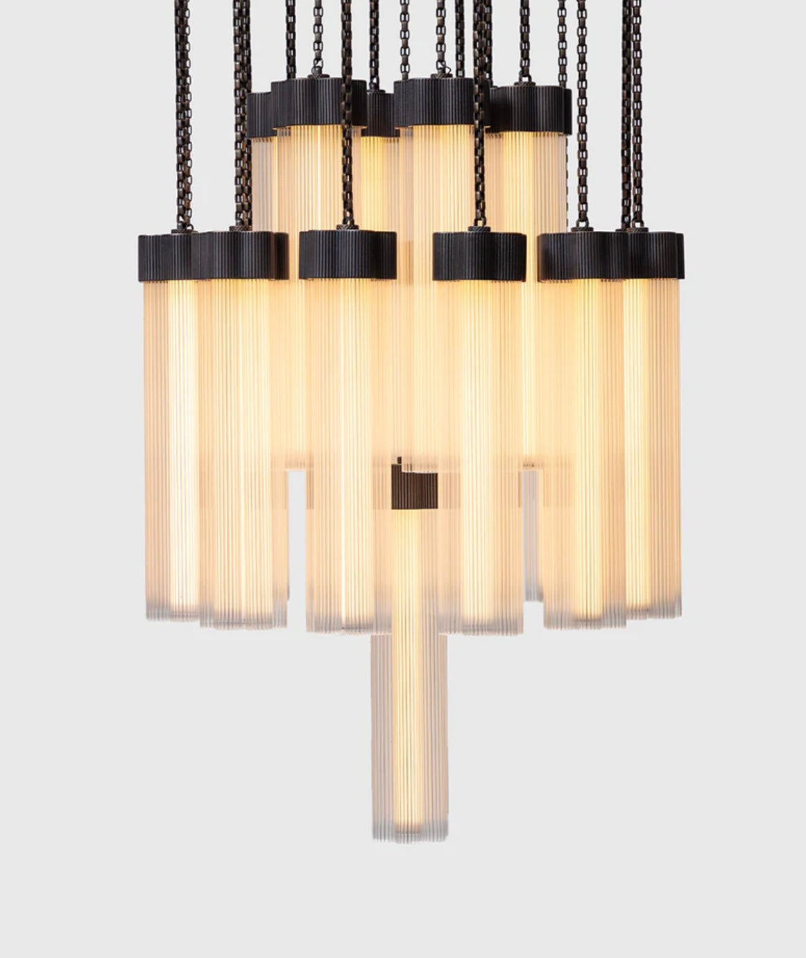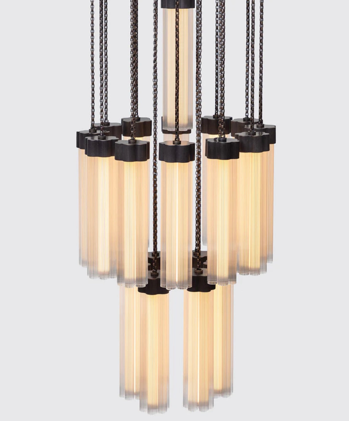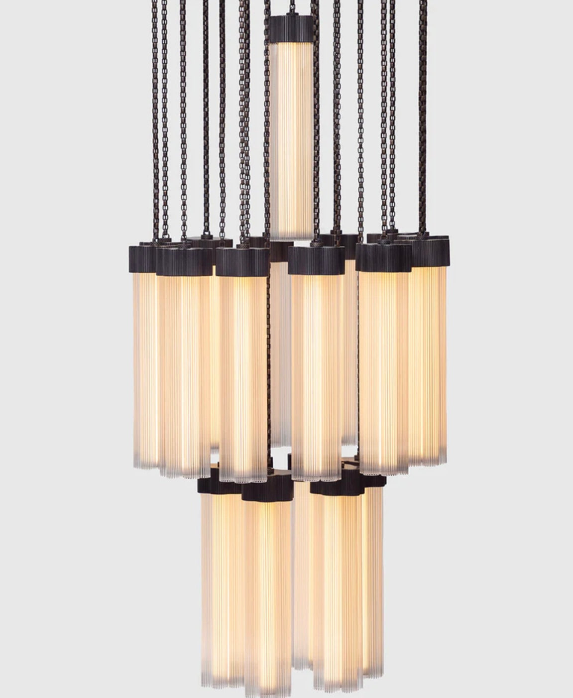 Delphi, a versatile new lighting collection designed by Jamie Gray, is constructed of cast and machined brass paired with fluted glass tubing, paying homage to iconic Greek columns. The proprietary brass chain allows for a variety of lighting configurations and adjustment to suit any ceiling height and multiple use cases. Continuing the engineering innovations that Matter Made is known for, Delphi features a custom LED array, providing 360-degrees of light within each cluster.
