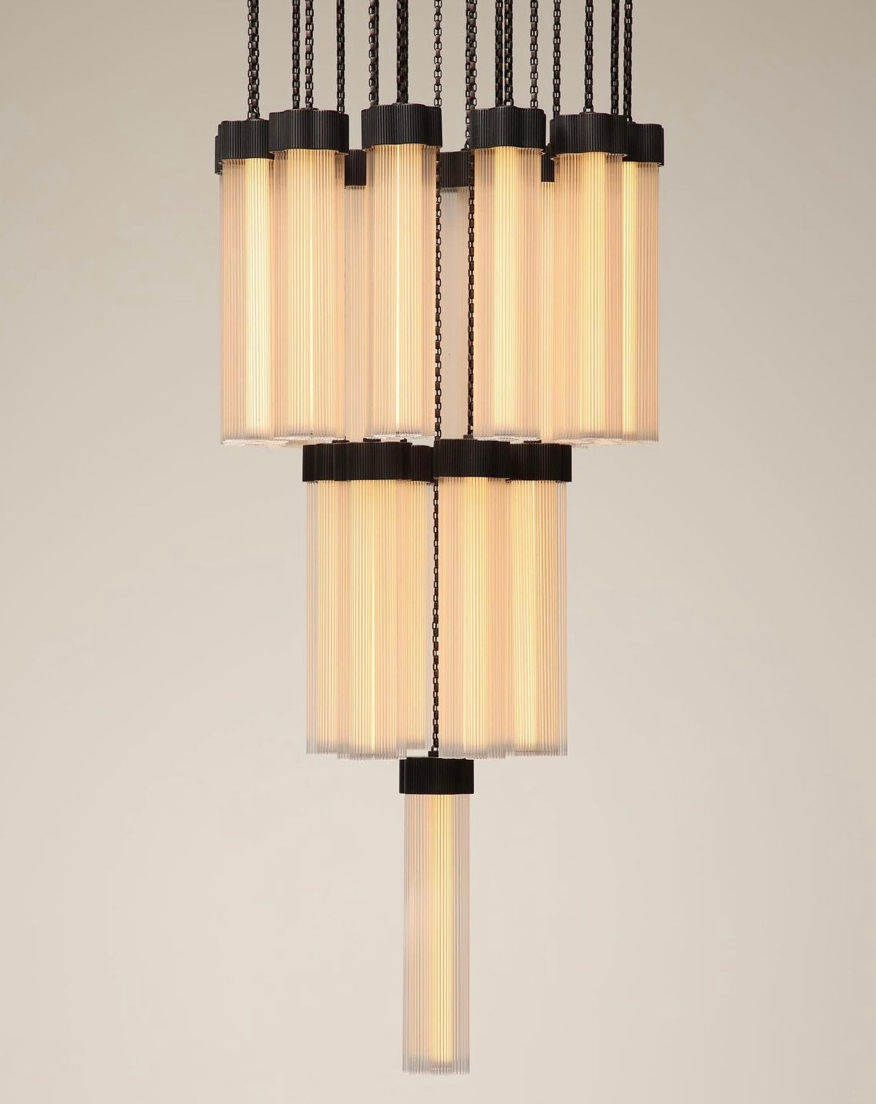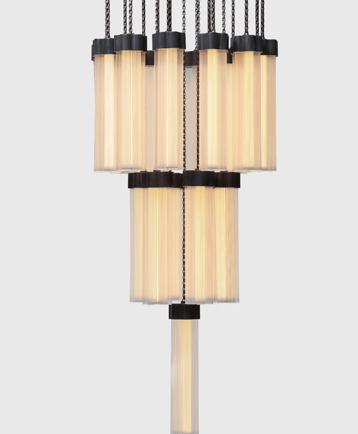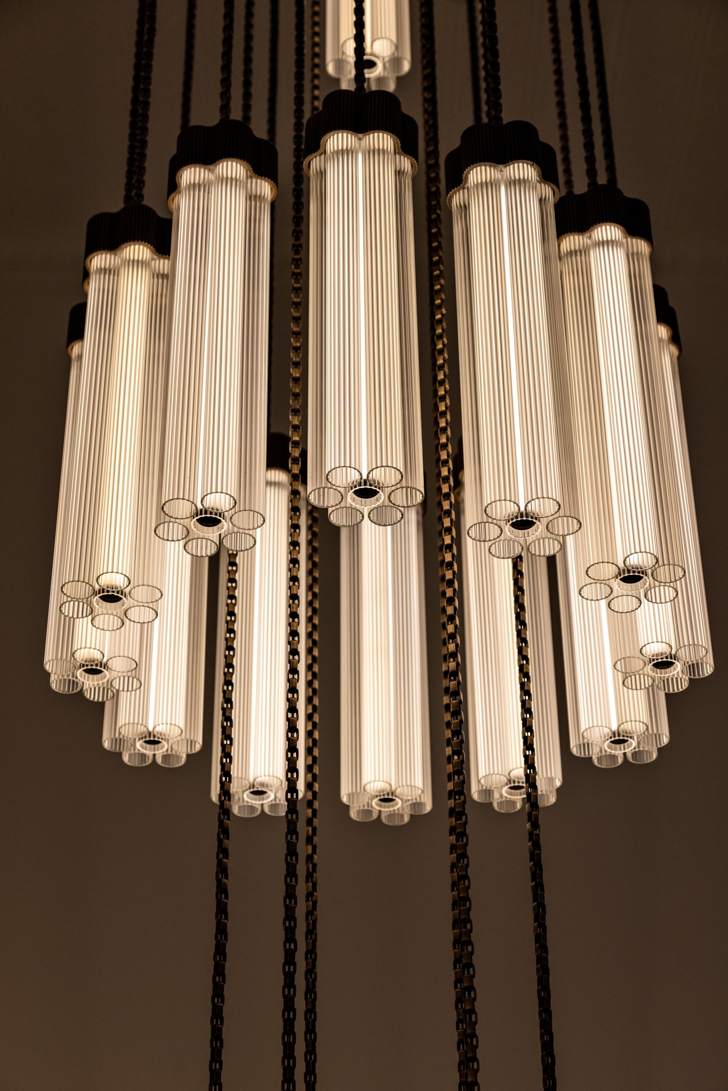 Delphi, a versatile new lighting collection designed by Jamie Gray, is constructed of cast and machined brass paired with fluted glass tubing, paying homage to iconic Greek columns. The proprietary brass chain allows for a variety of lighting configurations and adjustment to suit any ceiling height and multiple use cases. Continuing the engineering innovations that Matter Made is known for, Delphi features a custom LED array, providing 360-degrees of light within each cluster.