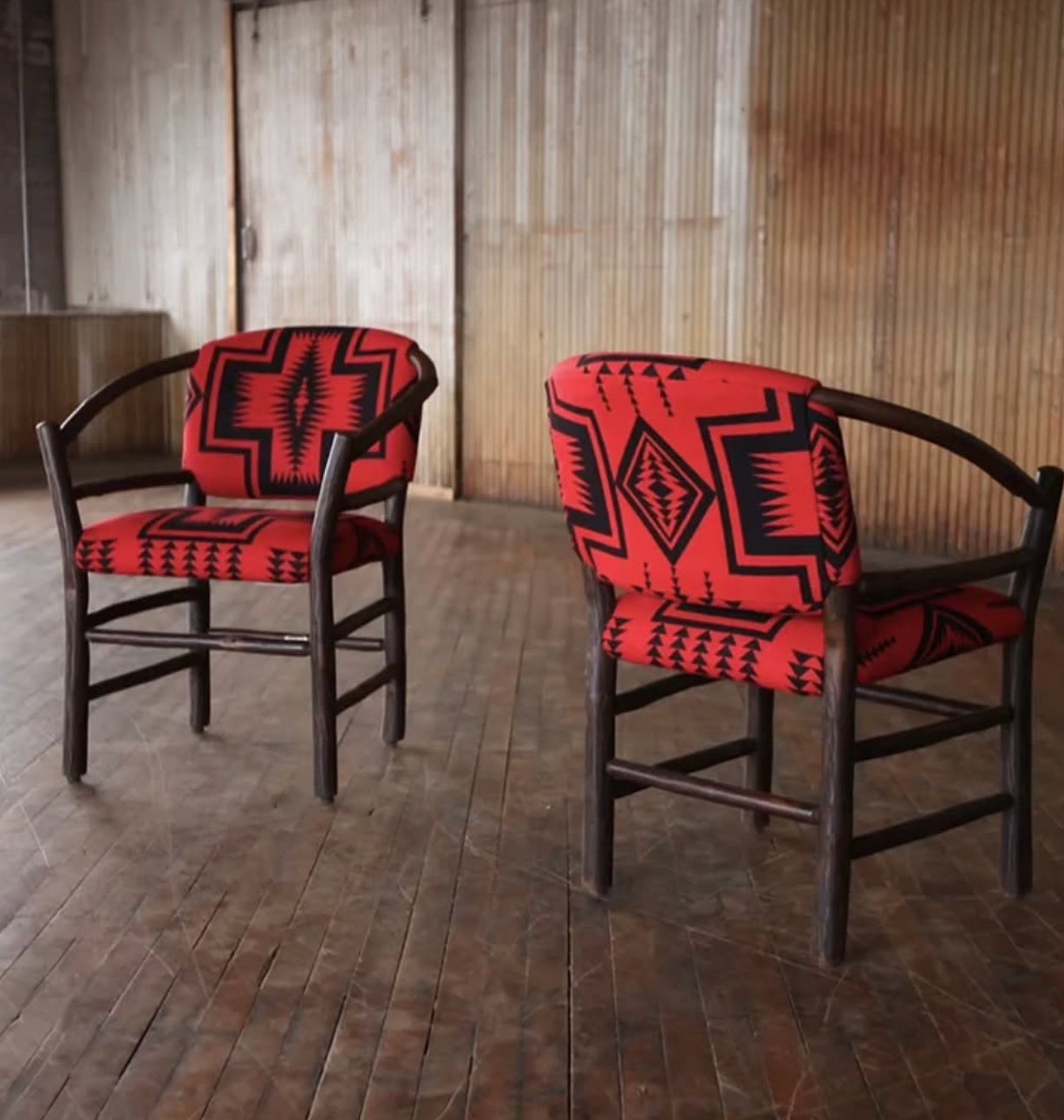 This piece is made custom with a COM fabric and the frame can come in a multitude of stains and finishes specific to hickory wood. It also comes un-upholstered. Please reach out to discuss details and pricing - email hello@forsythart.com.