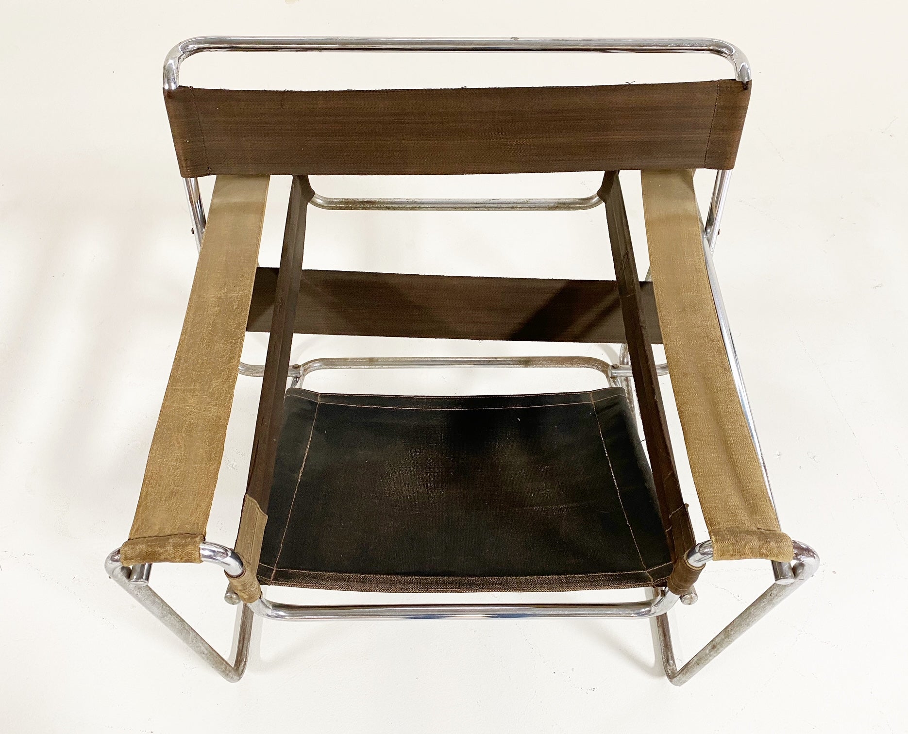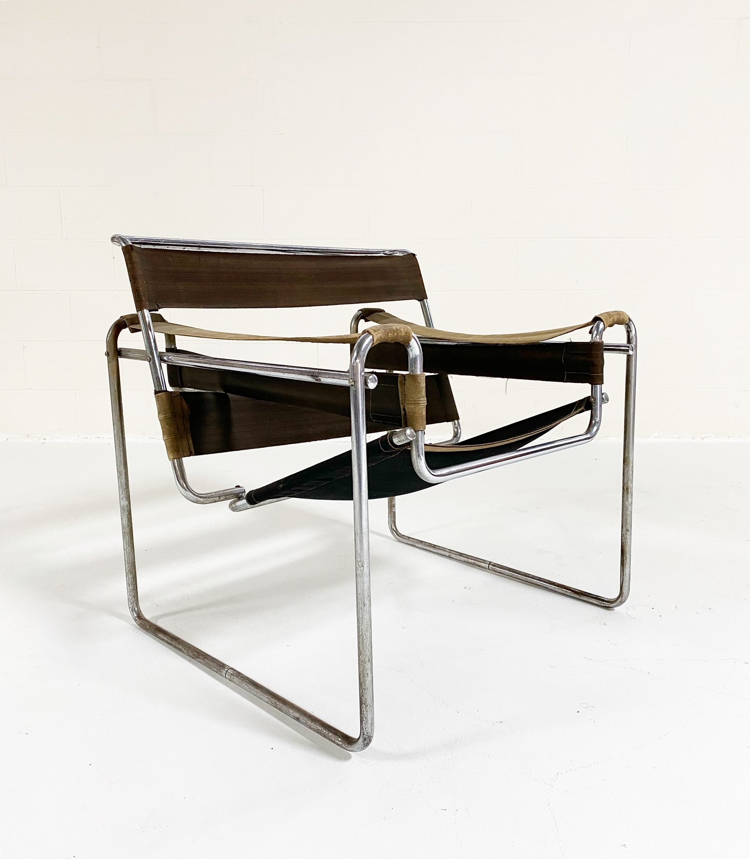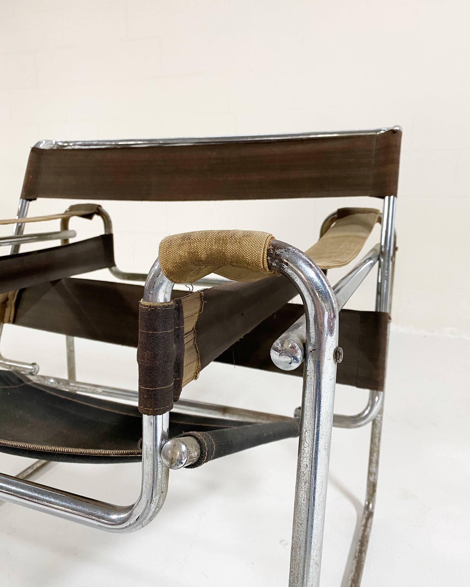 This is an early edition "Wassily" from Berlin based manufacturer, Standard-Möbel. It exhibits the original army green Eisengarn canvas. A truly iconic design, deserving to be in a museum.