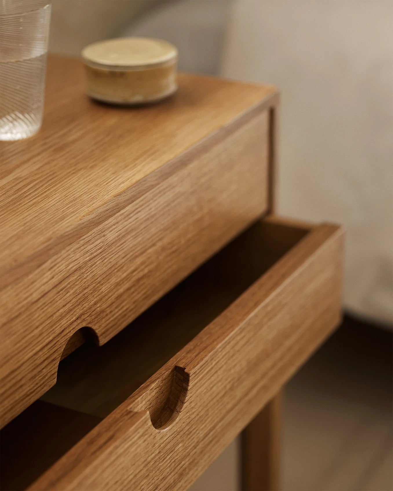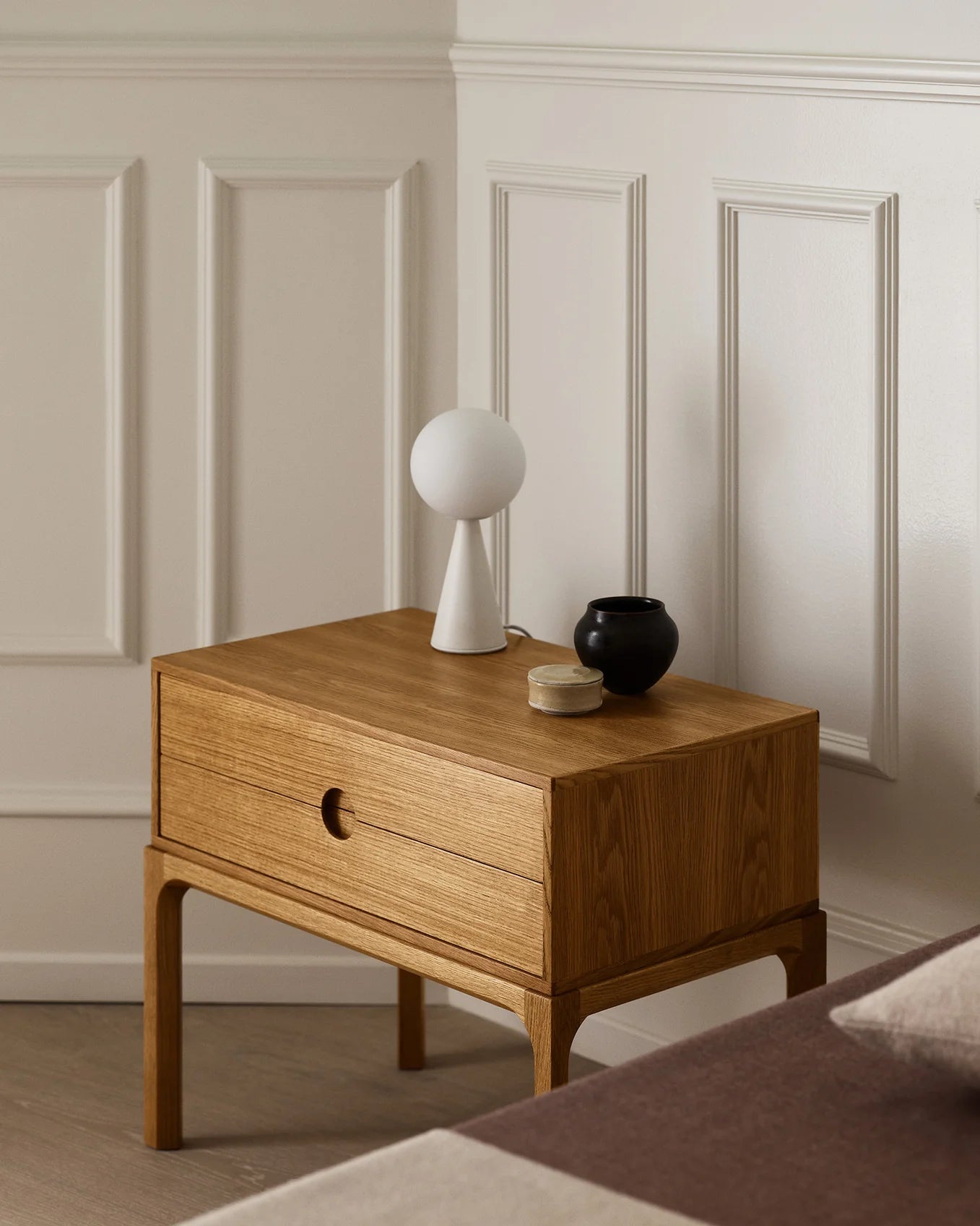 A key figure in the Danish Modern movement, Kai Kristiansen designed the iconic Entre series in 1956 as a modular collection of bedside cabinets, benches, and chests. These new editions of the Entre Bedside Table are made in small batches in Denmark and available in two heights in both oak and walnut.