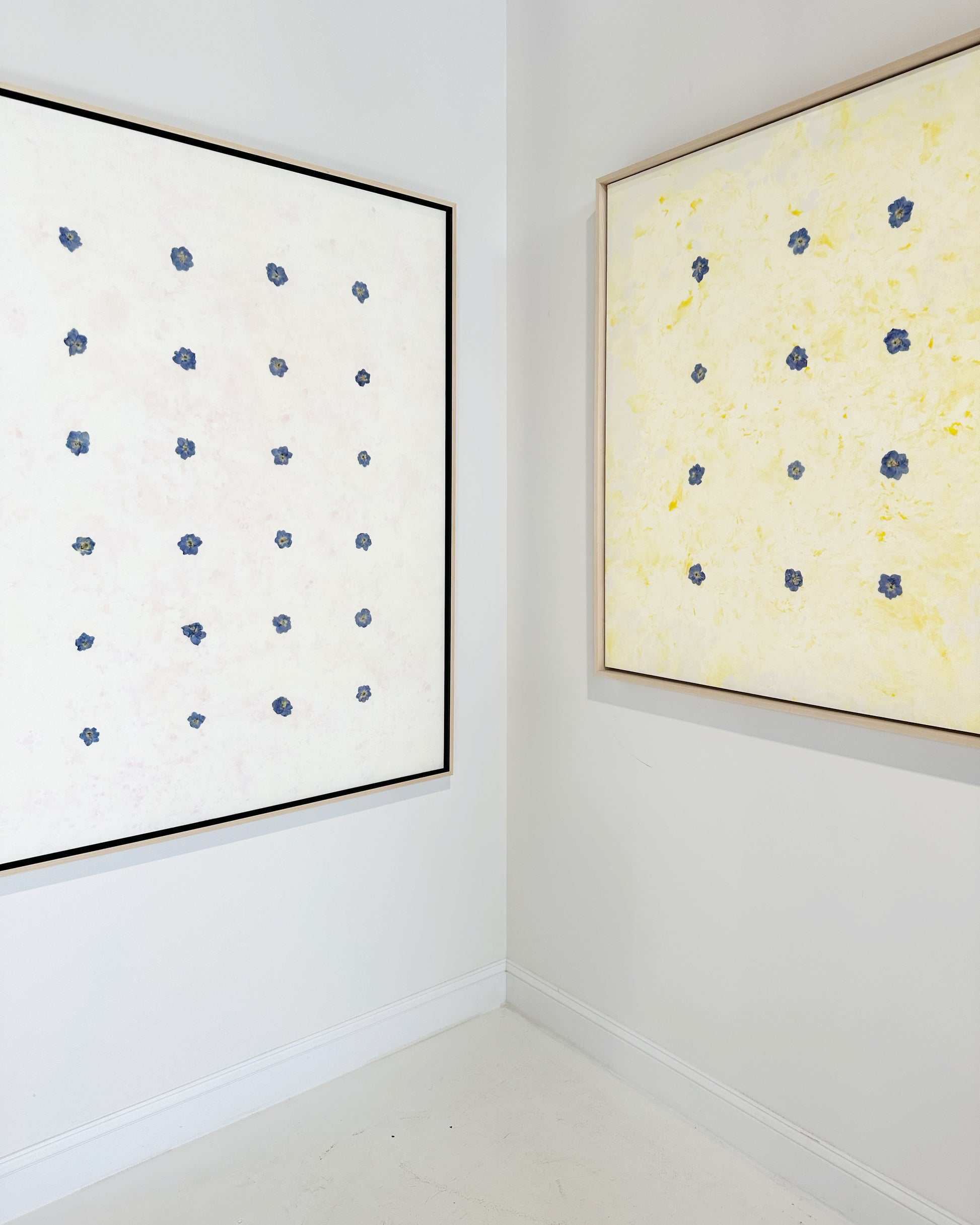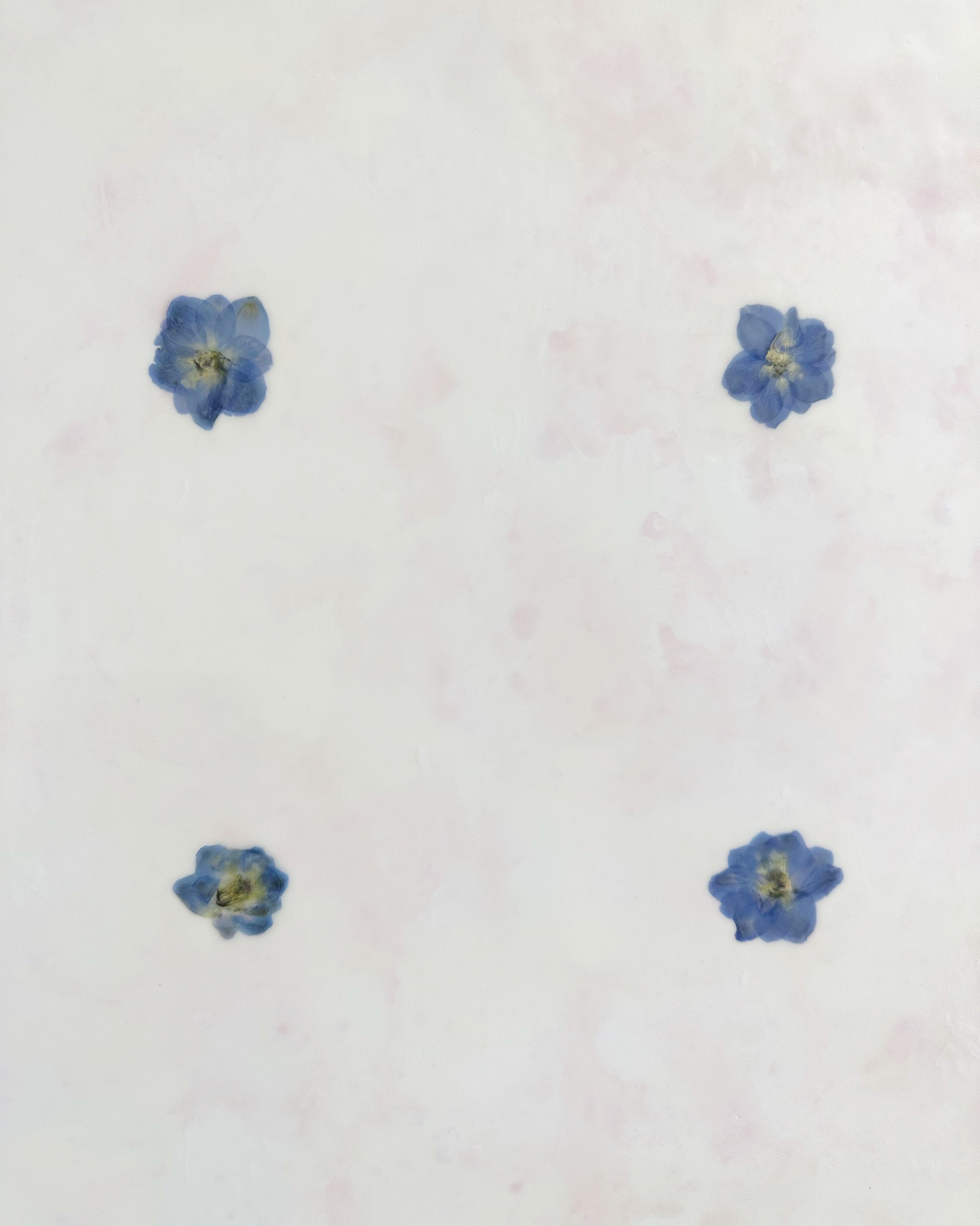 In Fiori series. Encaustic and dried larkspur flowers on board.