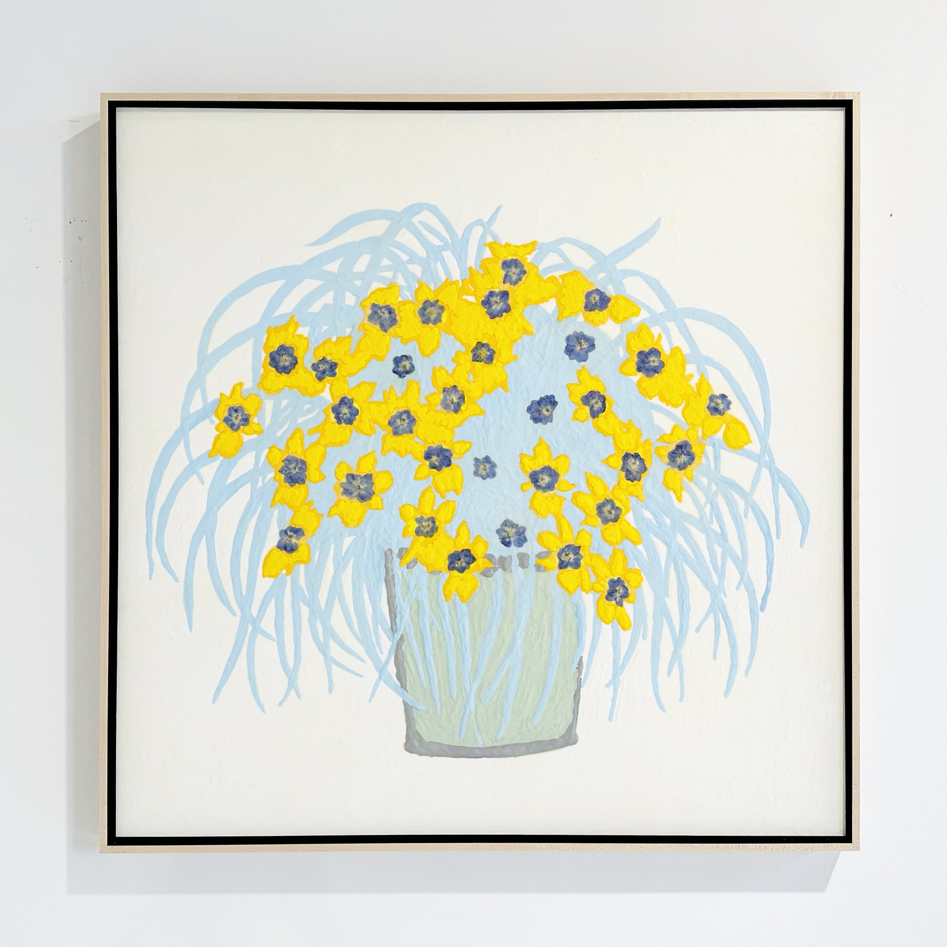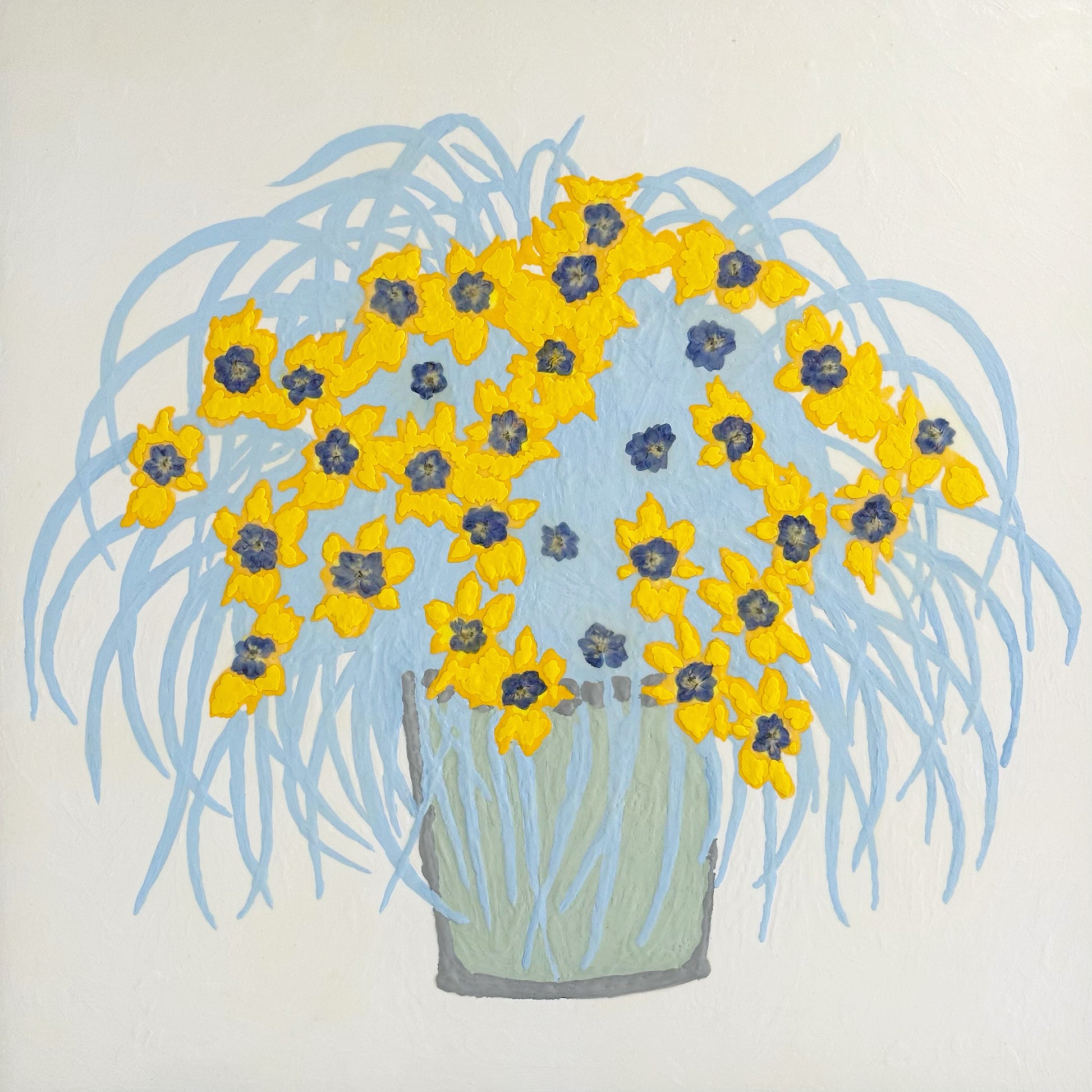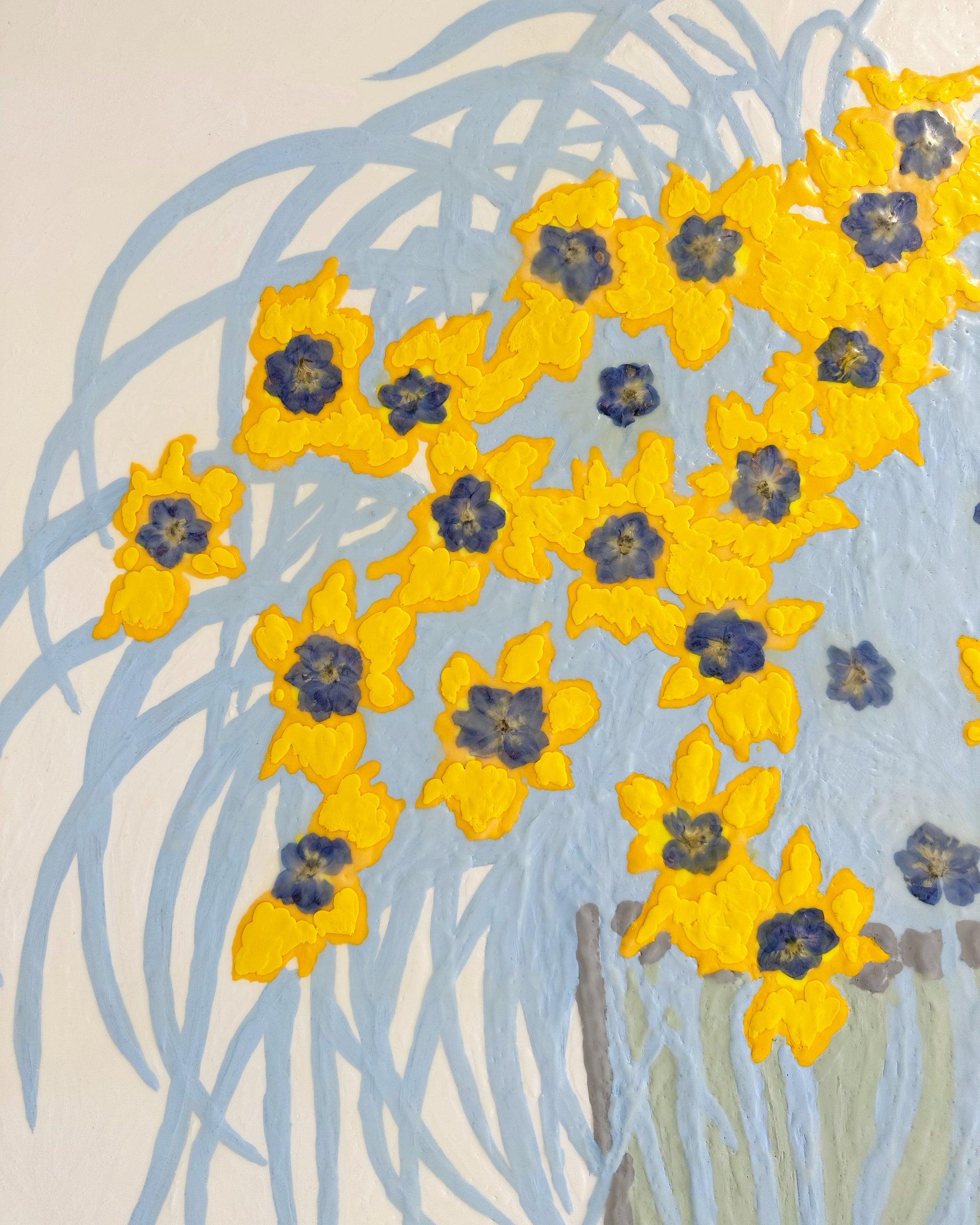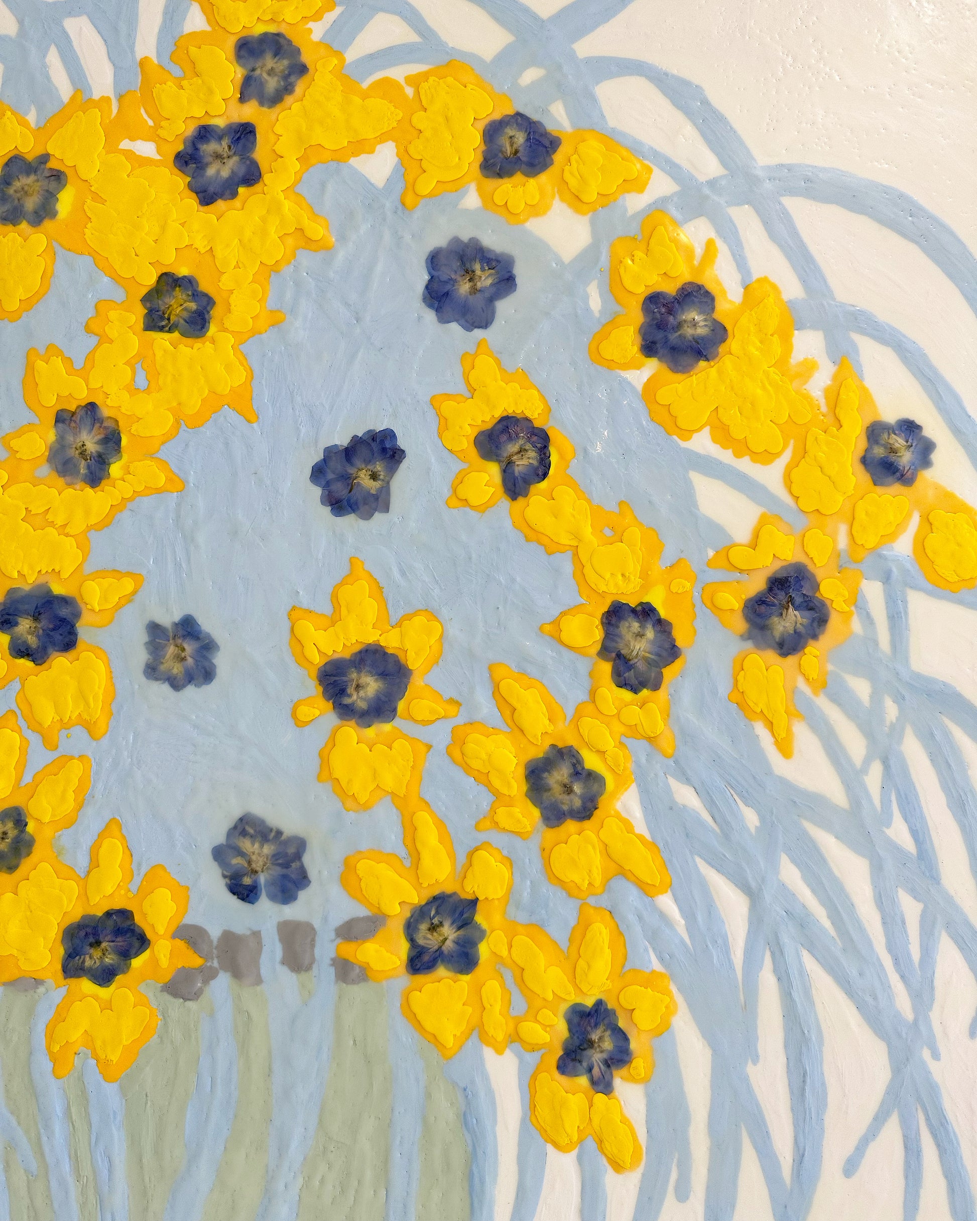 In Fiori series. Encaustic and dried larkspur flowers on board.