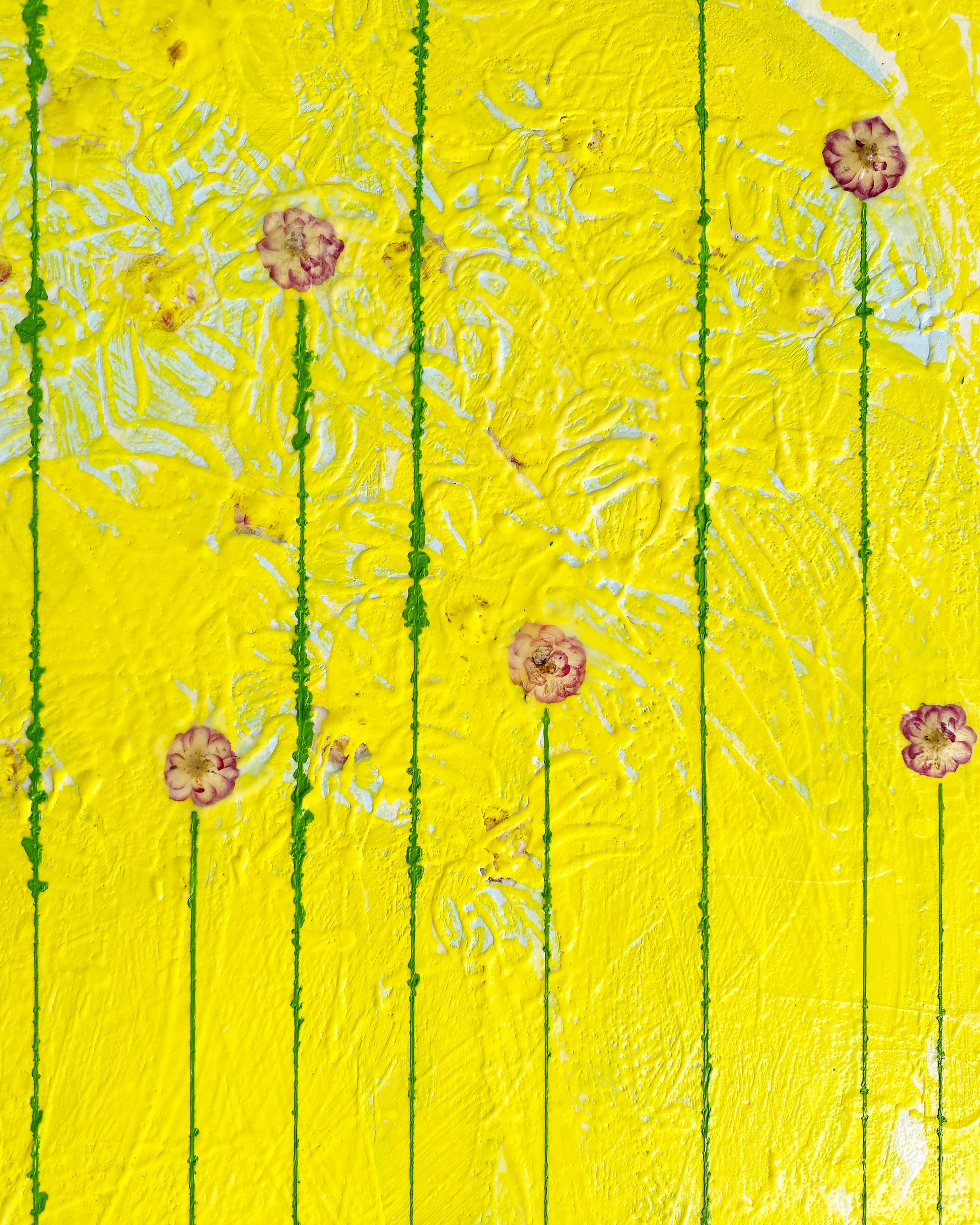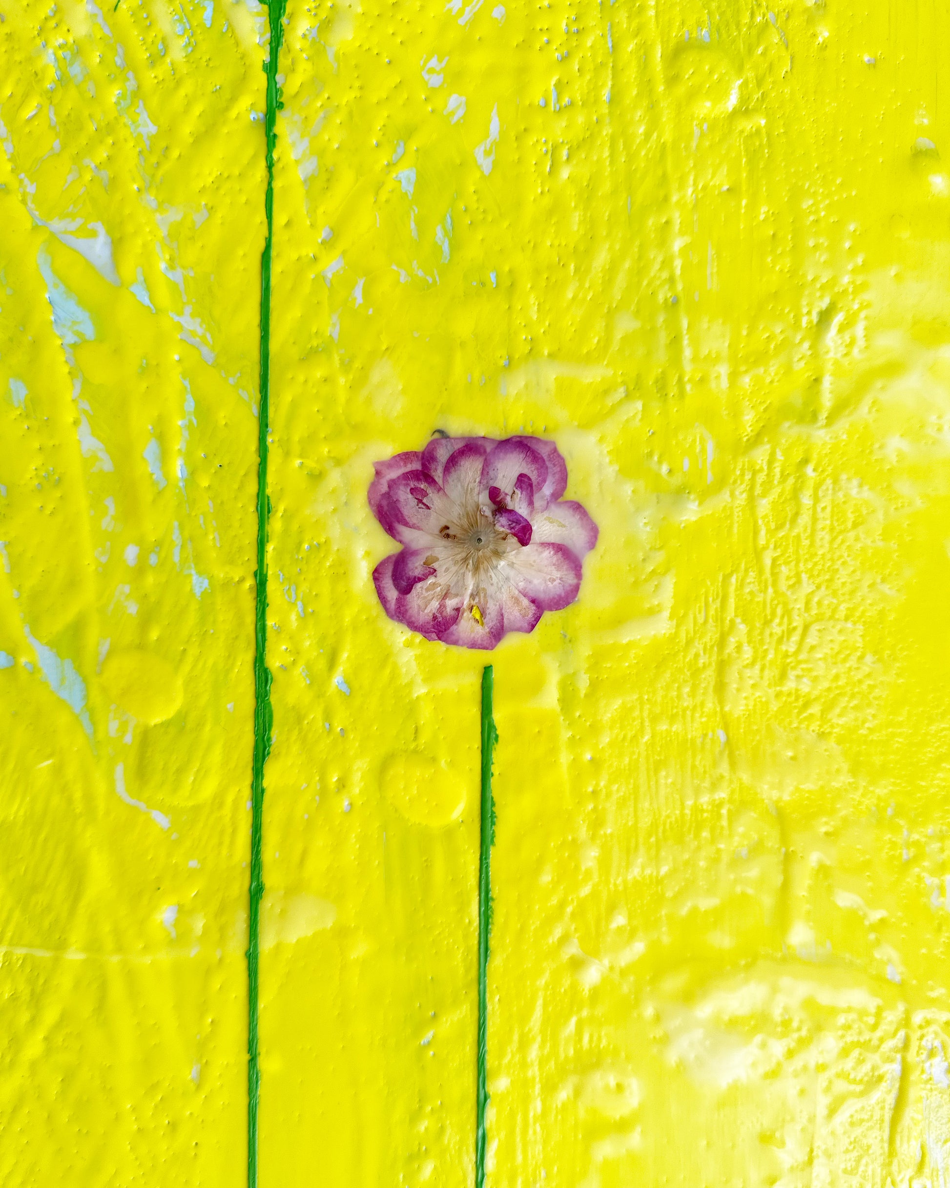 In Fiori series. Encaustic and dried larkspur flowers on board.
