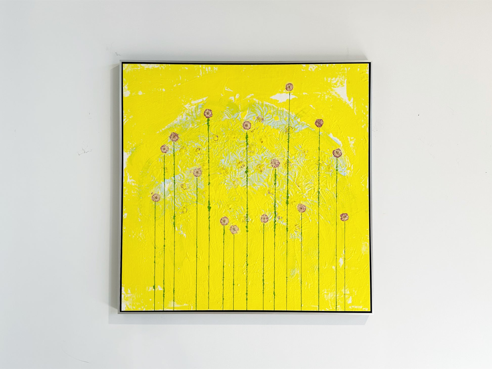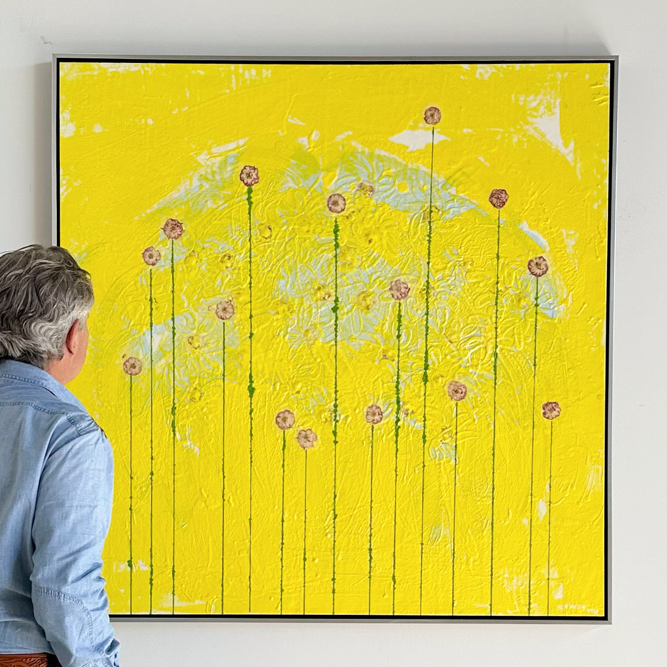 Art Dimensions: 48 H x 48 W inches and Framed Dimensions: 49.5 H x 49.5 W inches.