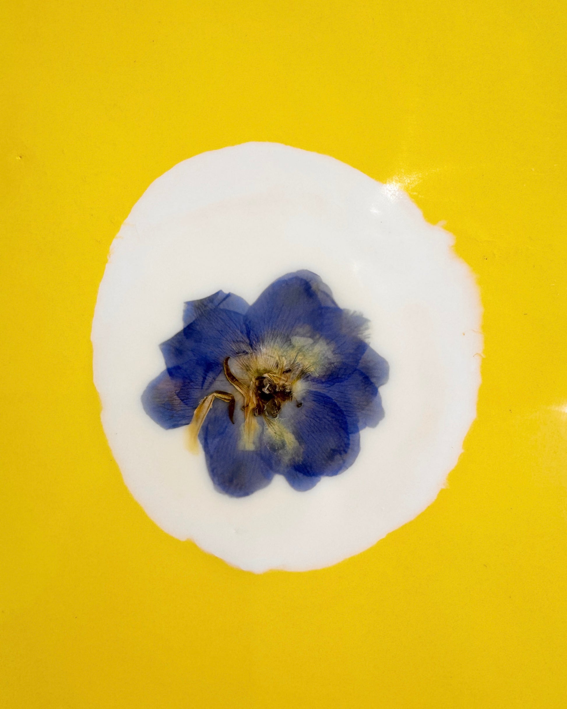 In Fiori series. Encaustic and dried larkspur flowers on board.Art