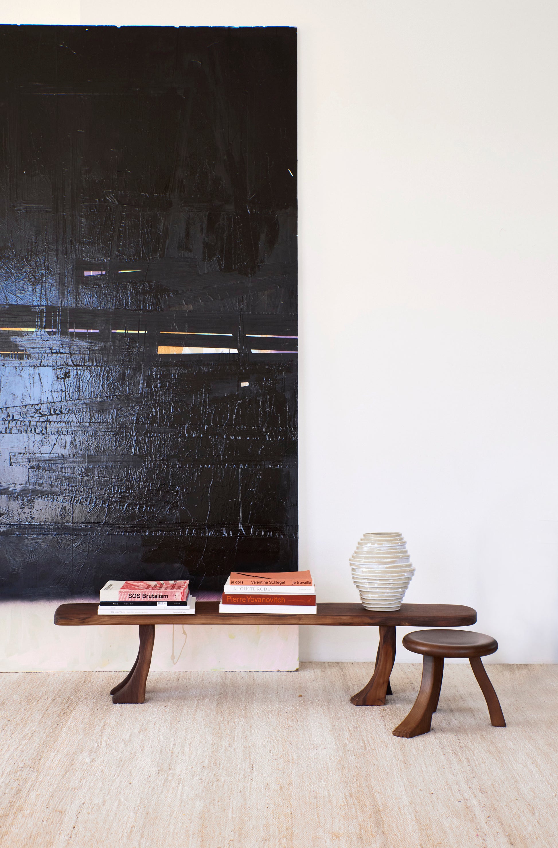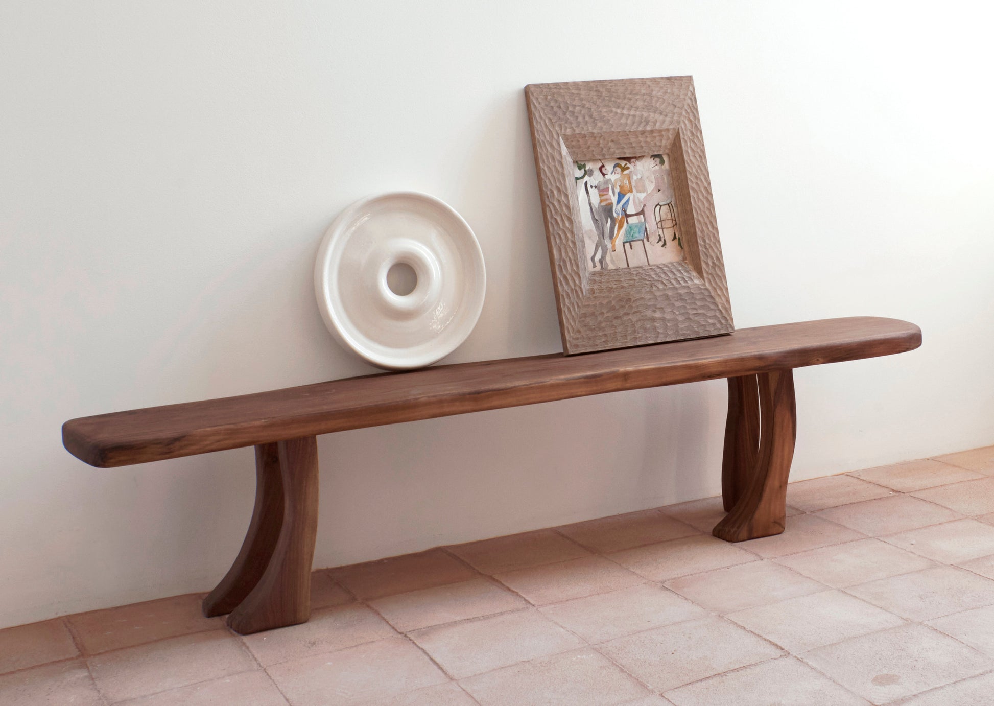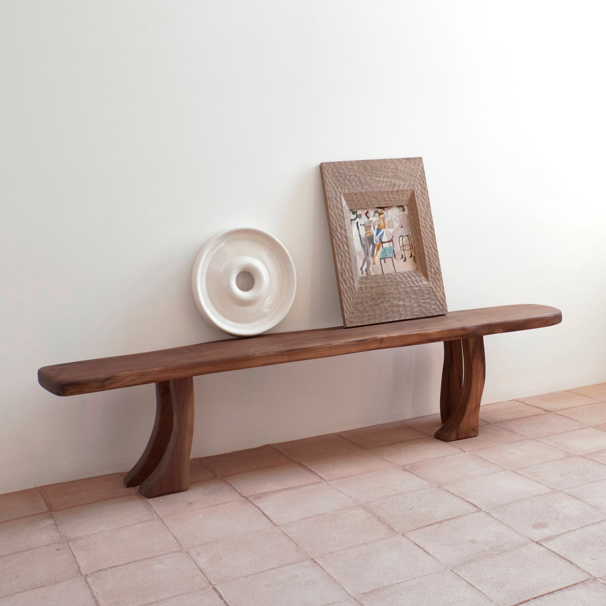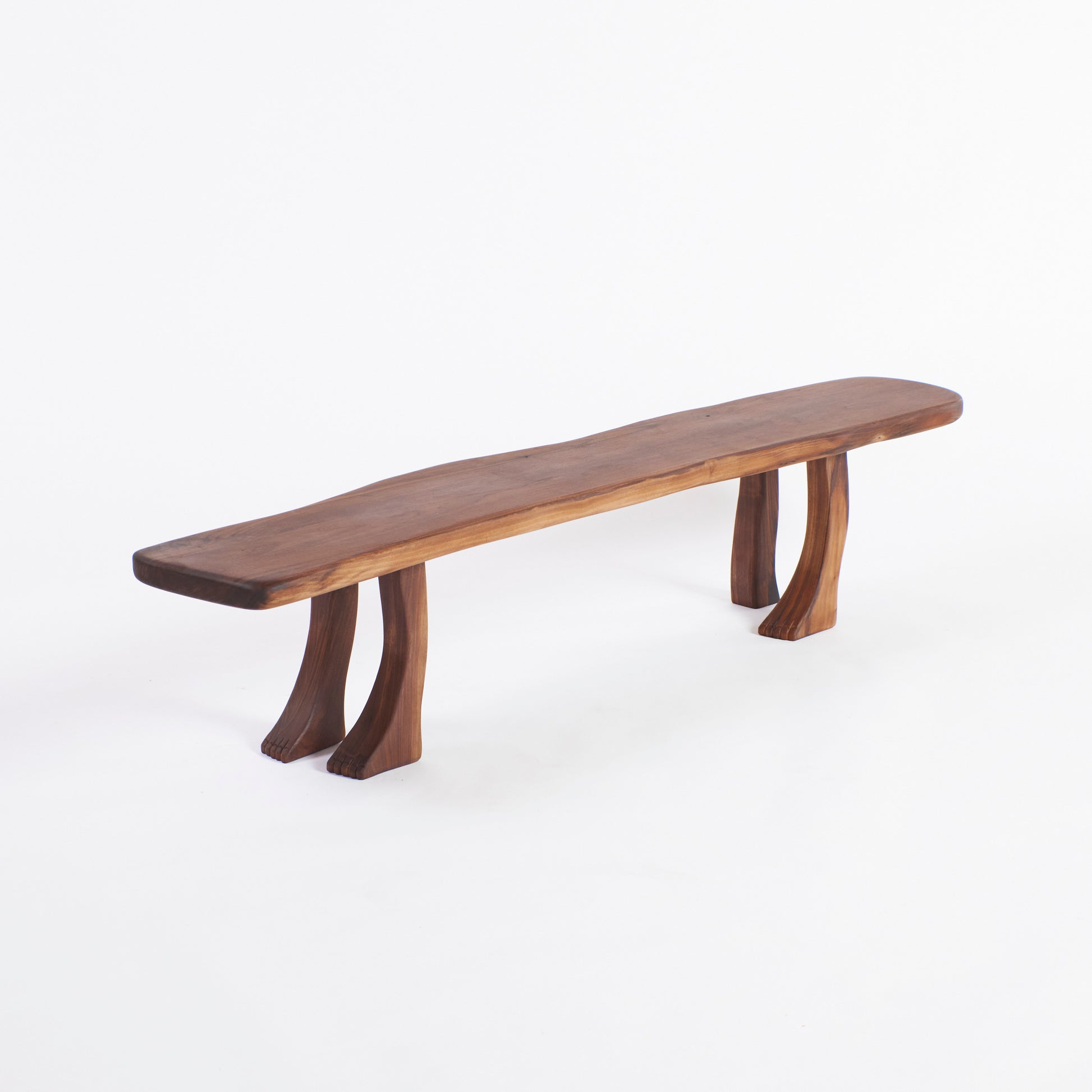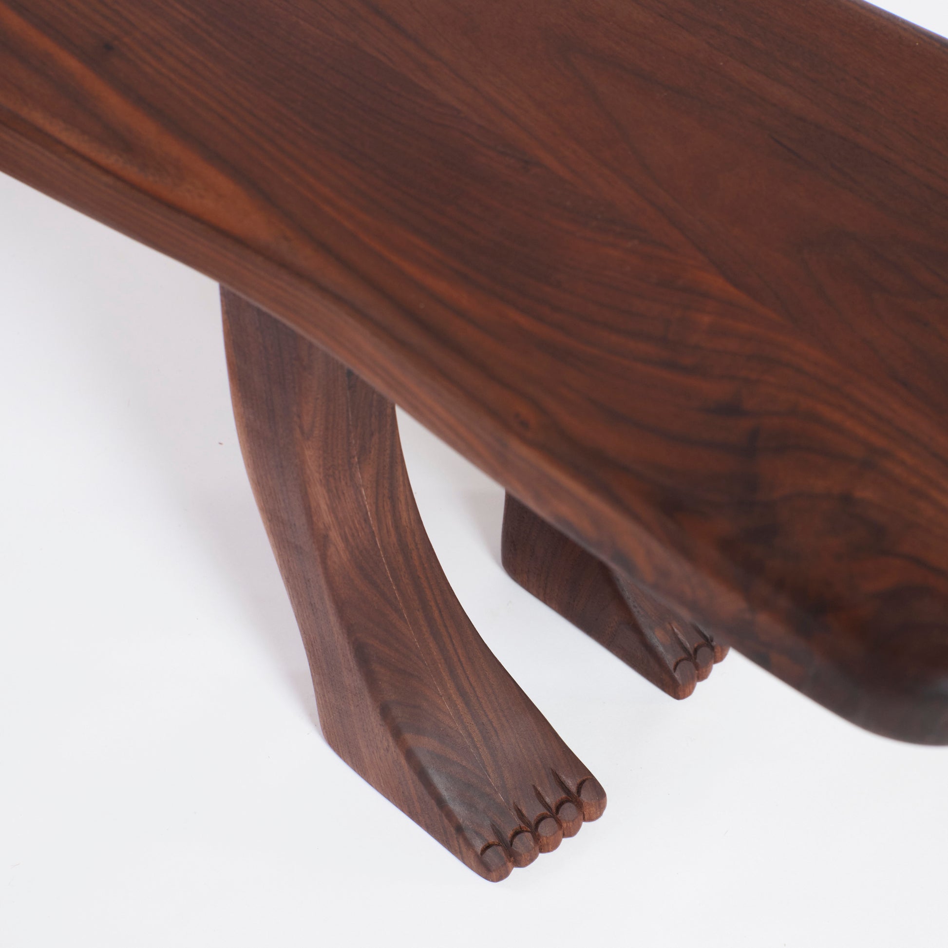 This playful design is part of Project 213A's hand carved wooden "Foot Collection," inspired by a classic milking stool, this bench comes with three foot shaped legs and one uneven leg. The bench is hand carved by artisans in northern Portugal from chestnut wood and oil finished to have a smooth finished.