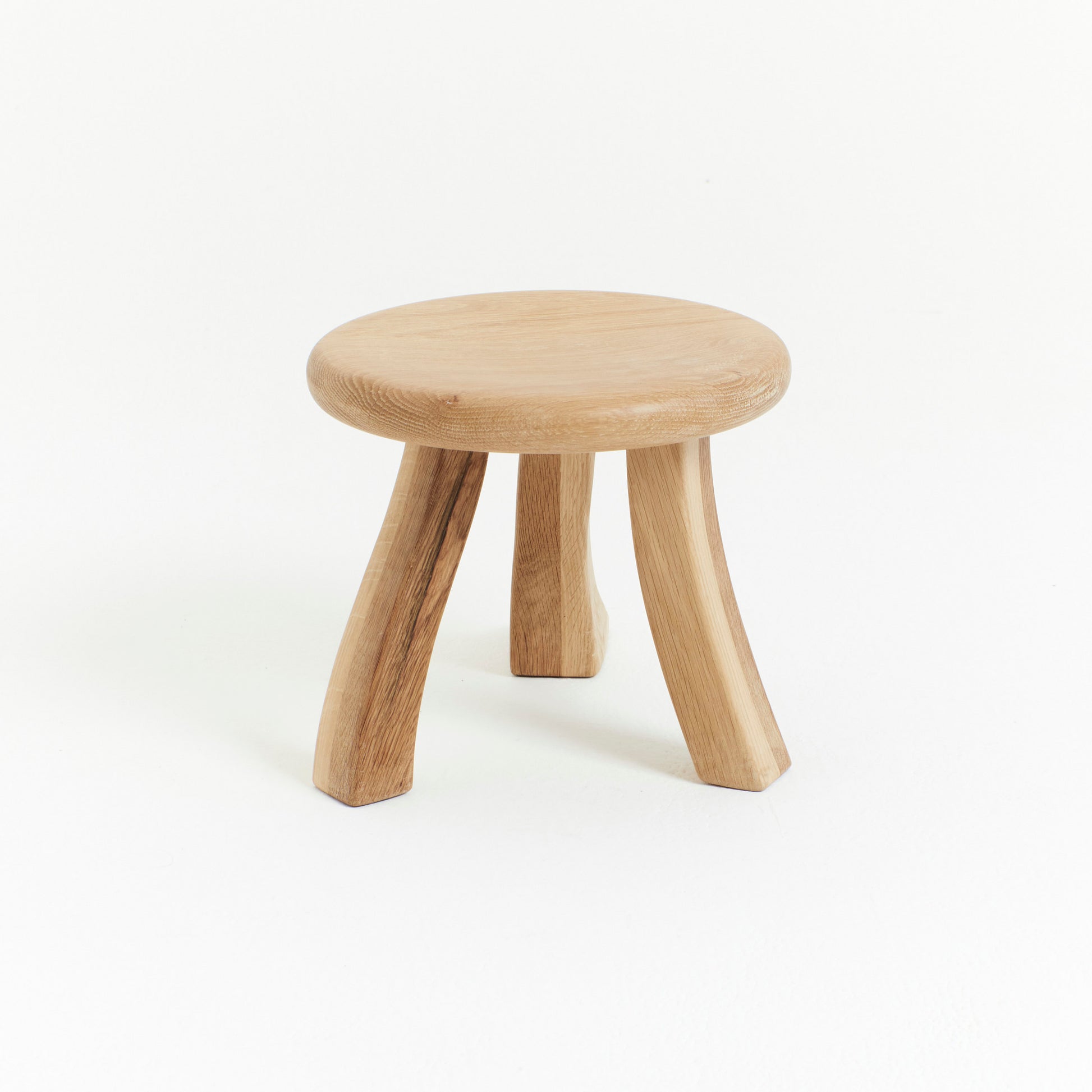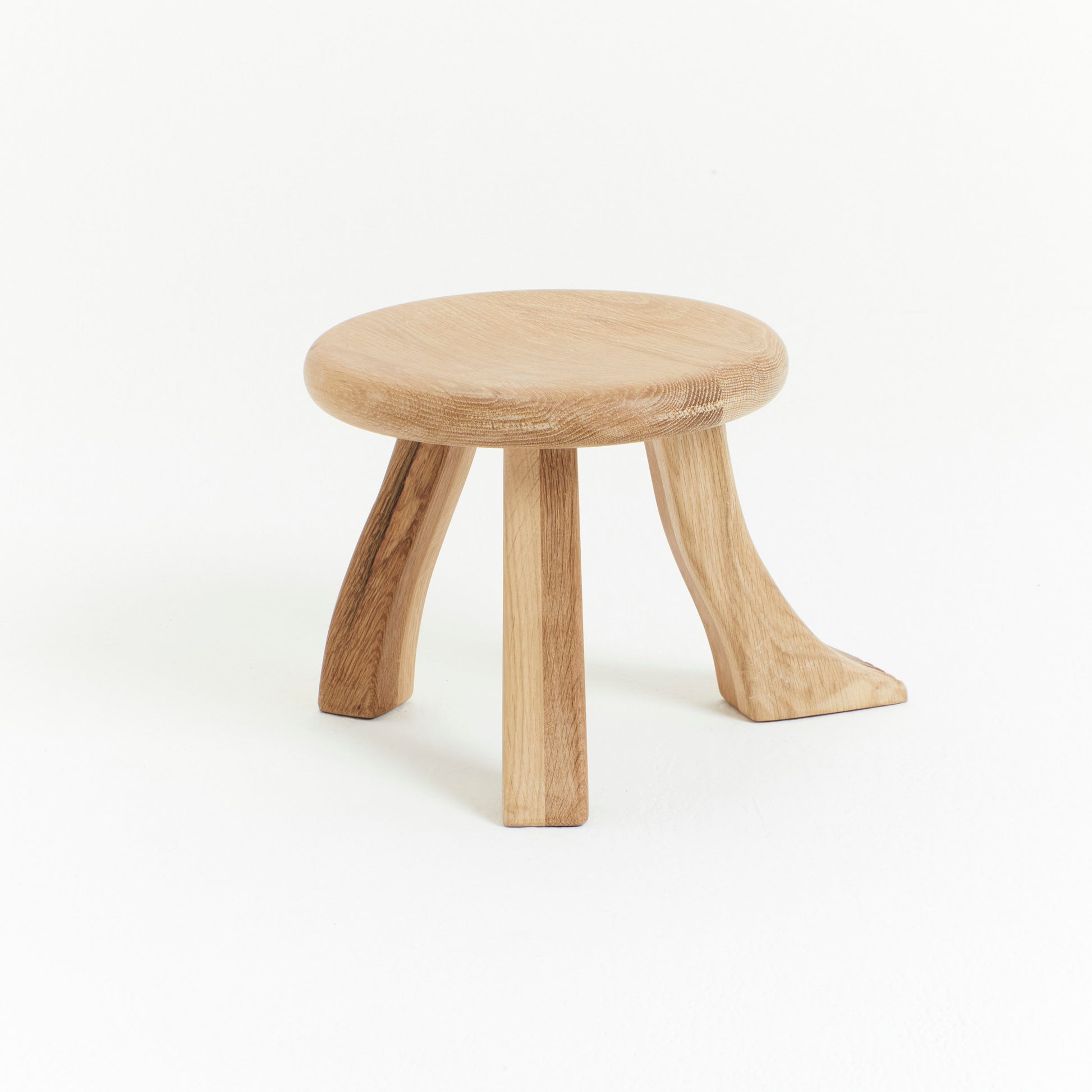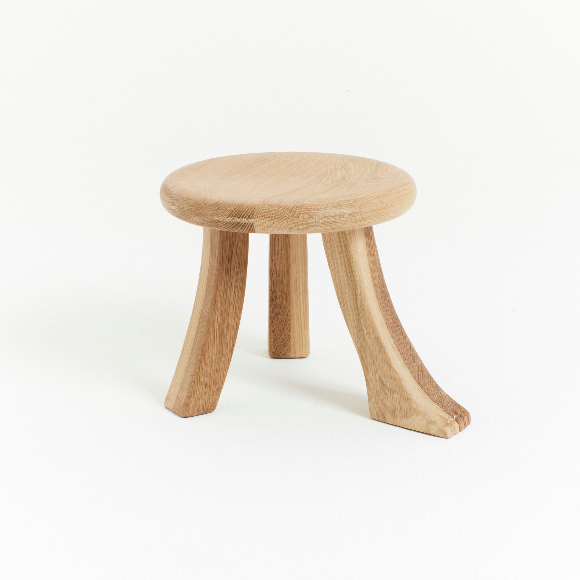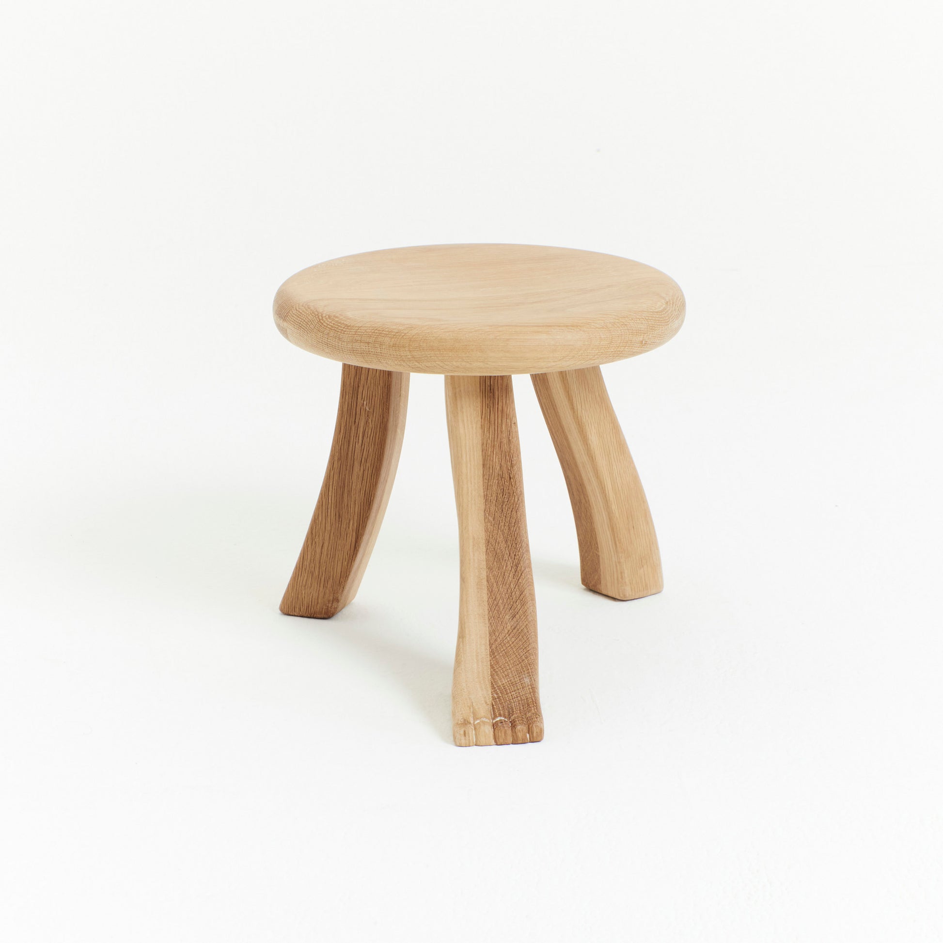 This playful design is inspired by a classic milking stool, and has a fun twist with three individually shaped legs. The stool is hand carved by artisans in northern Portugal from oak wood and oil finished to have a rich appearance.