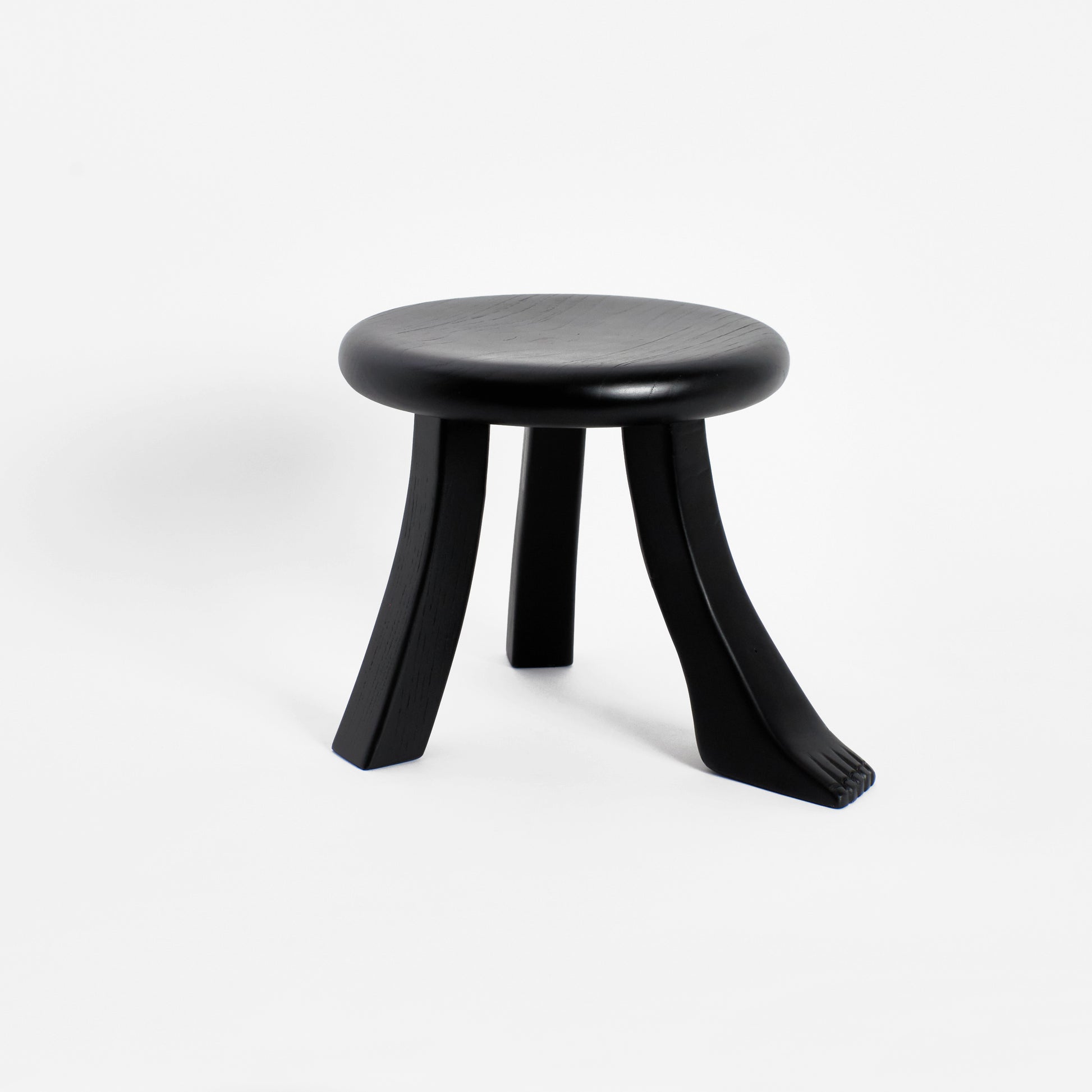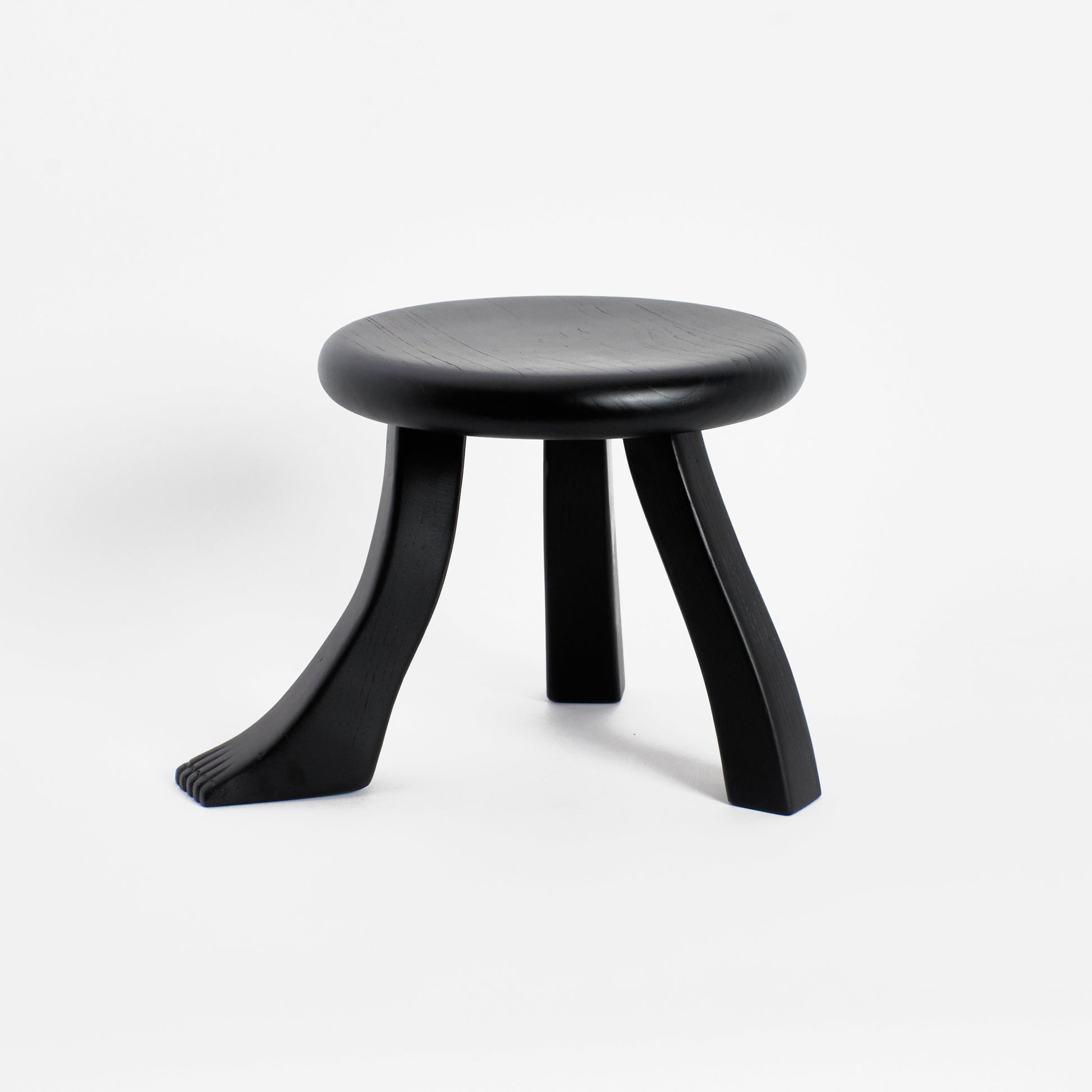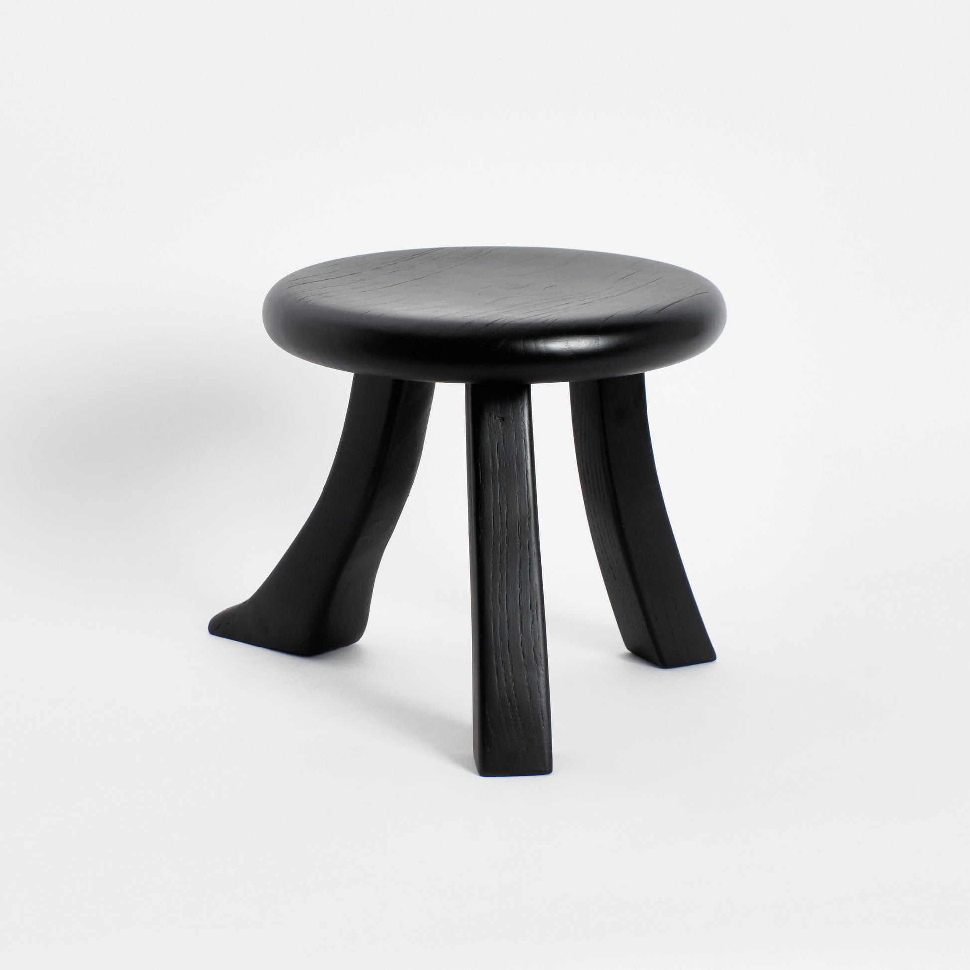 This playful design is inspired by a classic milking stool, and has a fun twist with three individually shaped legs. The stool is hand carved by artisans in northern Portugal from oak wood and oil finished to have a rich appearance.
