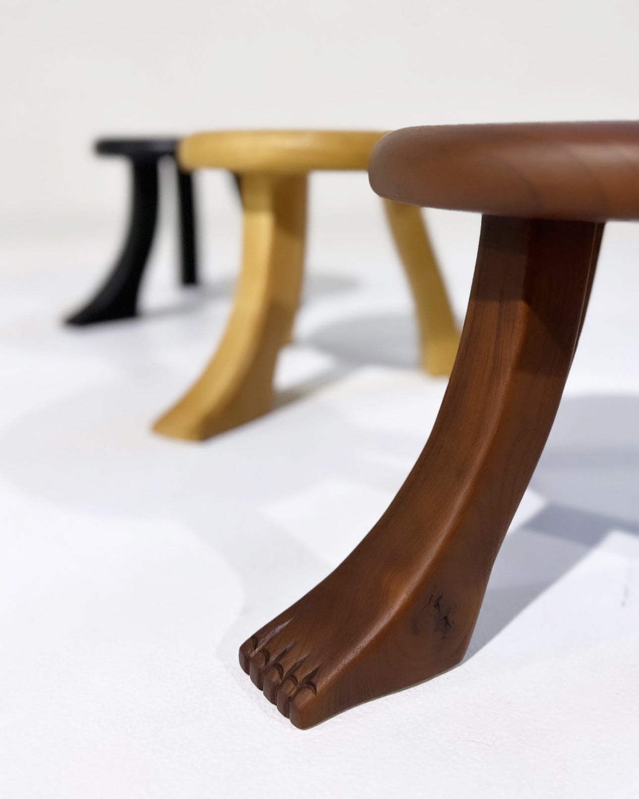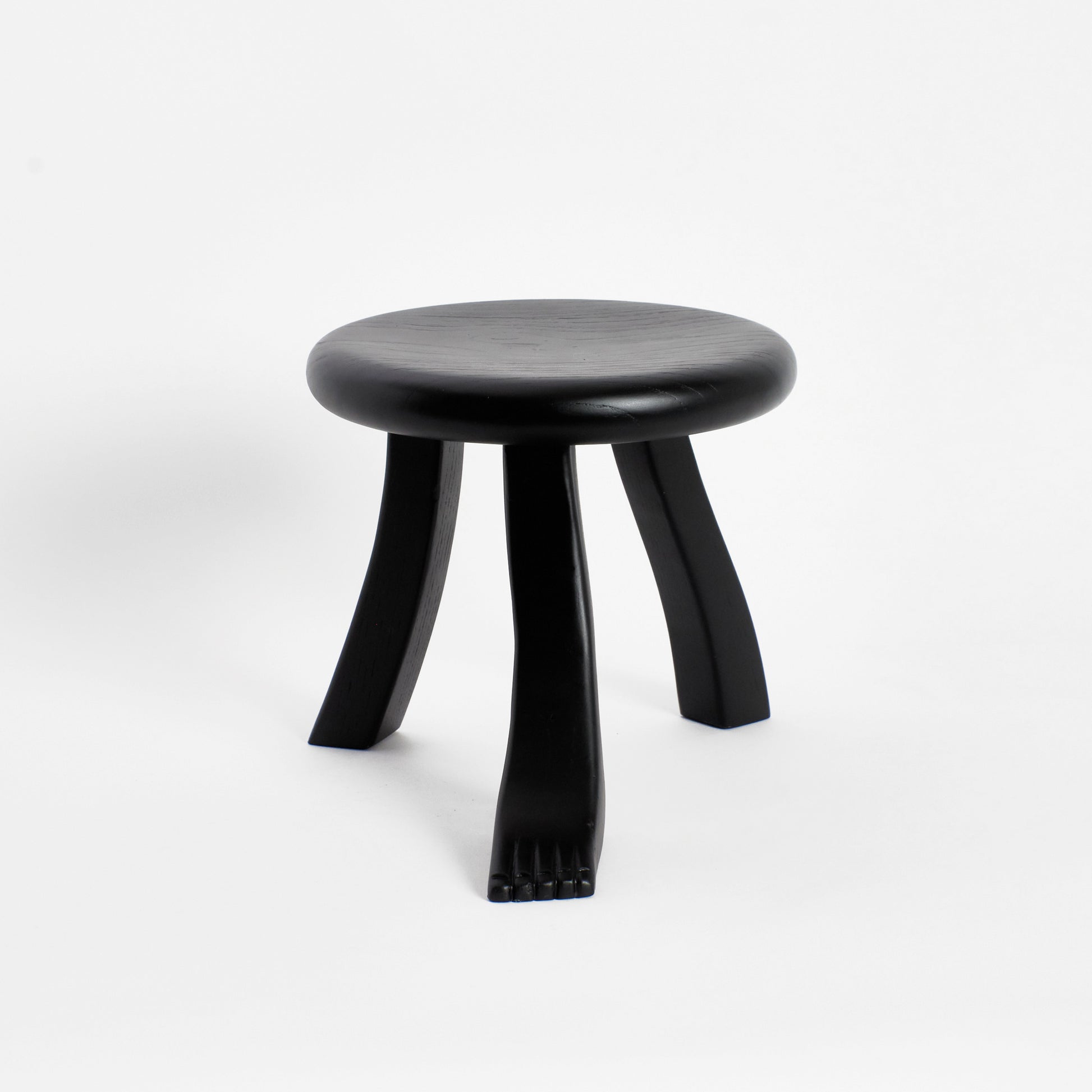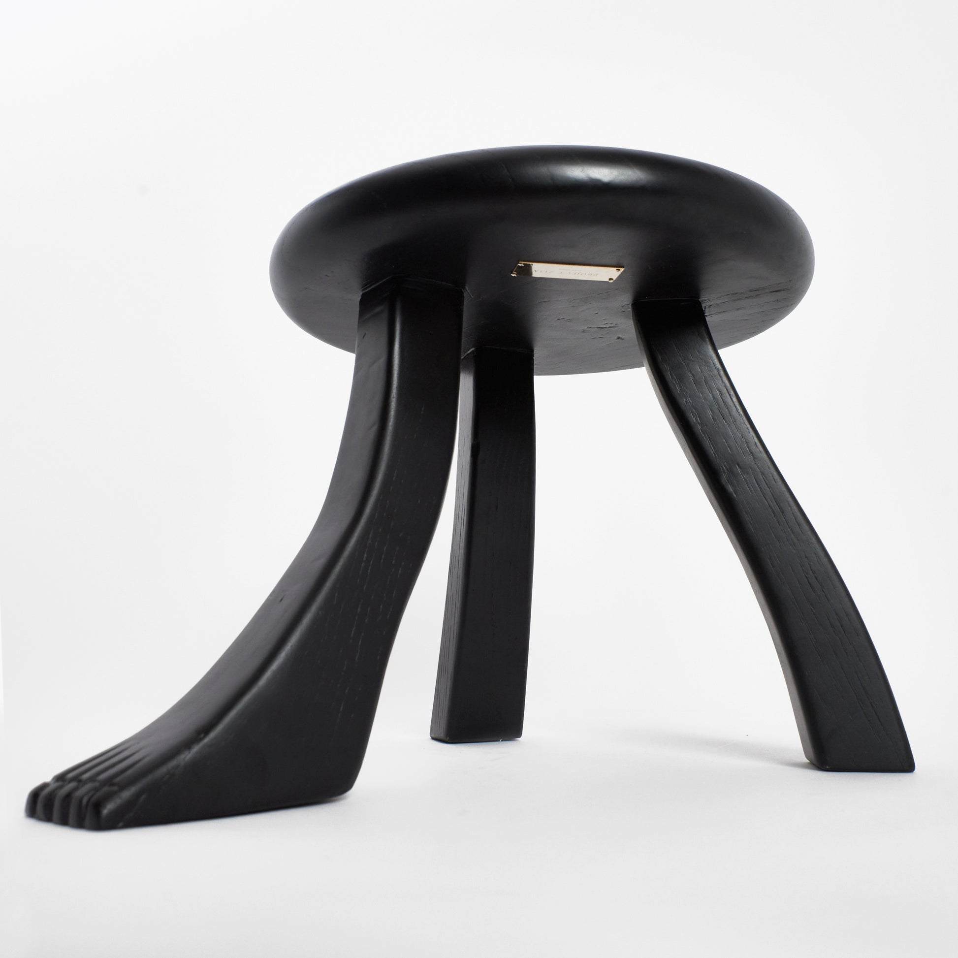 This playful design is inspired by a classic milking stool, and has a fun twist with three individually shaped legs. The stool is hand carved by artisans in northern Portugal from oak wood and oil finished to have a rich appearance.