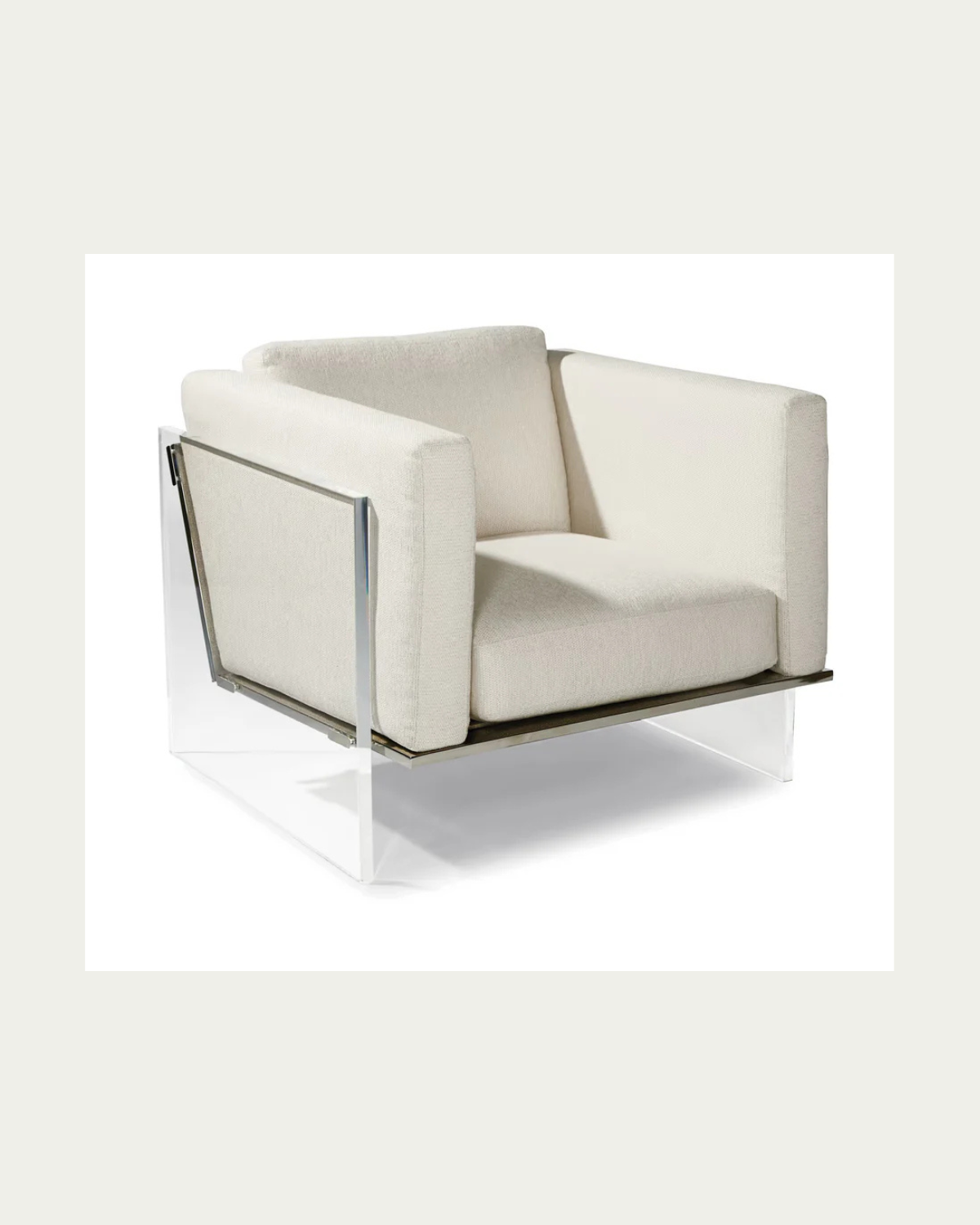 Originally designed in 1969 by Baughman, the Get Smart Lounge seemingly floats on air. Striking from all angles, the Get Smart features clear acrylic arm panels, stainless steel rails and black leather strapping standard. A companion sofa and studio sofa are also available. Select from our many fabrics or leathers or provide COM.
