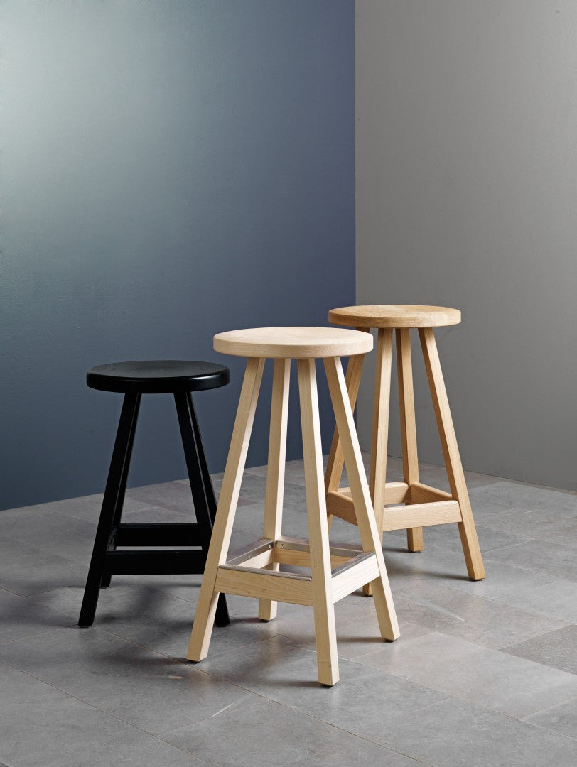 Bar stool in solid oak. Solid oak seat in two heights 640/760 mm (25/30 inches).