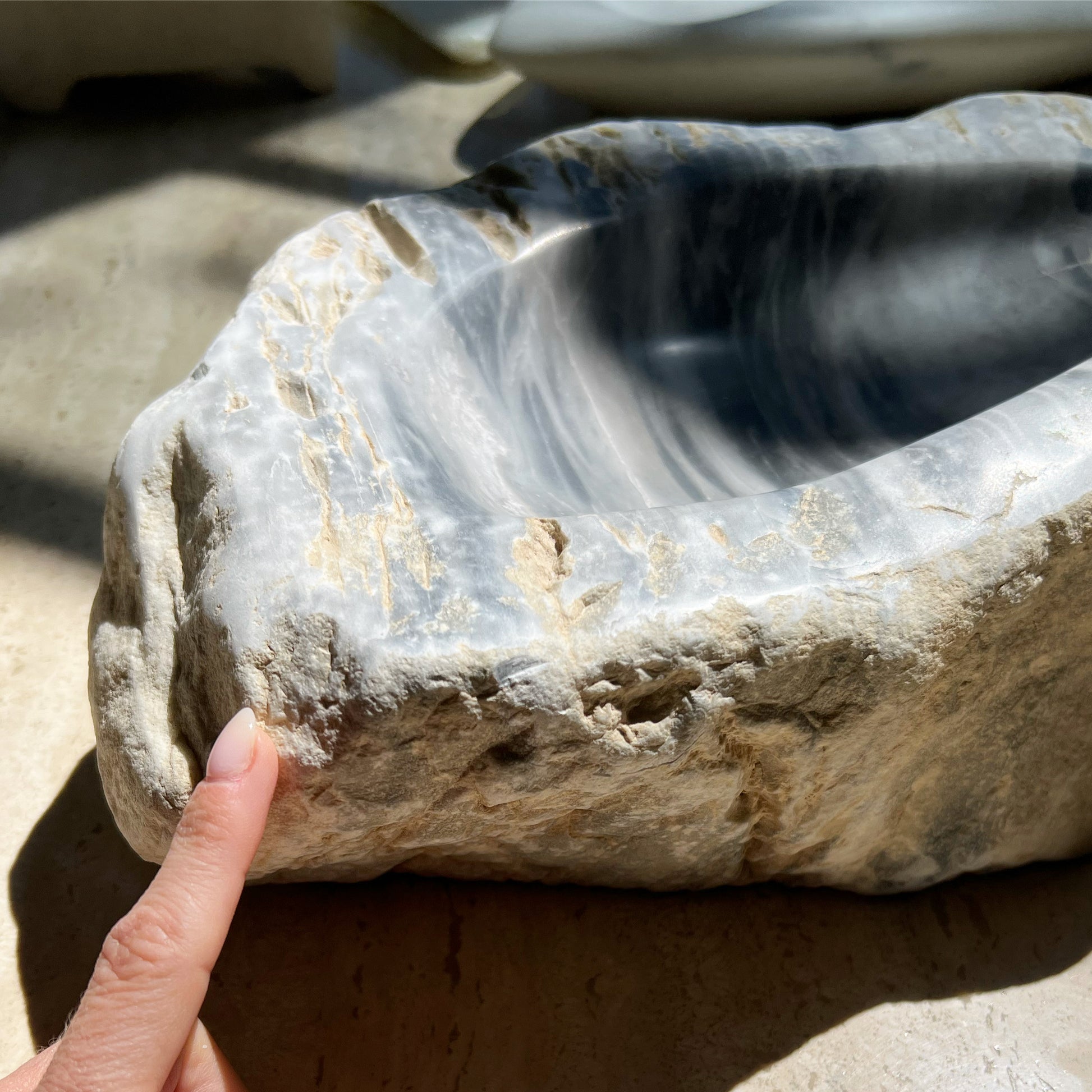 Greenpoint Stone, founded by sculptors Kellie Pereira and Stephen Shaheen, is a design studio based in Brooklyn. Their designs direct us to look at stone as works of art.  Each piece is created by hand in the Greenpoint Stone studio. No two sections of stone are identical, therefore, every Greenpoint Stone object is entirely unique and a one-of-a-kind piece of functional art.  We love bringing natural elements indoors - think marble, stone, beautiful woods. The different stone materials - travertine, marble, onyx, to name a few - create beautiful and unique vessels to display fruit atop the kitchen counter, hold keys and things on your console, or stand alone as sculptural objects.