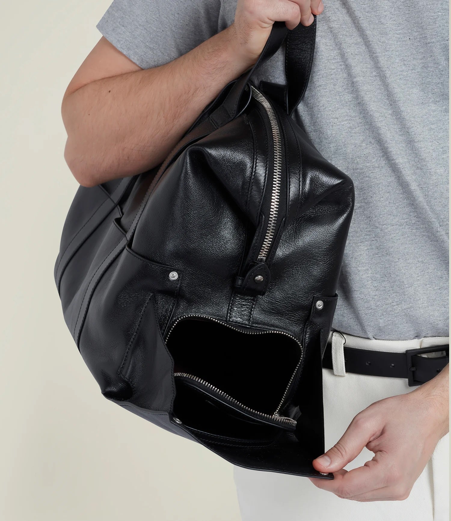 Our first bag specifically attuned for active endeavours, the Heist is designed to make going from work, to the gym, to after, effortless as well as elegant. Elevated in our distinctive Elvis Calfskin, our perfected luxury duffle bag offers a myriad of special compartments to separate and organise all of your belongings; including one designated for shoes and gym attire that is water resistant. Carried comfortably by the handles, it can also be worn as a shoulder bag with straps that are soft and wide. Meticulously handcrafted in Italy.