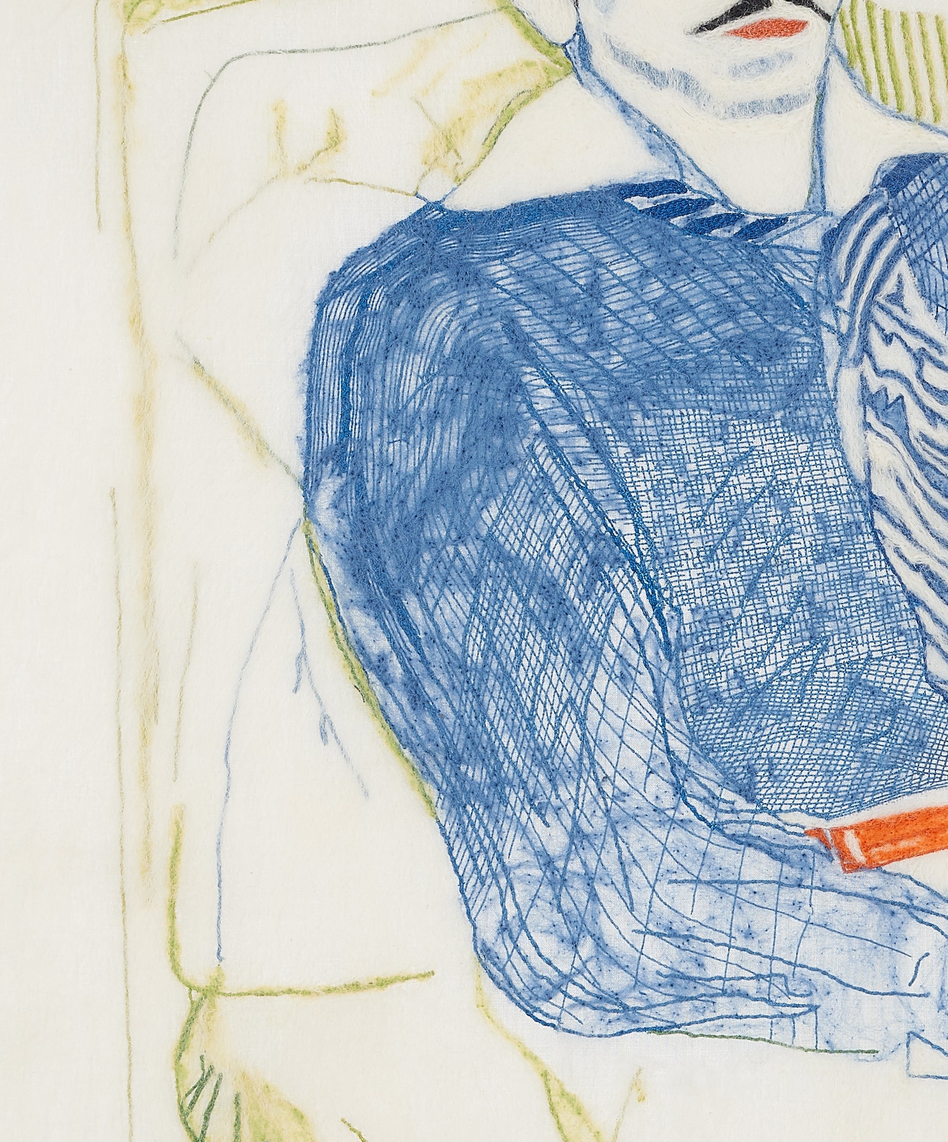 Needle felted wool and embroidery.