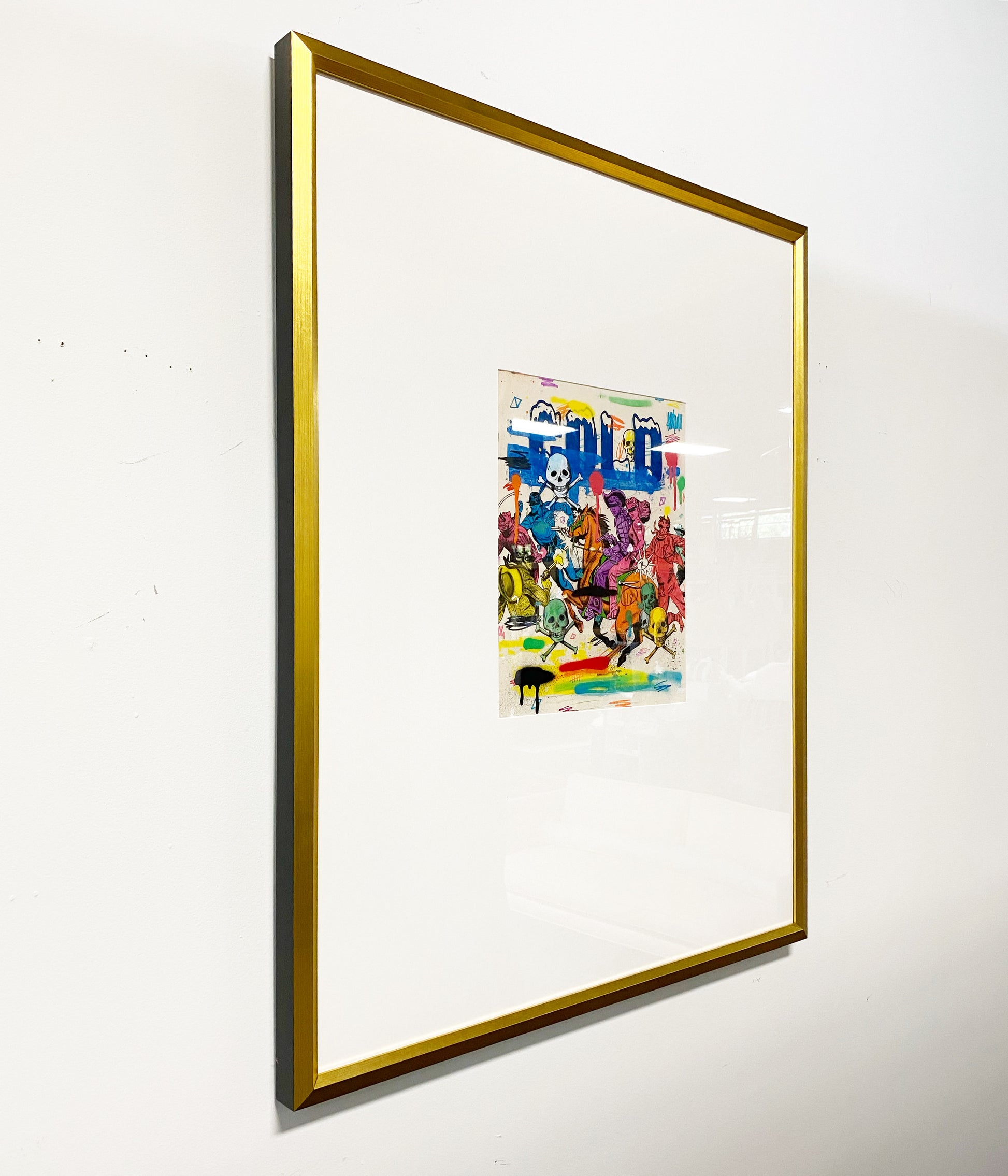 Framed in museum-quality frame, Black with Gold Leaf Front. UV-shielding acrylic. Frame includes wall bumpers, ready to hang.
