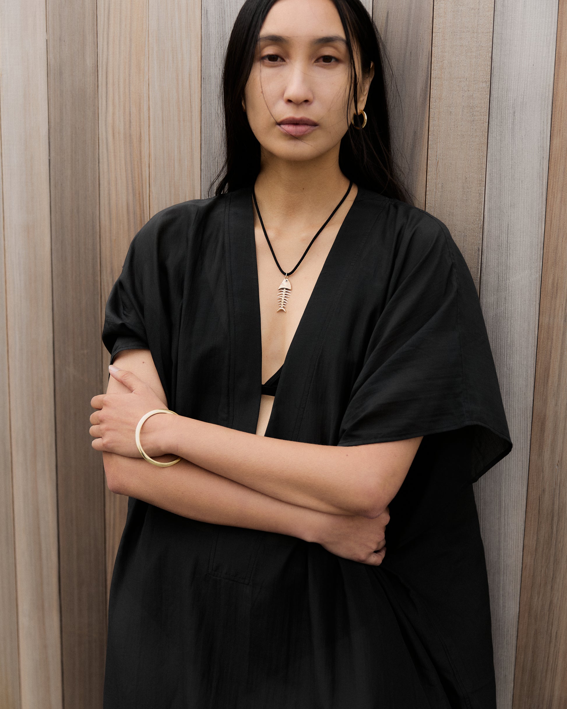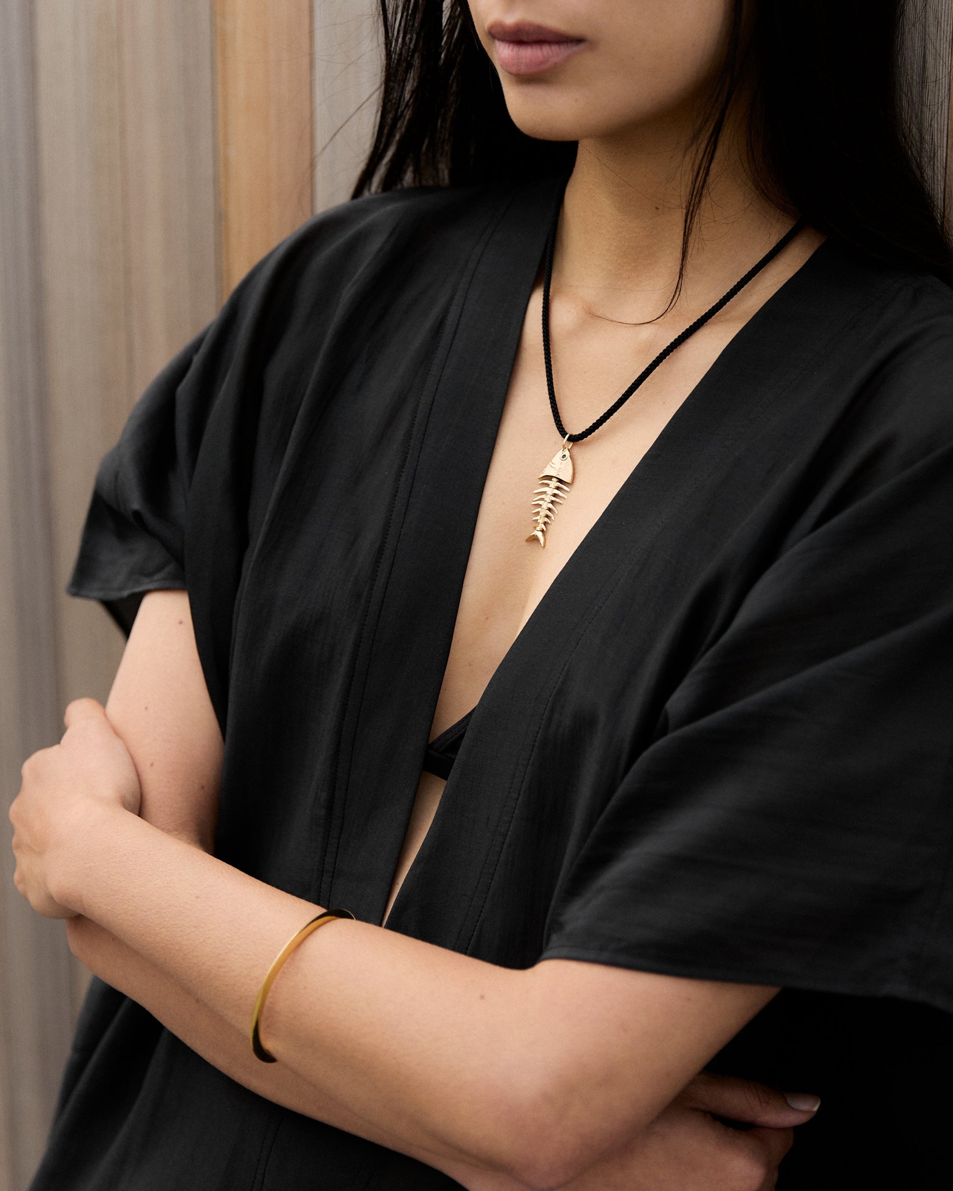 Works with our new 30" black Japanese silk cord with 14k gold end caps. Classic Cable Chains and adjustable Choker are sold separately.