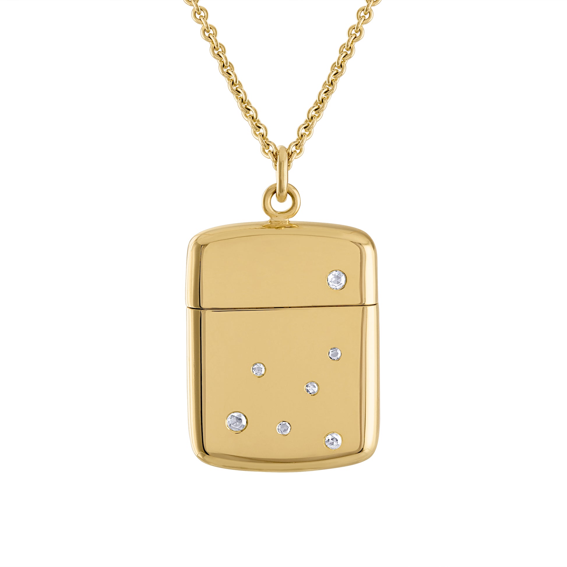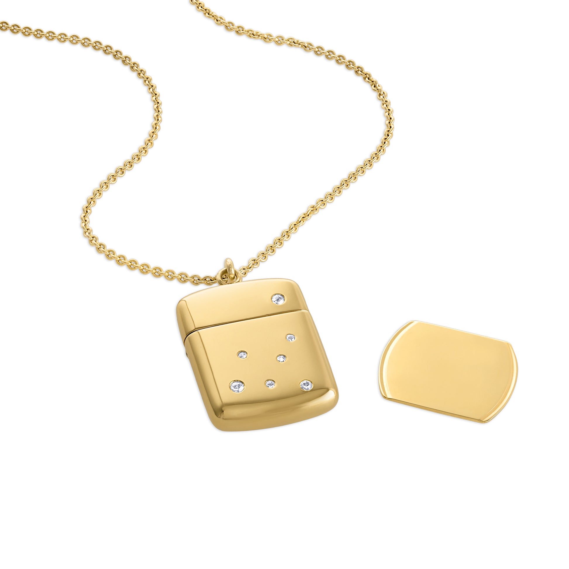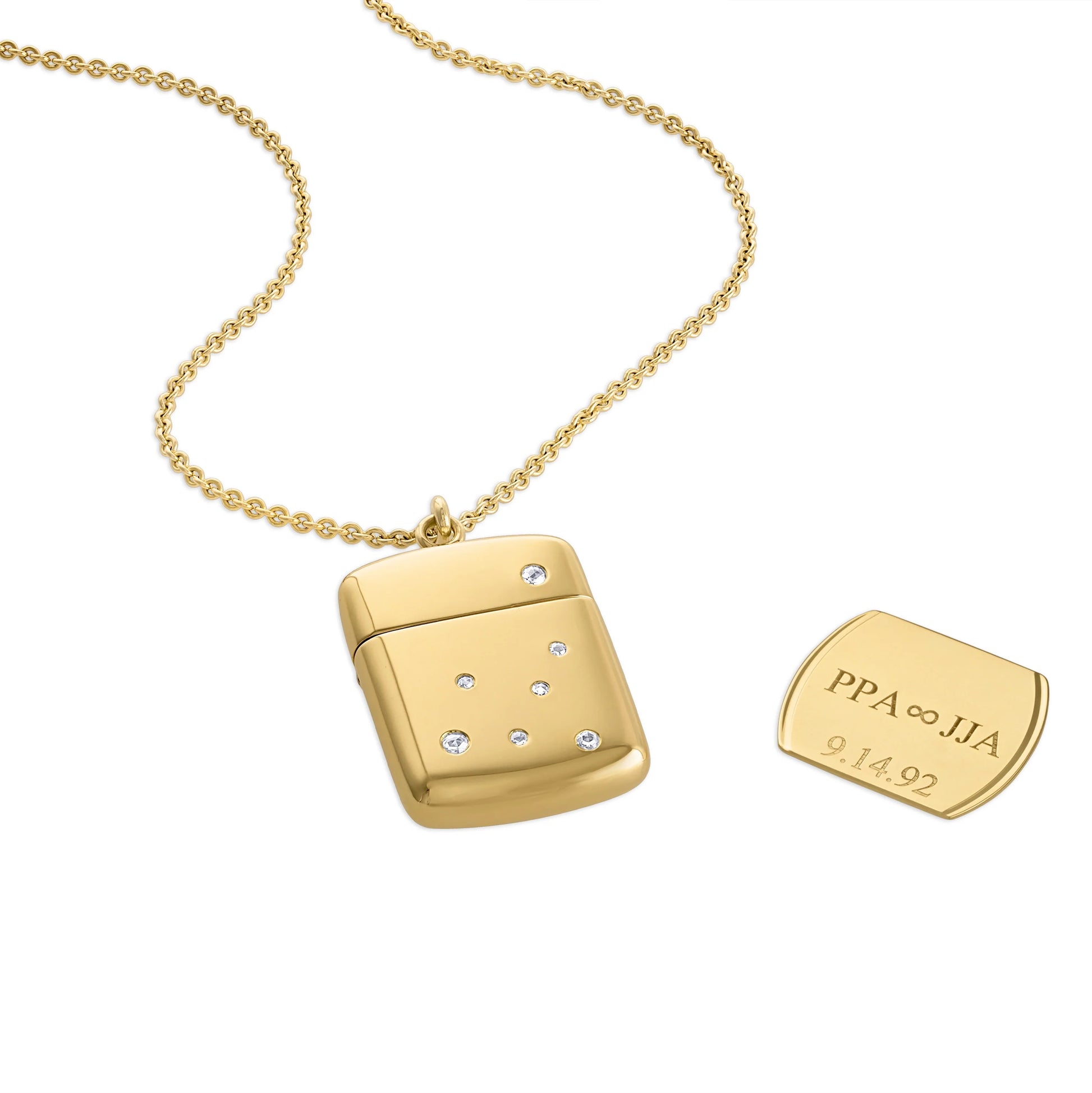 The JJ Case Memento Pendant in 18k Gold is designed to hold personal stories. A love letter, a poem, a date, a name....Celebrate and commemorate meaningful moments by engraving them on a gold card. Even in your own handwriting if you desire. Engraving can be done on both sides, in most fonts or personal hand-writing.