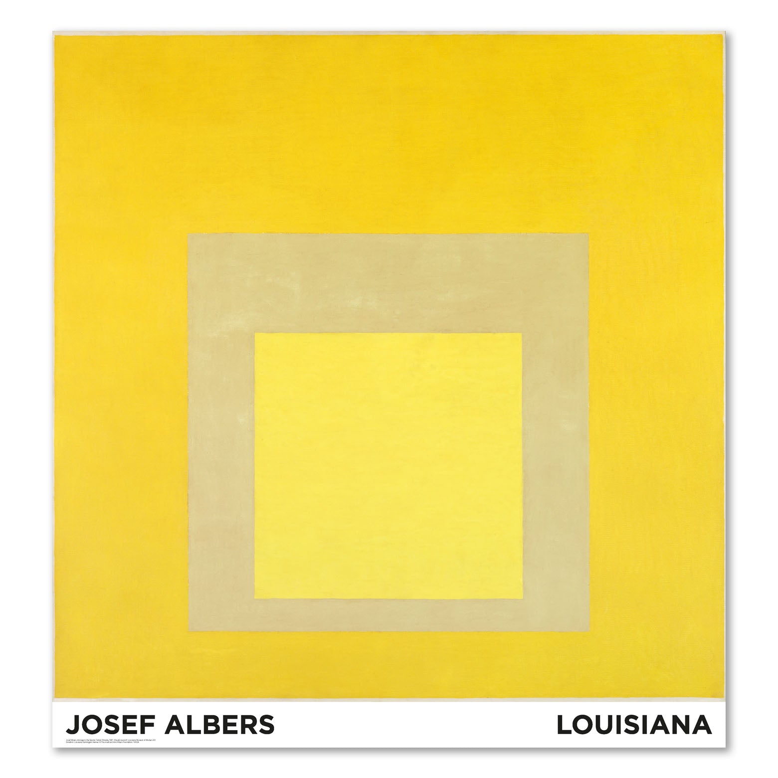 Louisiana poster with the work, Homage to the Square: Yellow Climate (1961) , by the German artist, Josef Albers (1888-1976). Albers worked theoretically and practically with design, graphics, photography and poetry – but it is his paintings, especially his studies of the square – that have left the strongest, most lasting traces. From 1950 until his death – for more than 25 years – Albers produced hundreds of variations on, Homage to the Square .