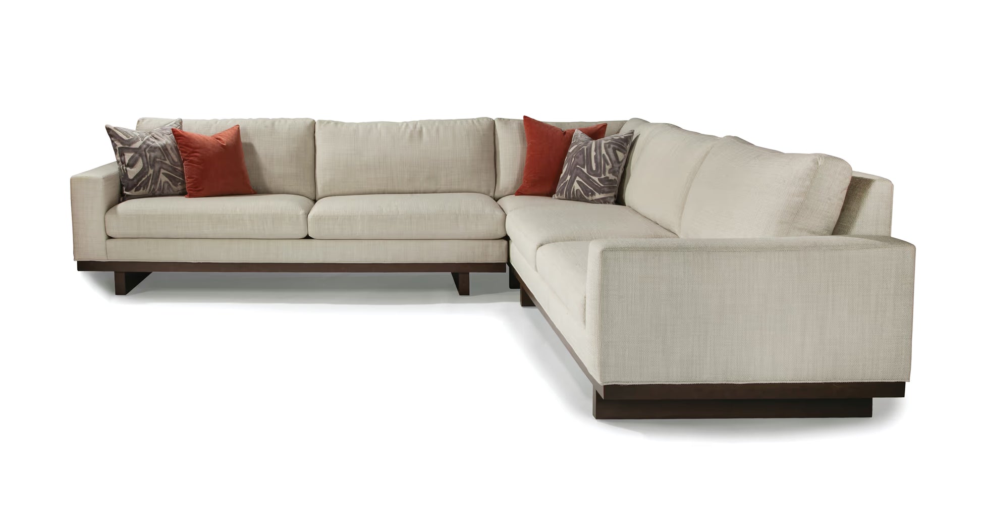 The LA Collection modular sectional features an architectural, cantilevered, solid maple base paired with smartly tailored upholstery. Customize your sectional by choosing from our fourteen, distinct modular units to create the perfect configuration.