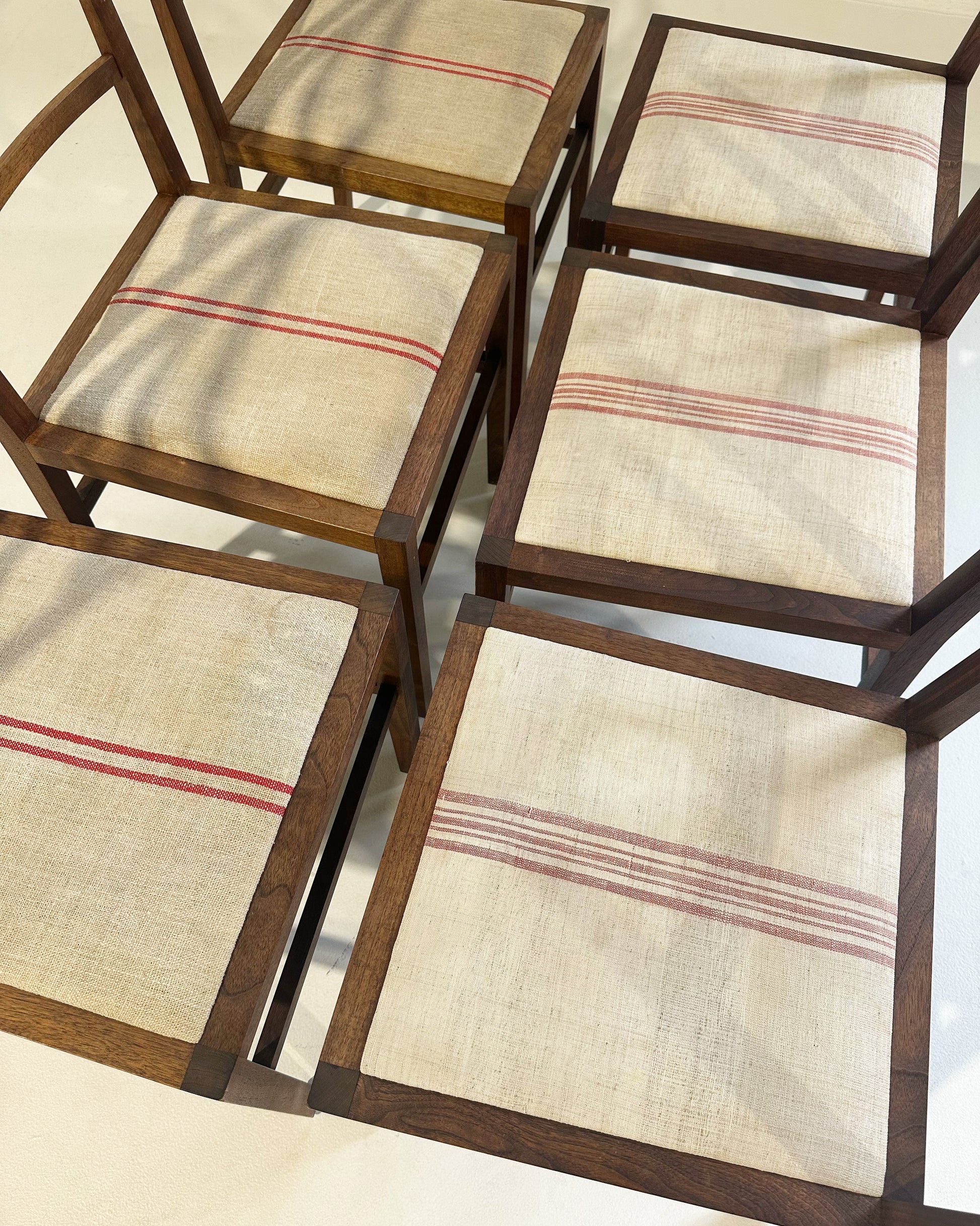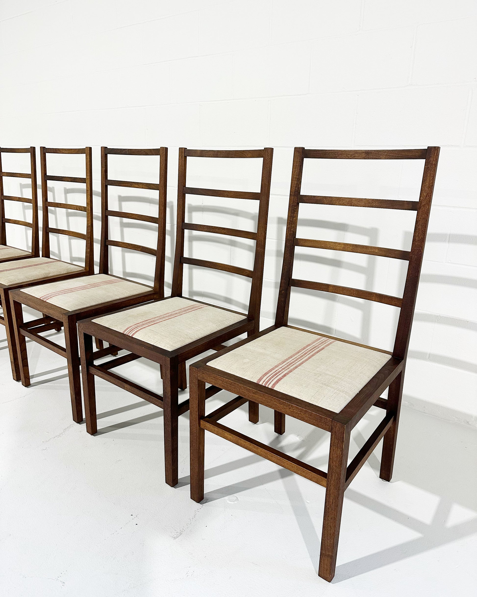 Tyler Hays is the creative director of the cult-following, lust-worthy design brand, BDDW. This set is comprised of their four rung ladder chair. Chairs feature antique Slovakian handmade hemp upholstery. Branded manufacturer's mark to underside of each example ‘BDDW’. Set of 6.