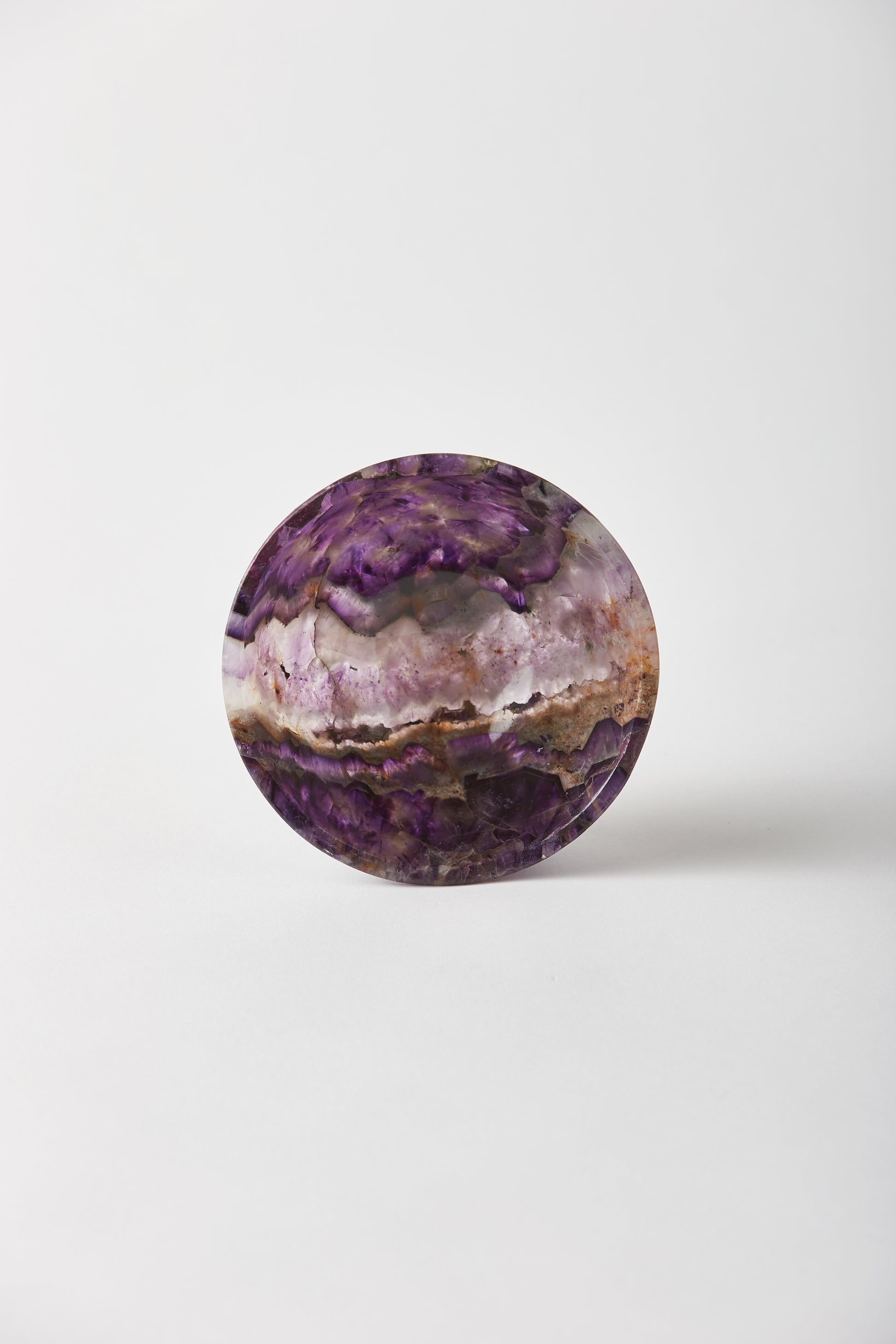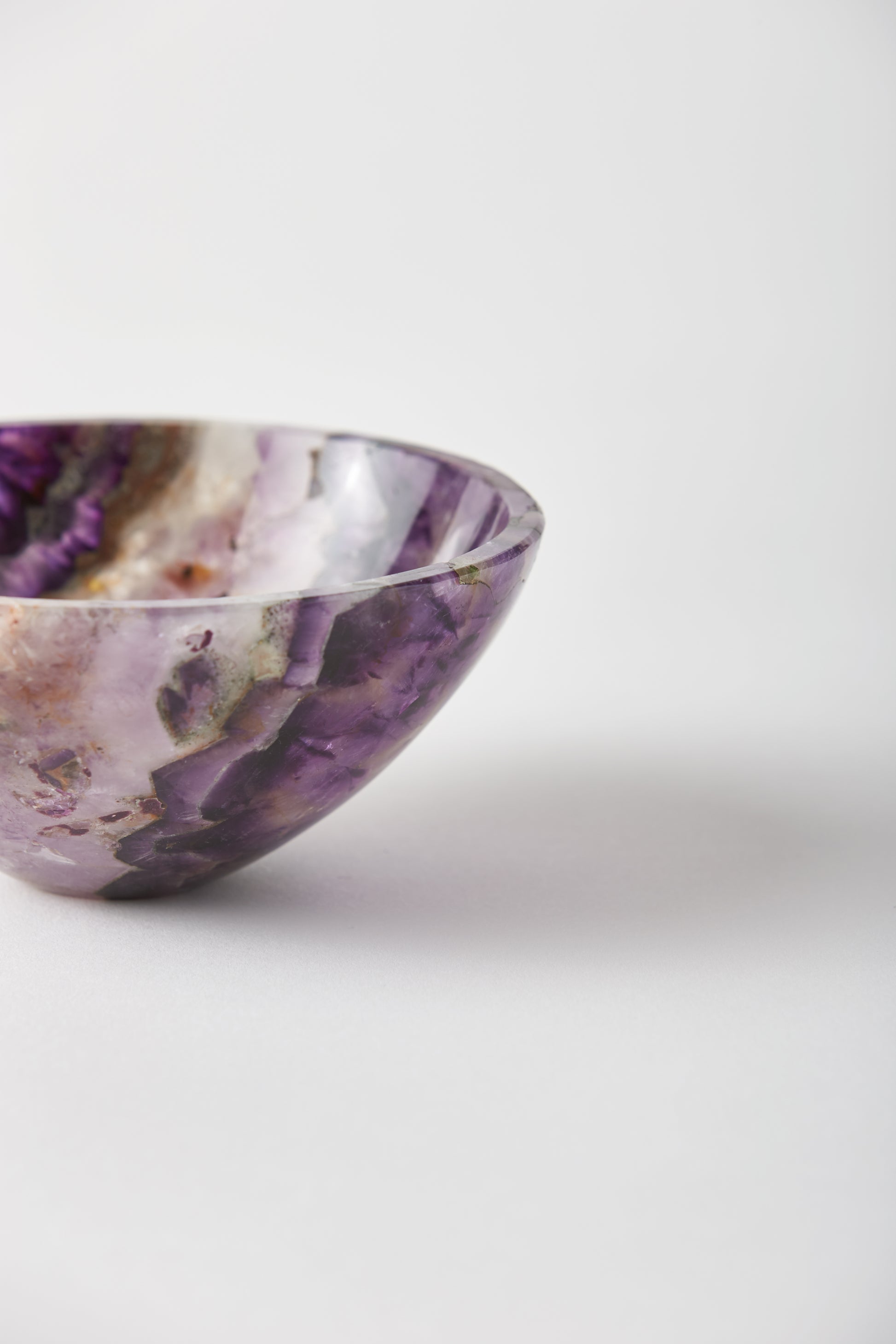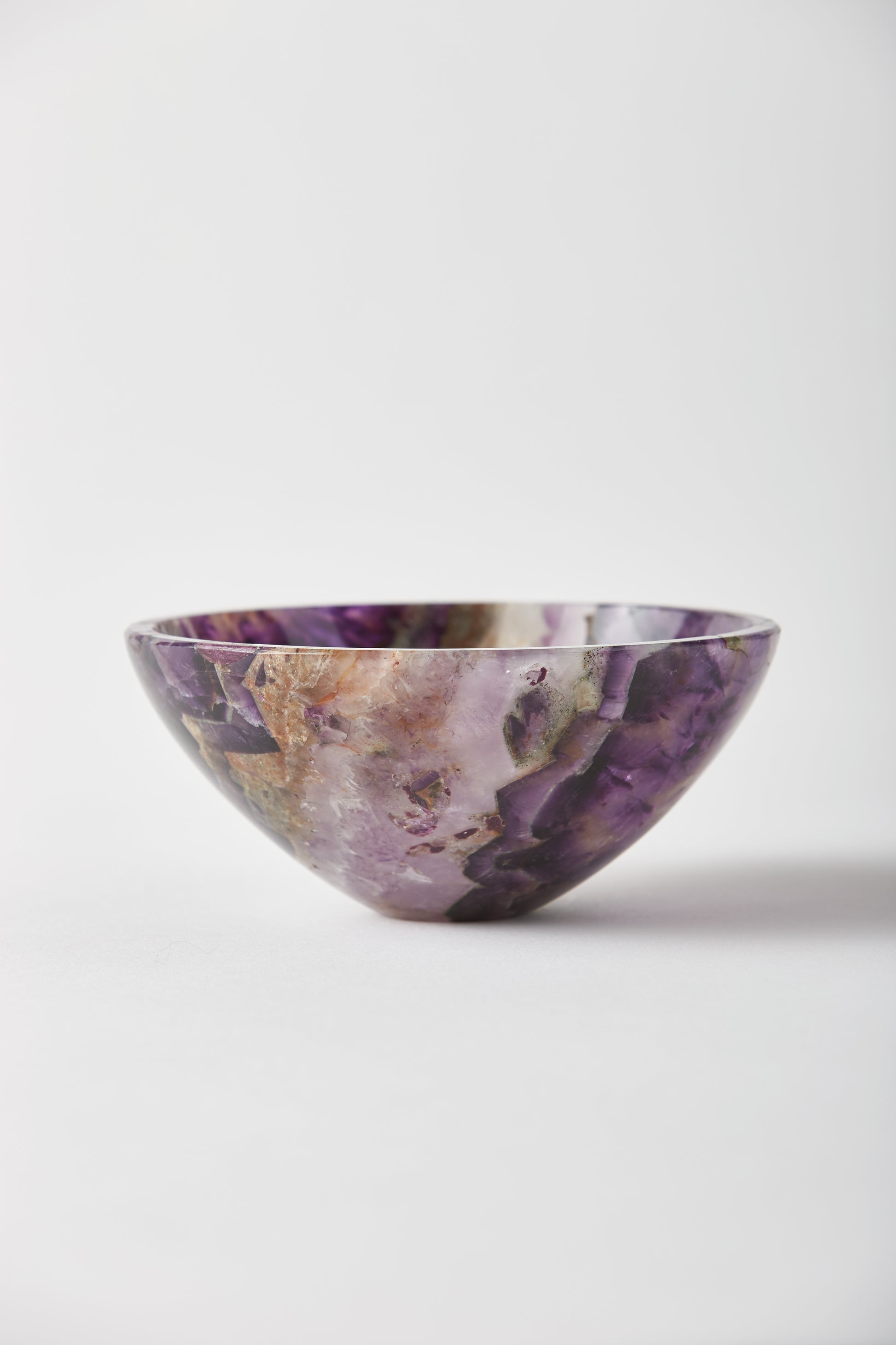 The bowl explores the full gradient of the captivating amethyst stone. Hand carved. Due to the nature of the stone, no two bowls are alike. Each bowl is unique due to variances within the stone and the fact that they are hand made. Made in India.