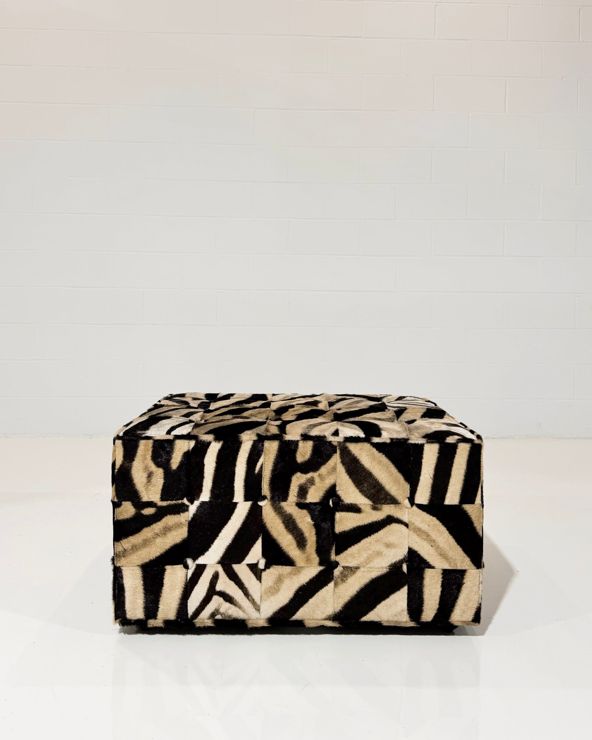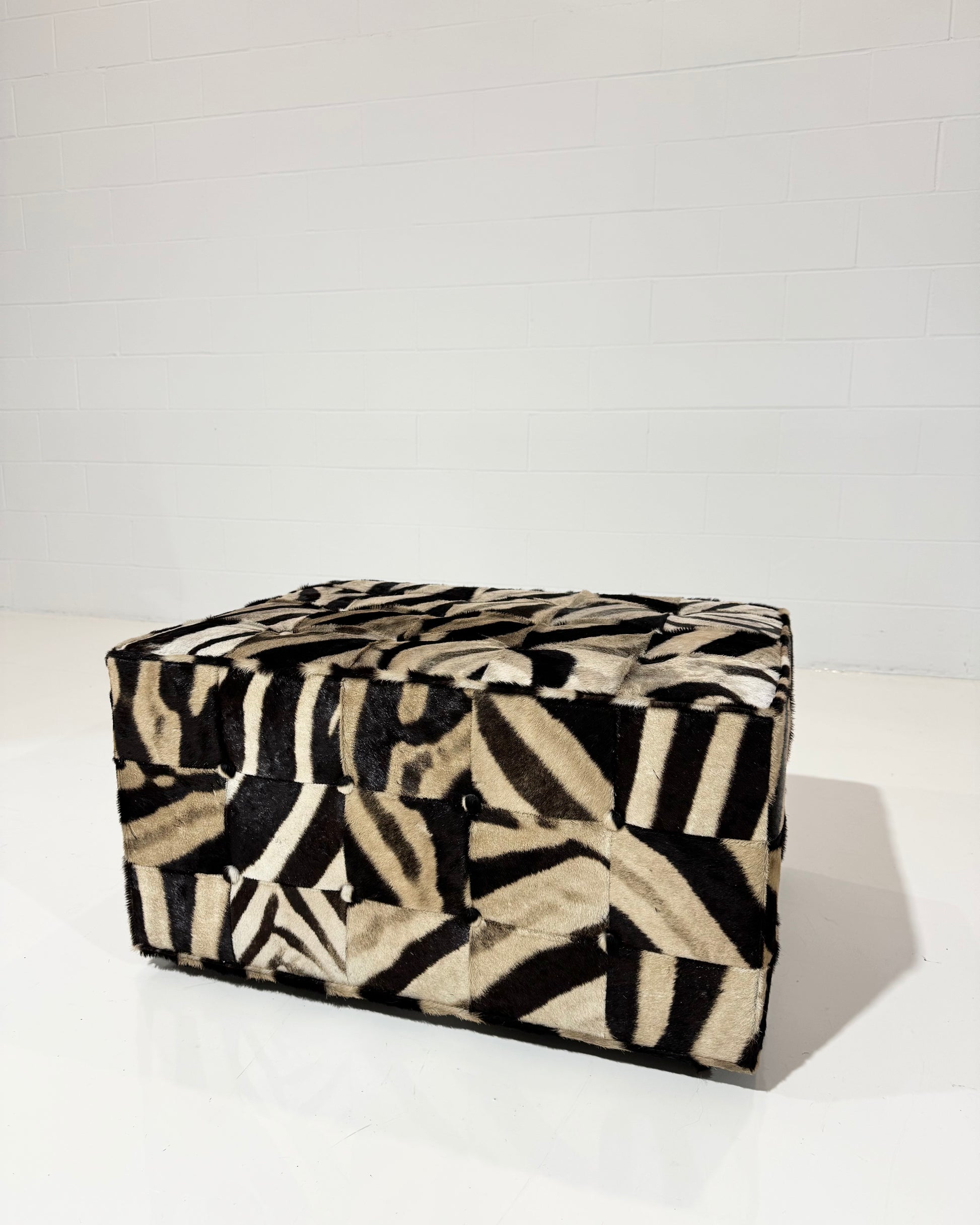 Part of the Forsyth Originals collection. Each square of zebra hide is hand selected and individually sewn to create the patchwork design.