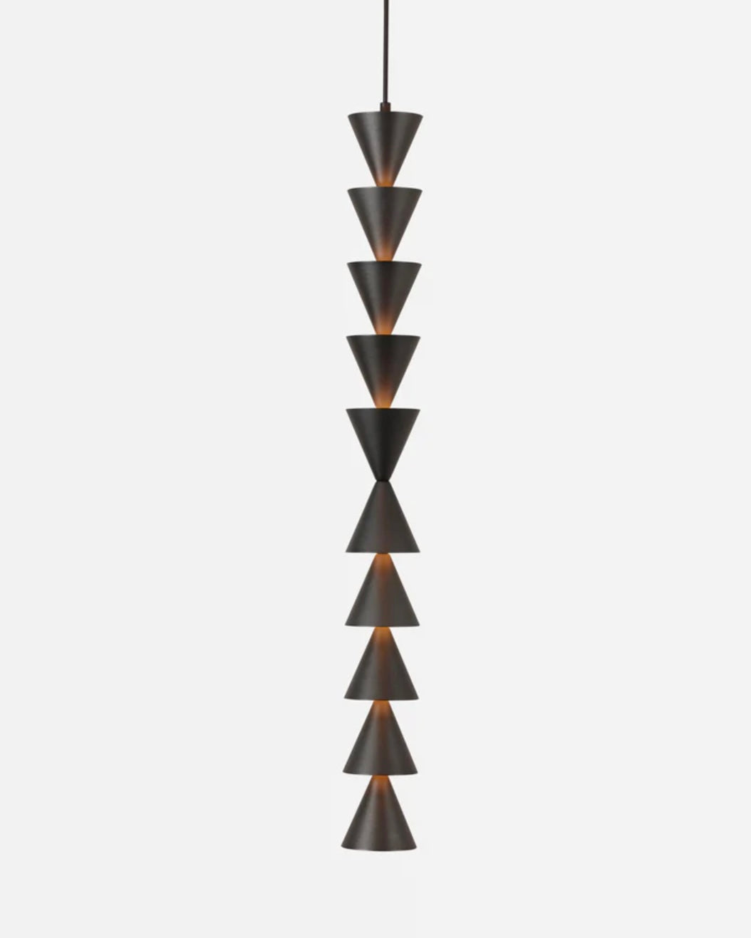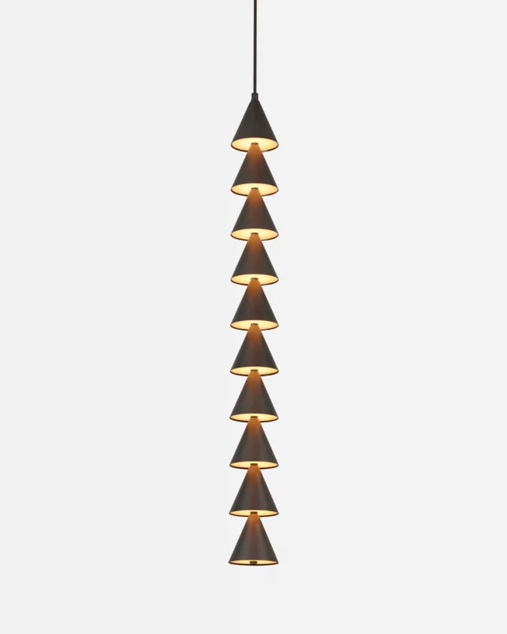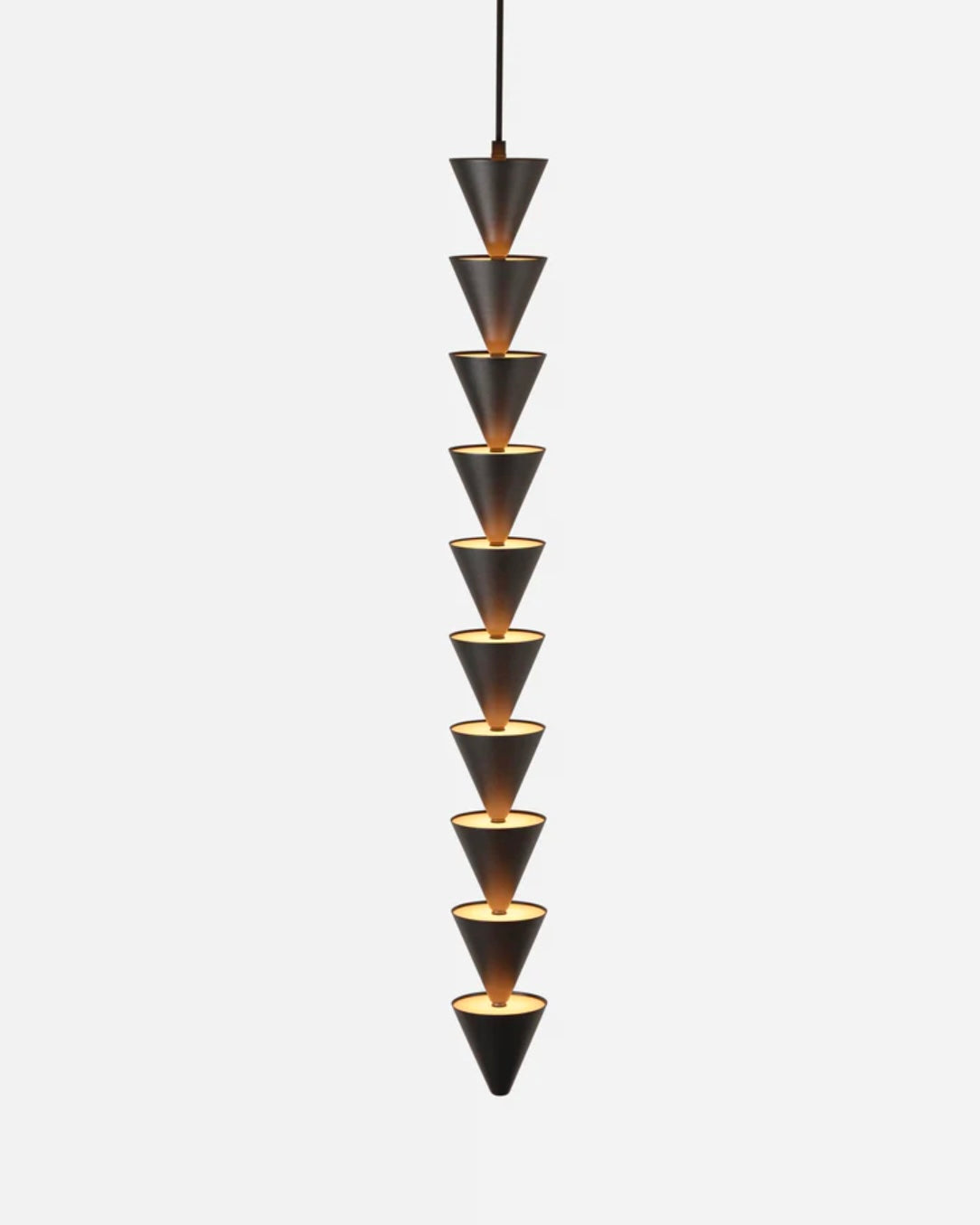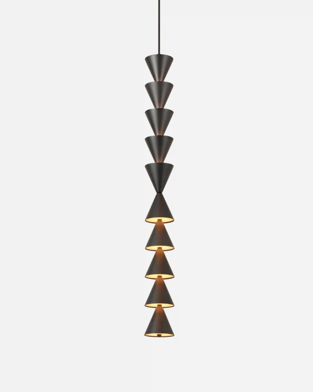 Legato, a musical reference indicating a smooth and unbroken connection of notes, is a modular system of lights that follows this same principle. Legato is available in both vertical and horizontal configurations. The vertical strings offer flexible possibilities — from a pendant to a soaring column of modules. The modules can be oriented facing up, producing soft light reflected from the ceiling, facing down for more direct illumination, or a combination of both.