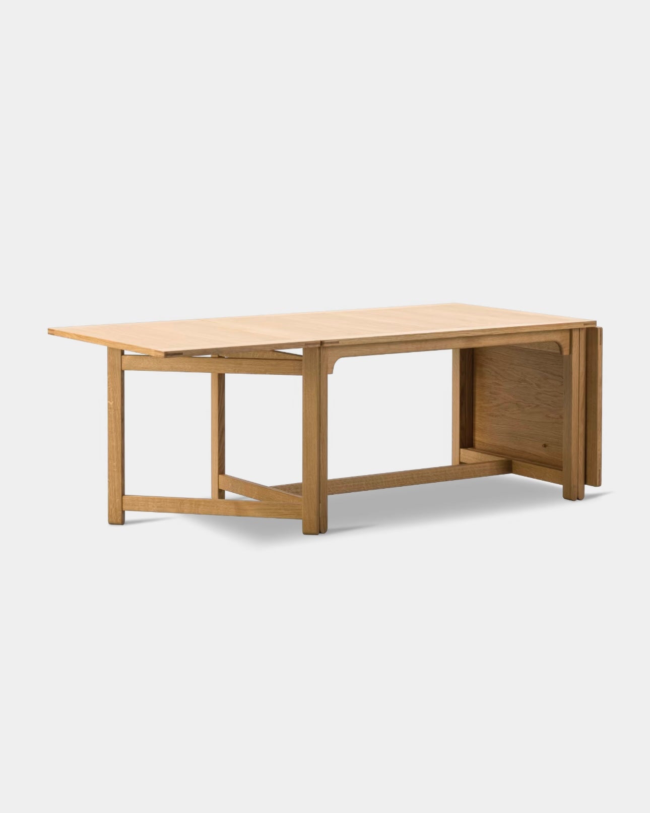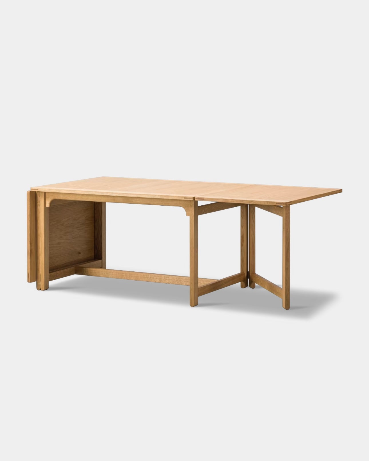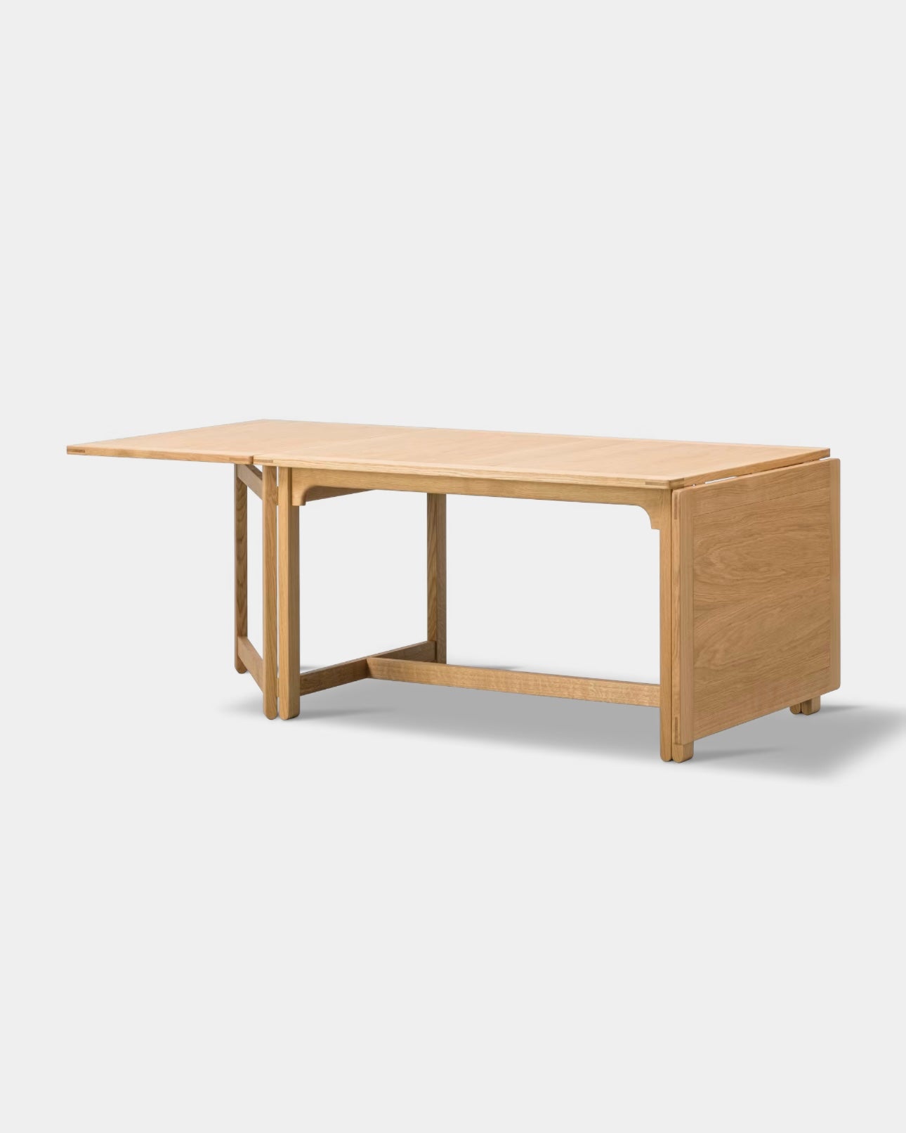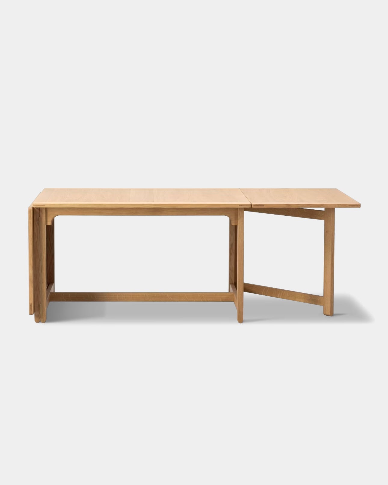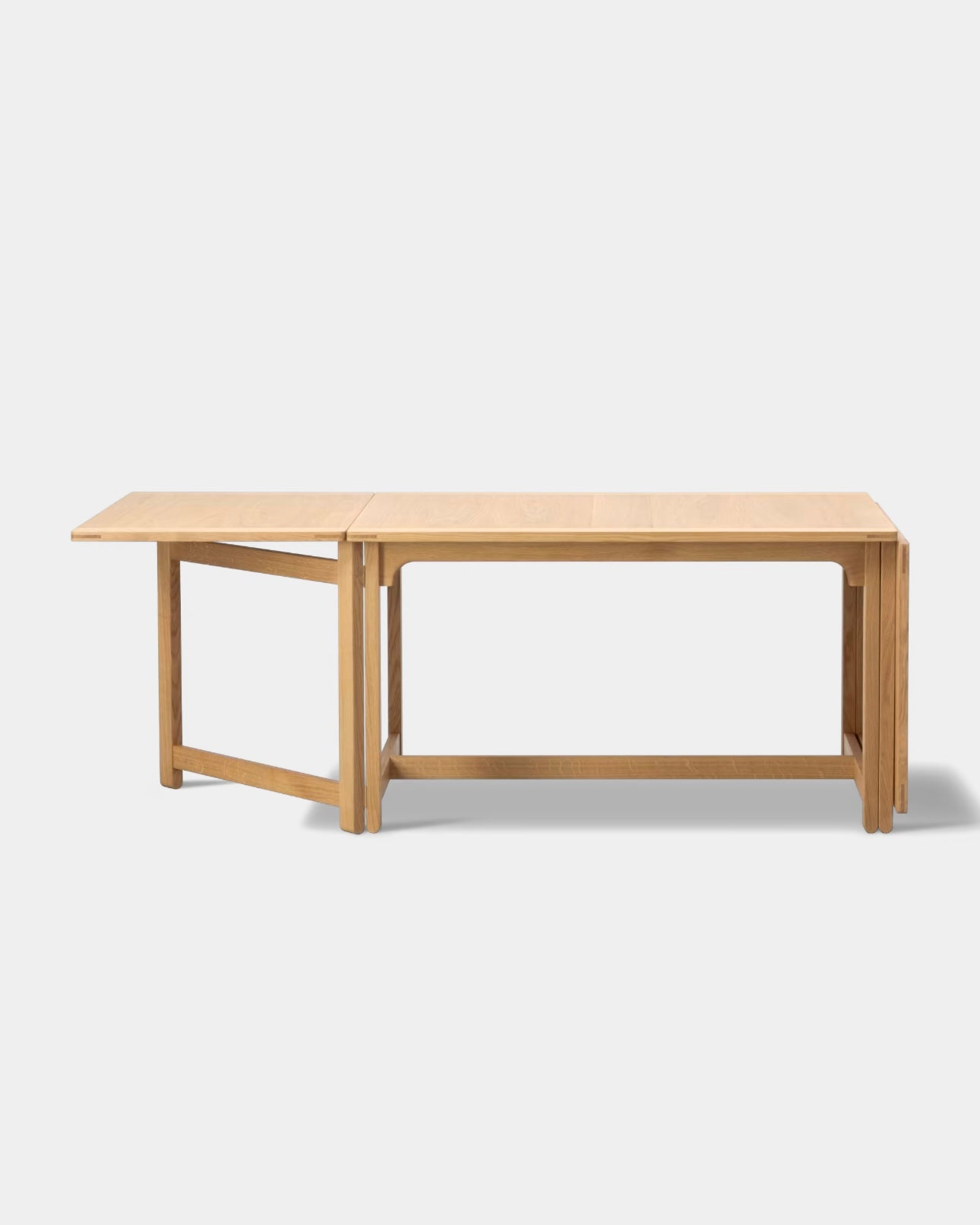 The Library Table BM71 reflects Børge Mogensen’s functional approach to design, where every single detail has a specific purpose, and every measurement is perfectly calibrated. Using the traditional English gate-leg principle, the length of the drop leaf table top can be doubled in size. When not in use, the hinged leaves fold down to hang vertically. Resulting in a clean, rectangular profile of a practical, multi-purpose design crafted in oak.
