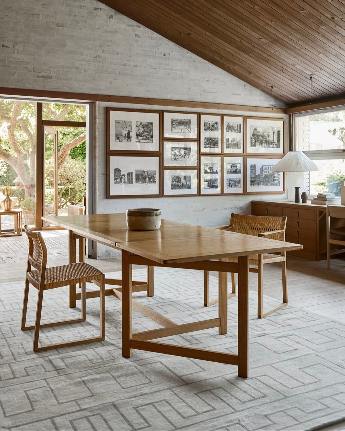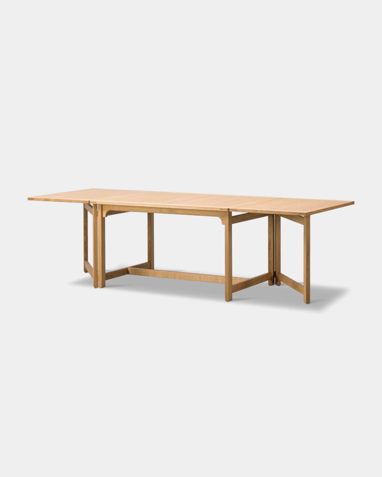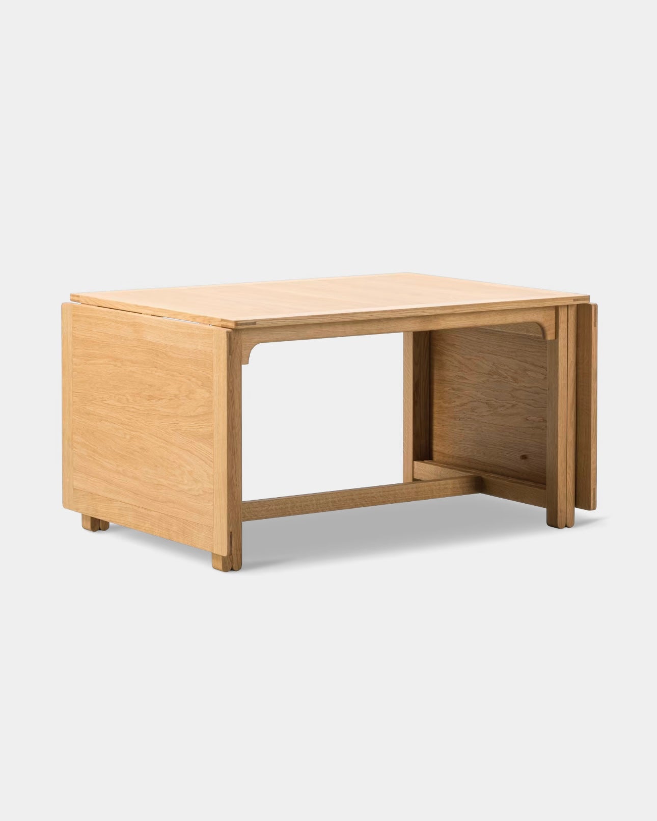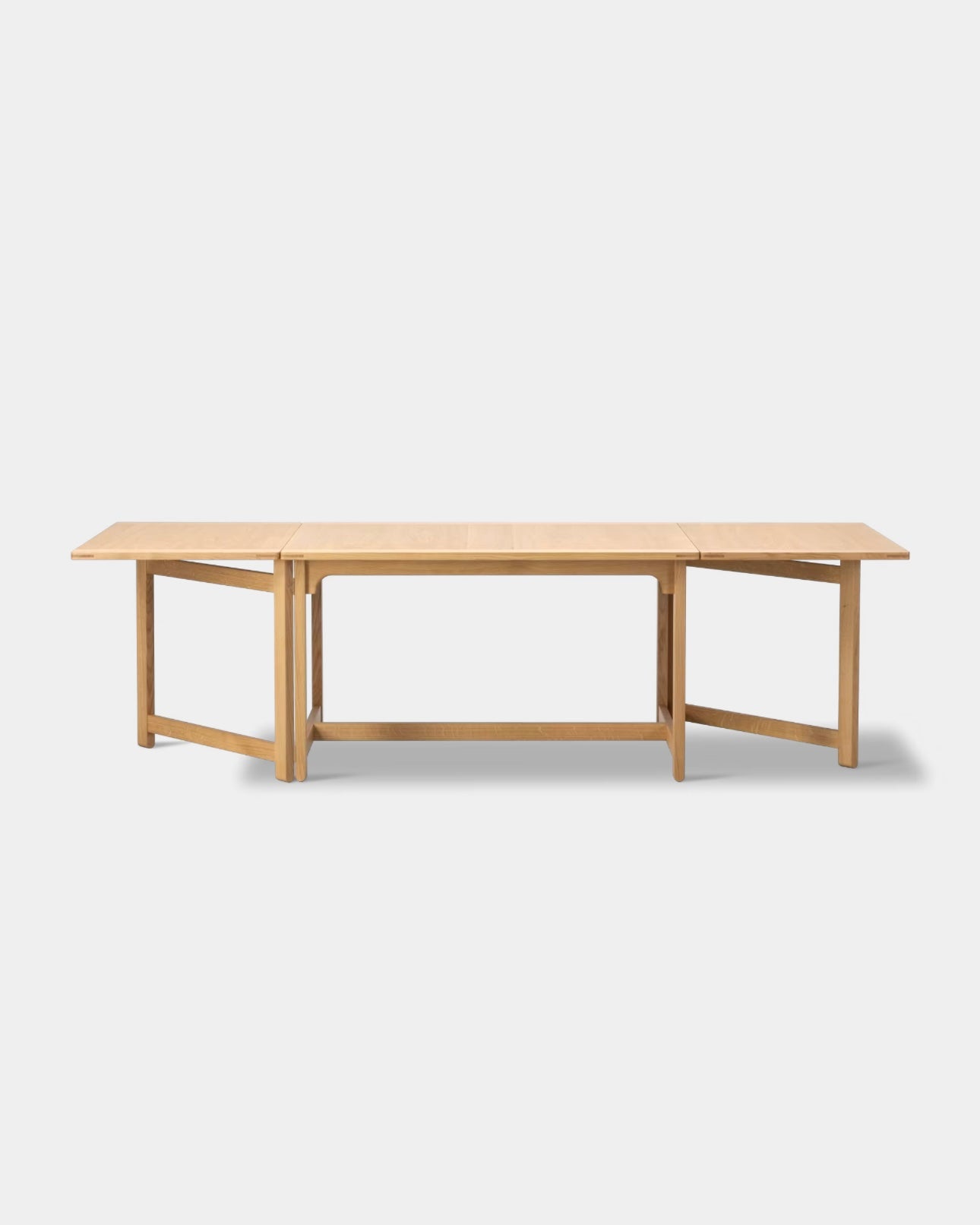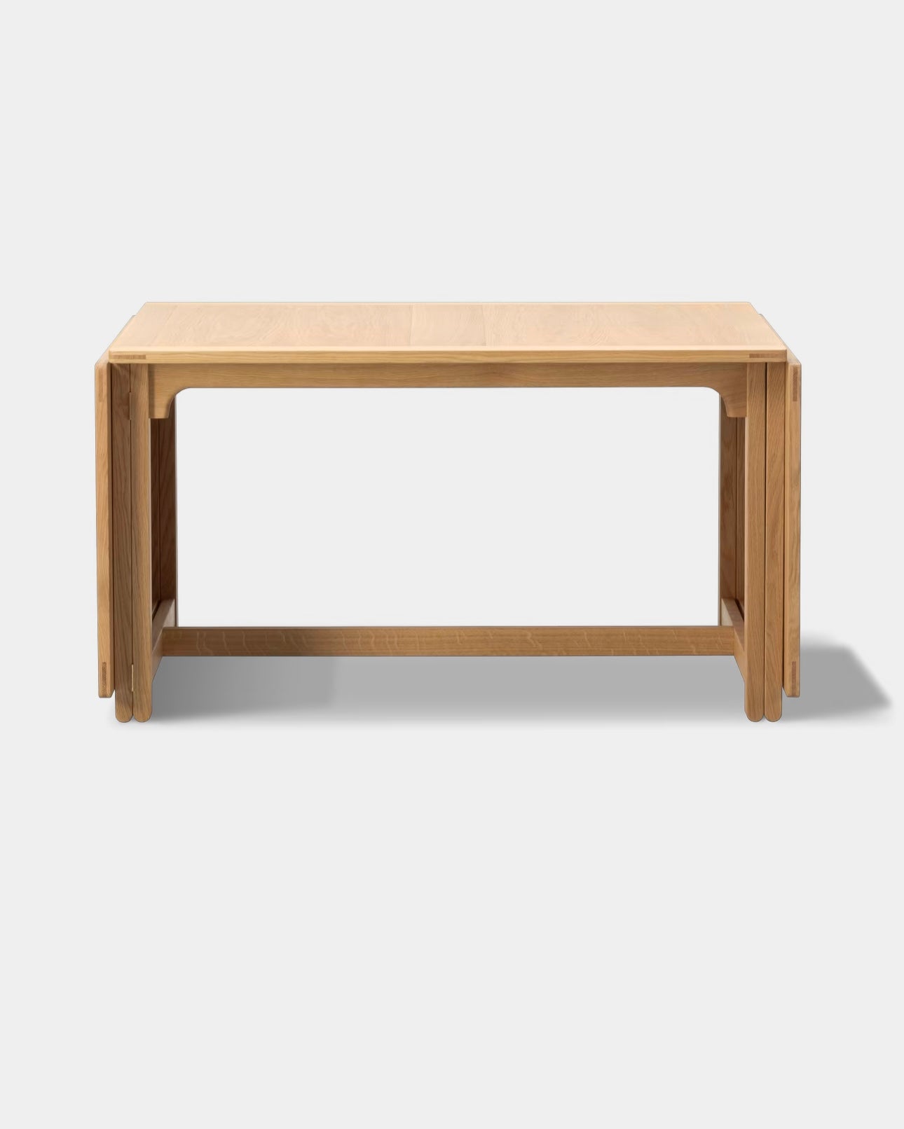 The Library Table BM71 reflects Børge Mogensen’s functional approach to design, where every single detail has a specific purpose, and every measurement is perfectly calibrated. Using the traditional English gate-leg principle, the length of the drop leaf table top can be doubled in size. When not in use, the hinged leaves fold down to hang vertically. Resulting in a clean, rectangular profile of a practical, multi-purpose design crafted in oak.
