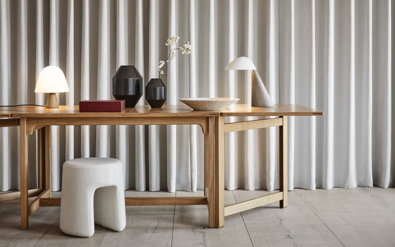 More Options This design has many material variations (wood, leather, fabric). You can view them all at https://www.fredericia.com/product/library-table-6271. Prices may vary depending on selection. Reach out to hello@forsythart.com for assistance.