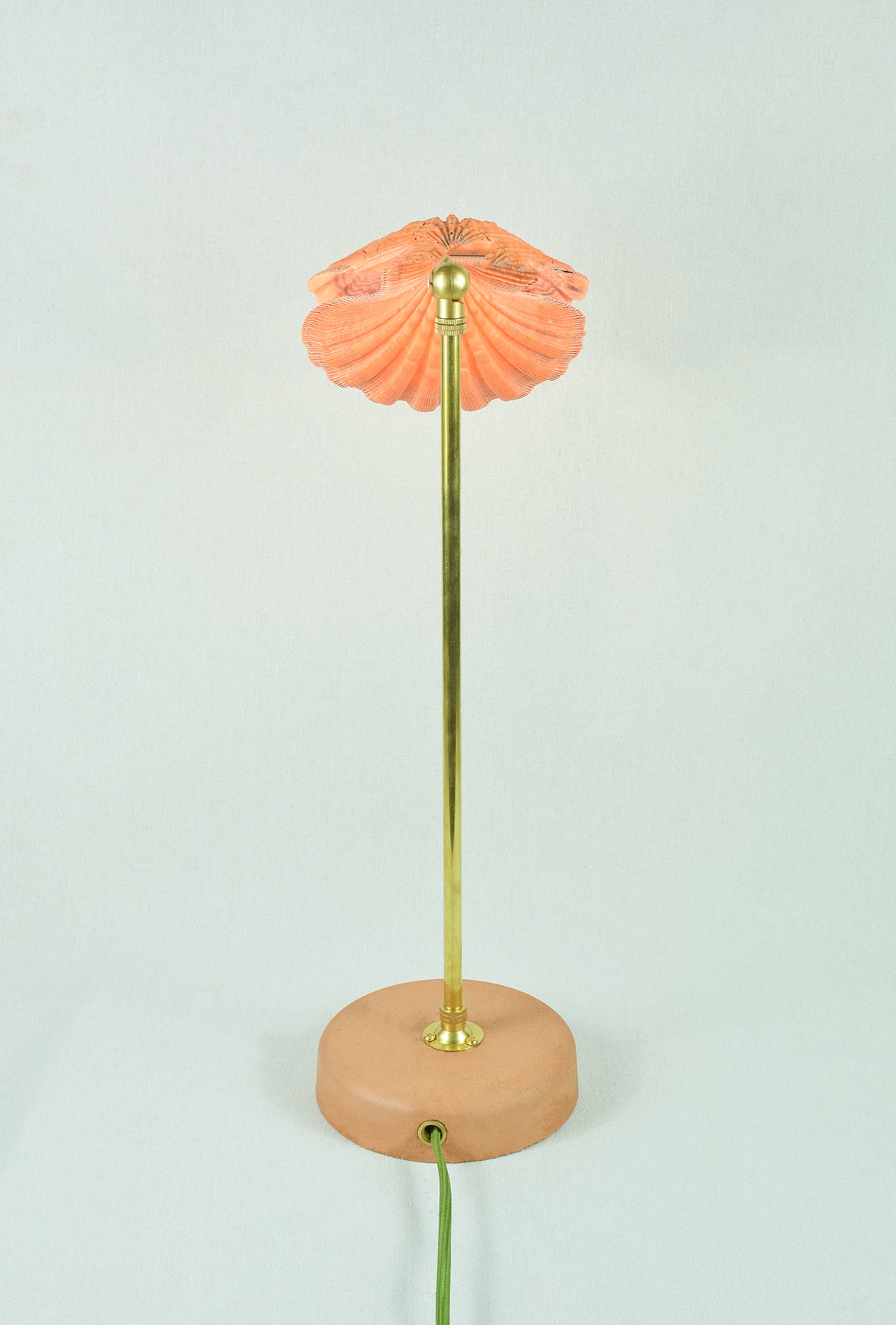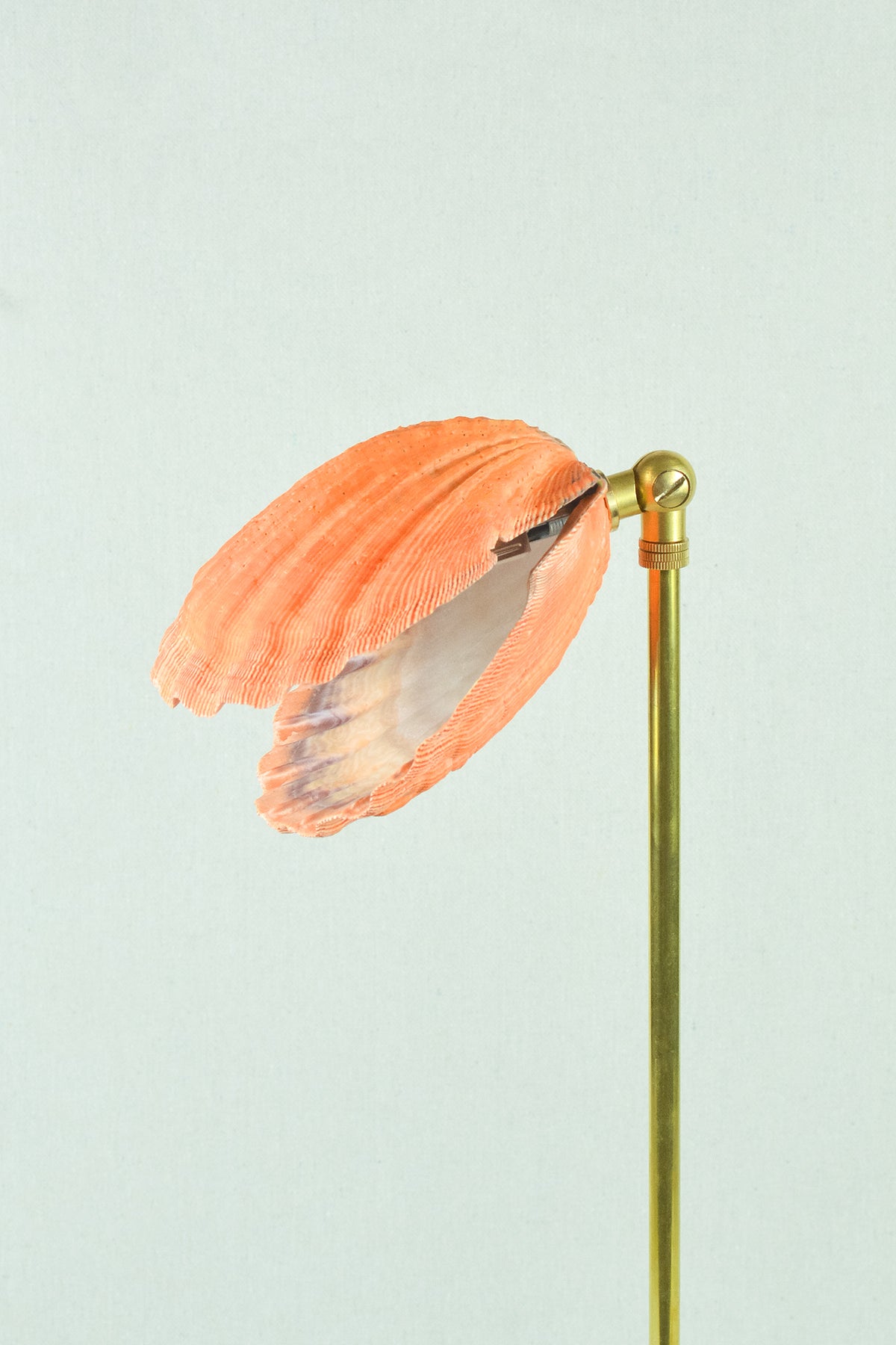 Permanently fused open at the scallop's natural hinge, the shade is fully adjustable on the vertical axis. Perfect as a scene-stealing accent lamp—and even better at one's bedside, in a pair—its playful silhouette, sophisticated lines, rarefied materials, and inviting light will breathe fresh life into any interior.