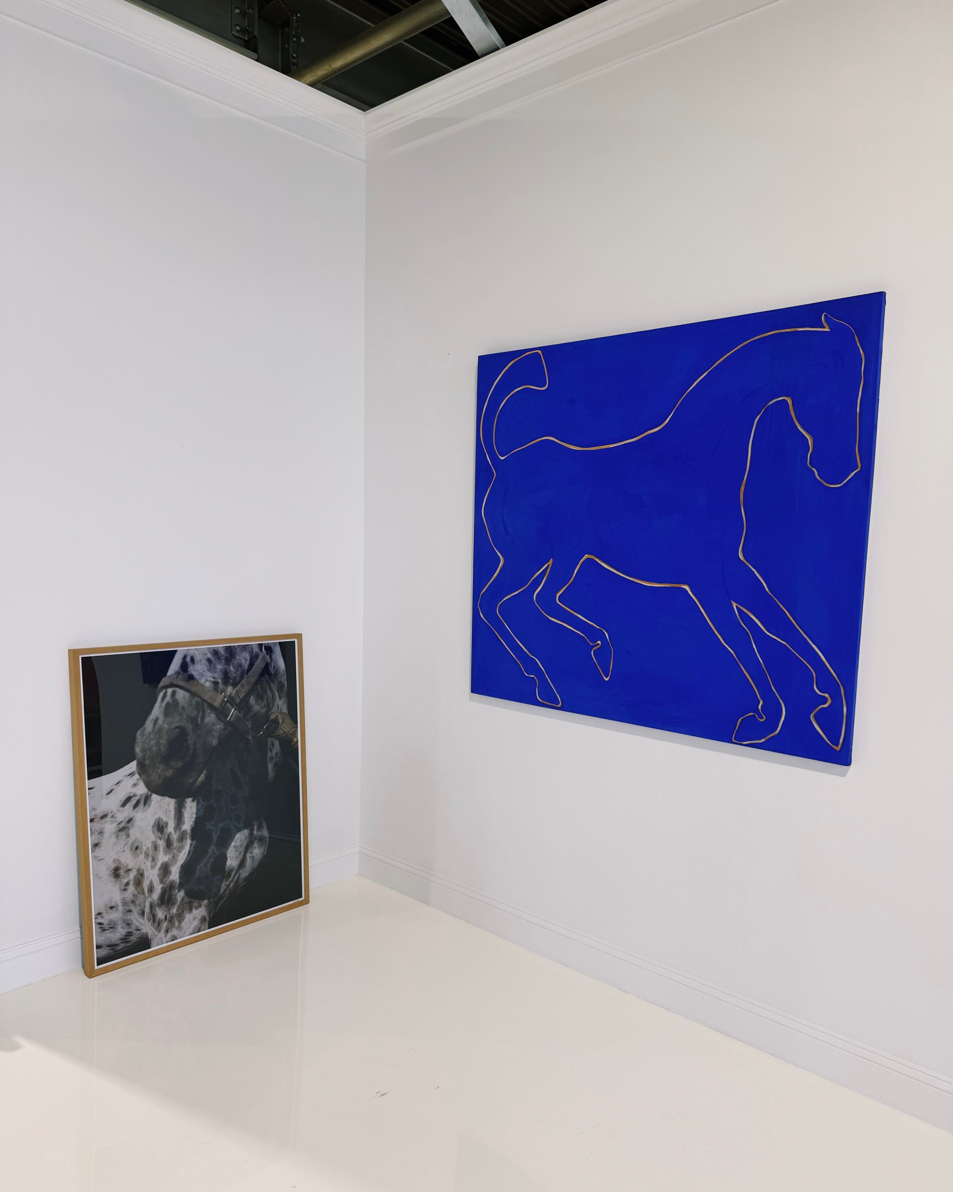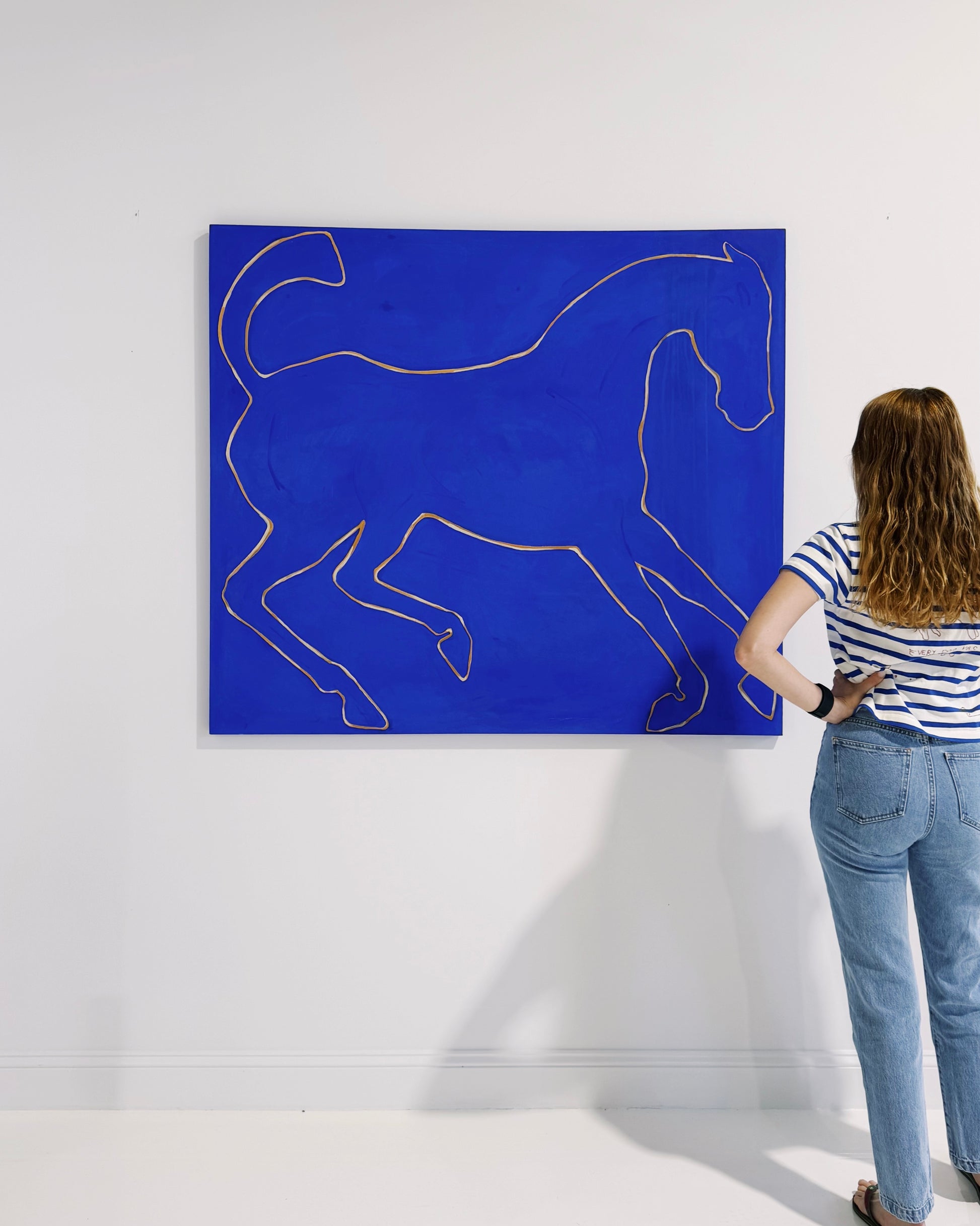 From Maggie Robertson's The Blue Horses series. Maggie’s most recent paintings, The Blue Horses, 2019-2025, add to the storied tradition of artists depicting the horse. Like art itself, the horse can imbue and symbolize almost anything to whom ever lay their eyes on them. The link between man and the horse is perhaps at this point in human evolution hard-wired in our psyche. These paintings, and her accompanying prints, tap into this emotional response humans have to the notion of the horse. Reduce to her adept use of undulating line and painted in velvety ultramarine, the horses seem to float in the environment of our collective history and bring contemplation and a sense of ease.