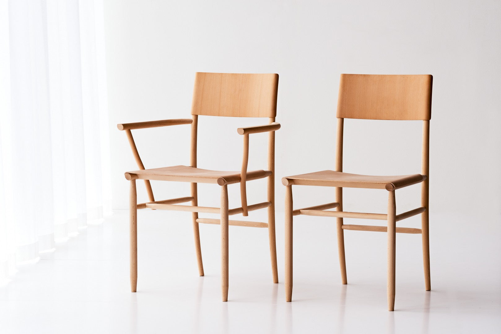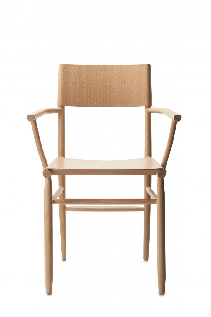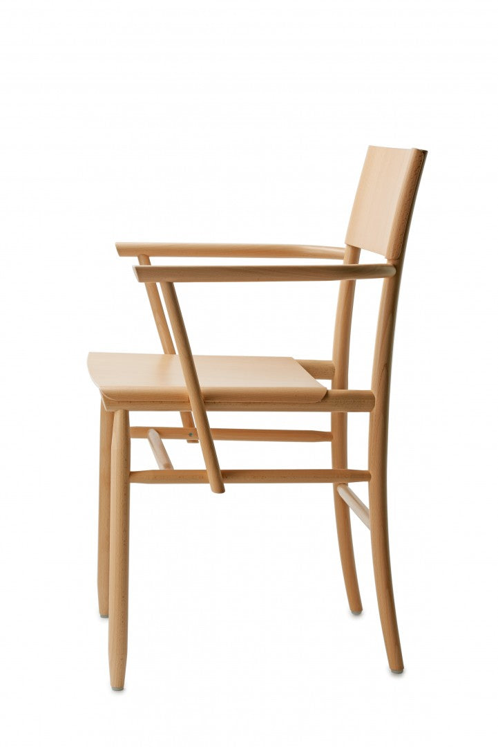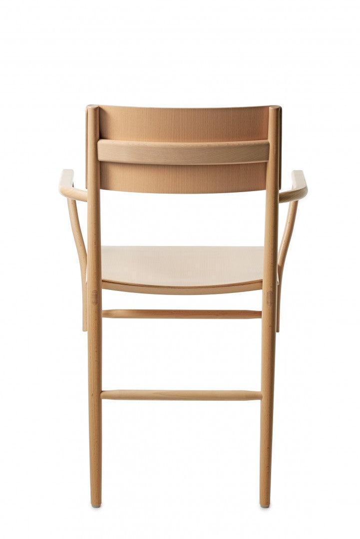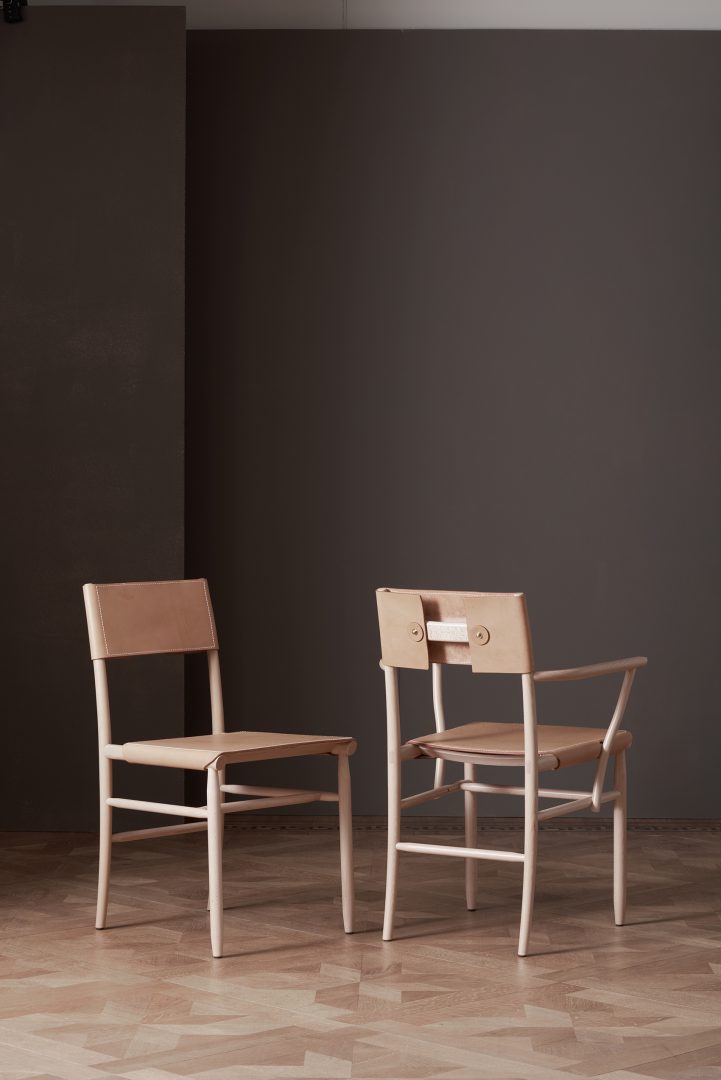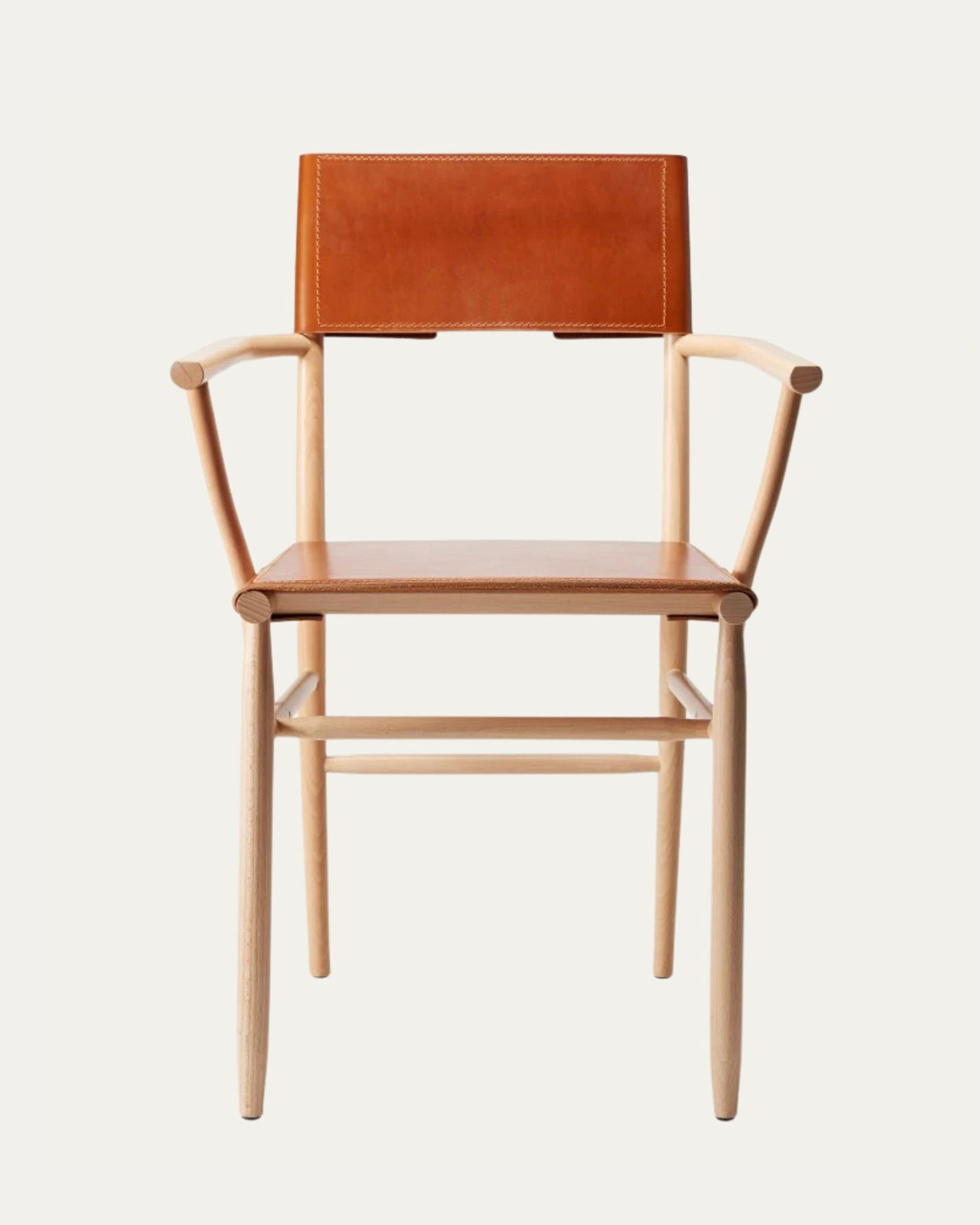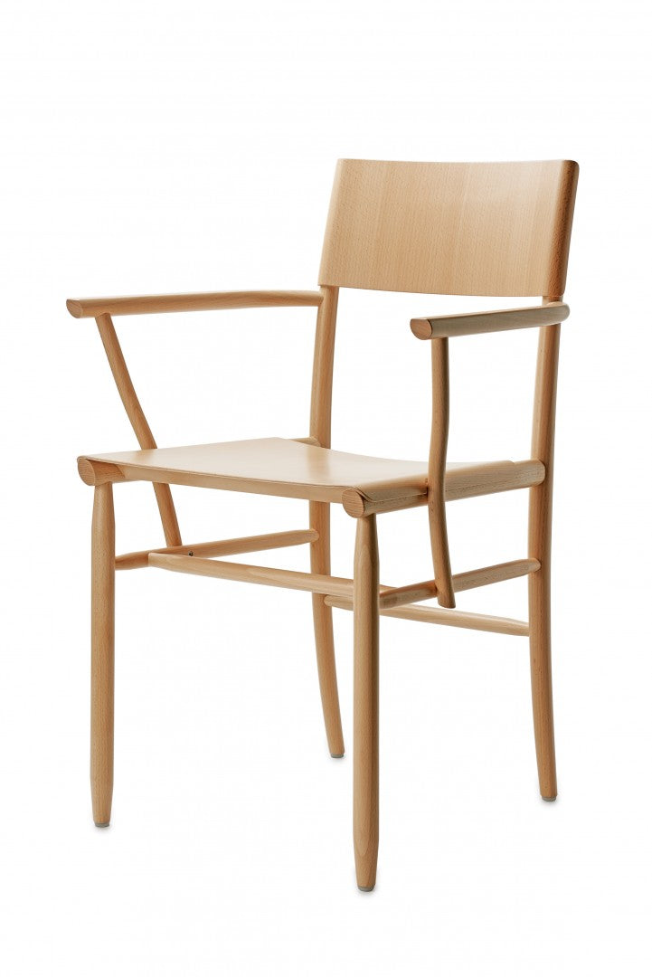 Armchair in solid beech. Seat and backrest in beech veneer or upholstered in vegetable tanned leather from Tärnsjö. Thread tone-on-tone matching leather. Plastic glides.