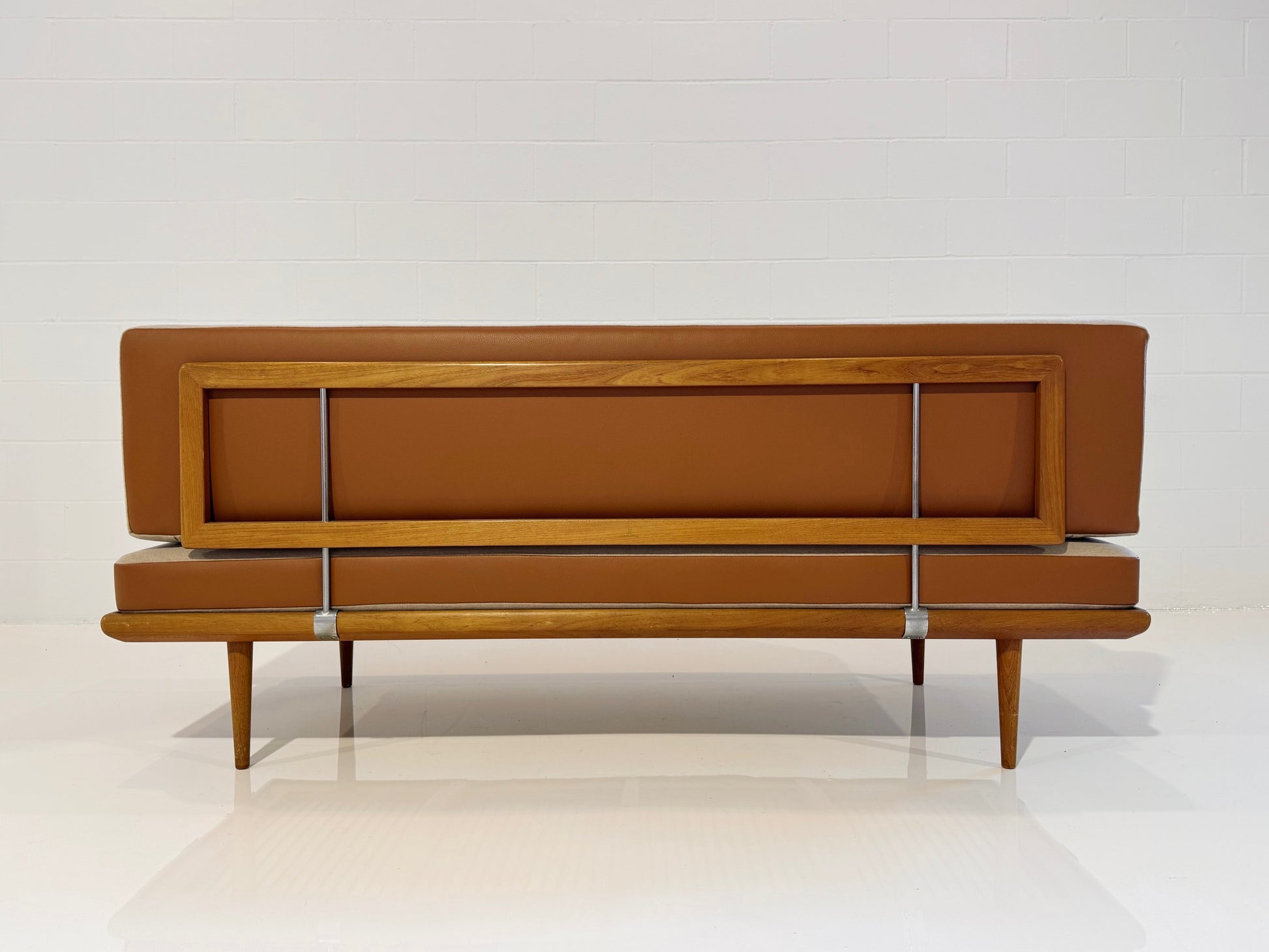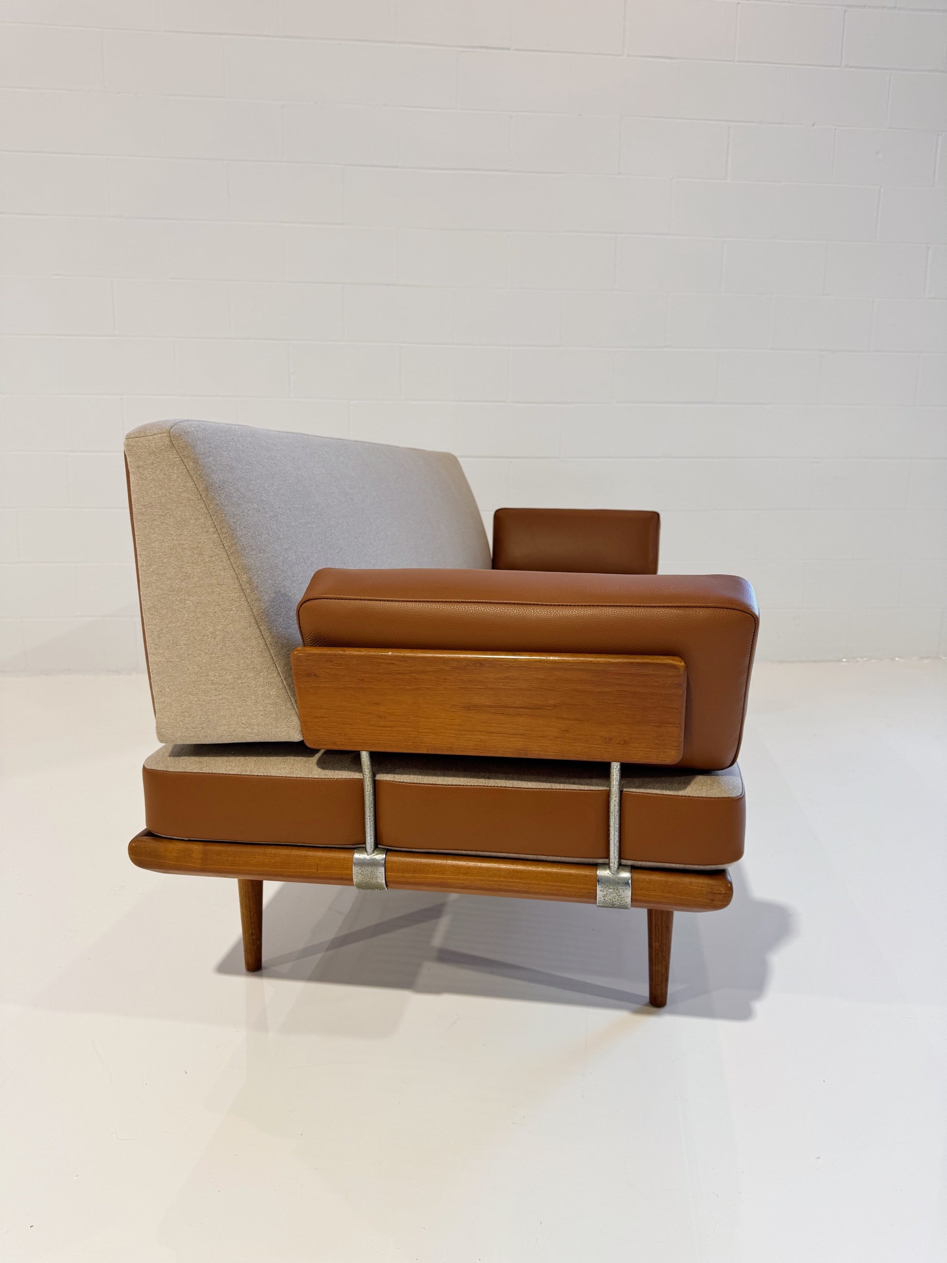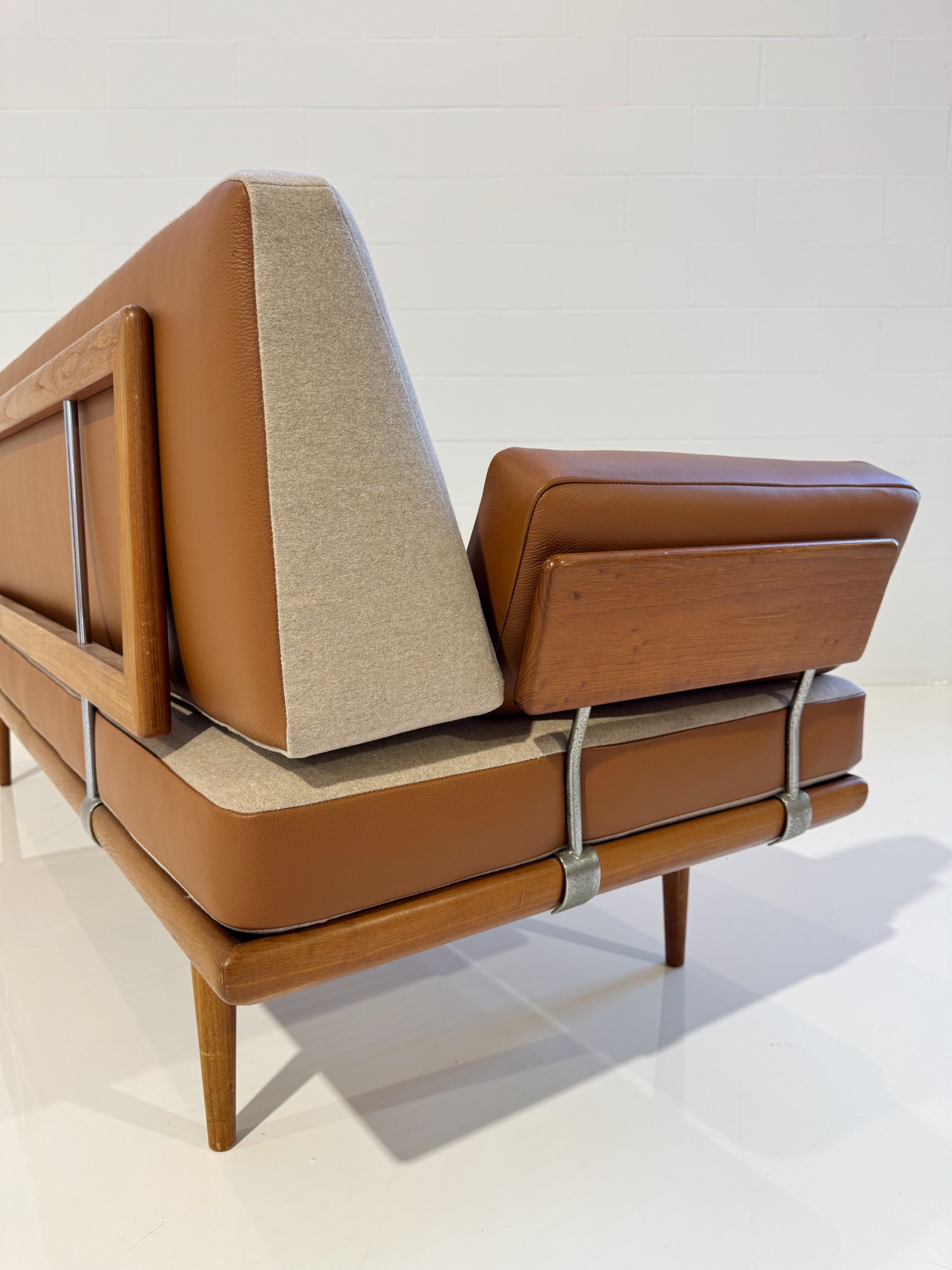 An exceptional sofa by Peter Hvidt & Orla Mølgaard-Nielsen for France & Son. We love this design. Gorgeously simple. Beautiful lines. The Minerva can be transformed from a couch to a daybed. The arms are on a slant for more comfort when lounging.
