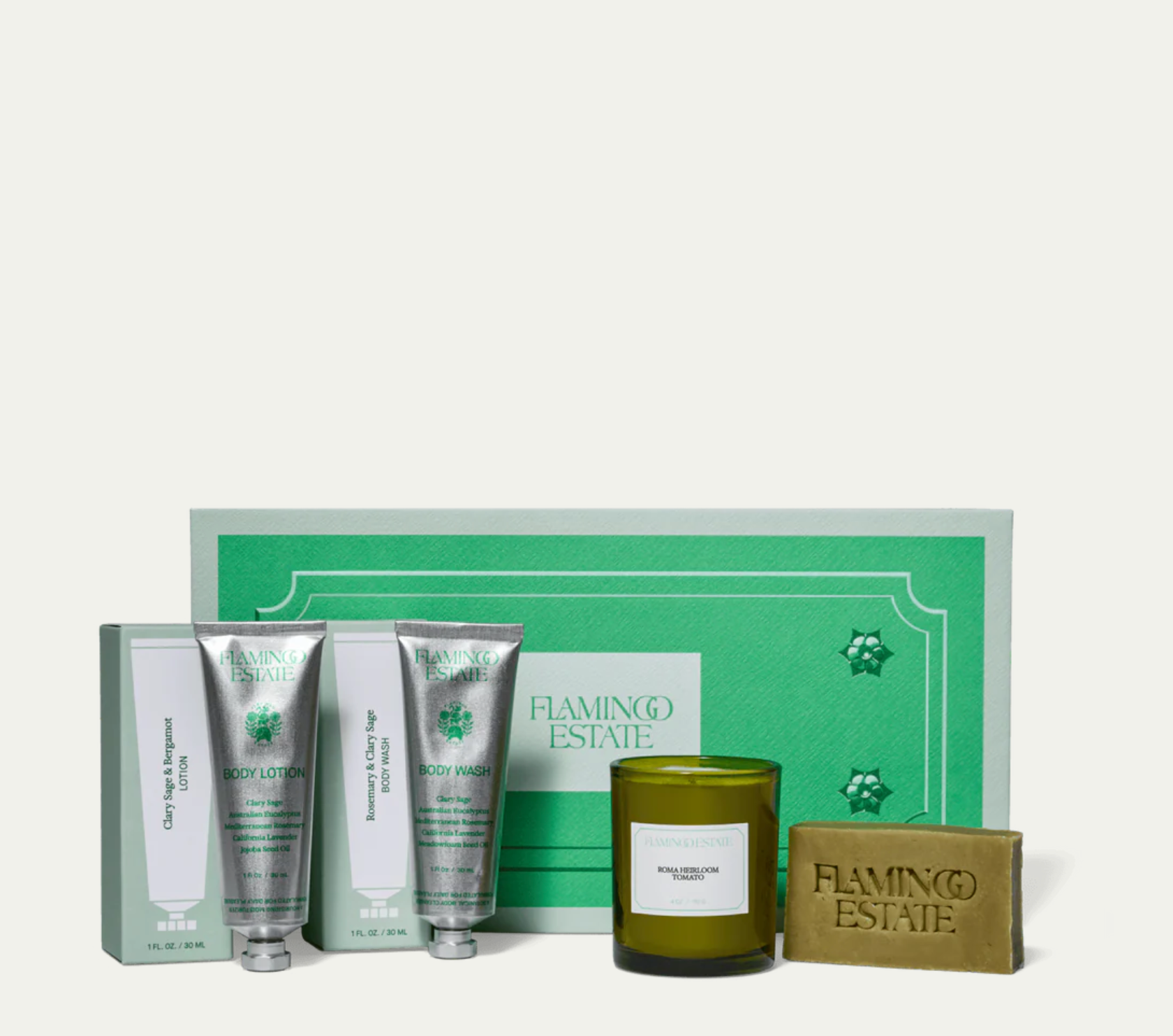 Take the garden on the road with a mini discovery set of our most loved products. It includes our favorite, most iconic bath and home essentials that started it all: A petite Sage & Bergamot Body Lotion, Sage & Rosemary Body Wash, Parsley & Rosemary Soap Bar, and Tomato Candle. It’s the perfect set to gift, take on vacation, or trial the brand for the first time. Above all, a complete bath ritual with the Estate’s most iconic scents & textures.