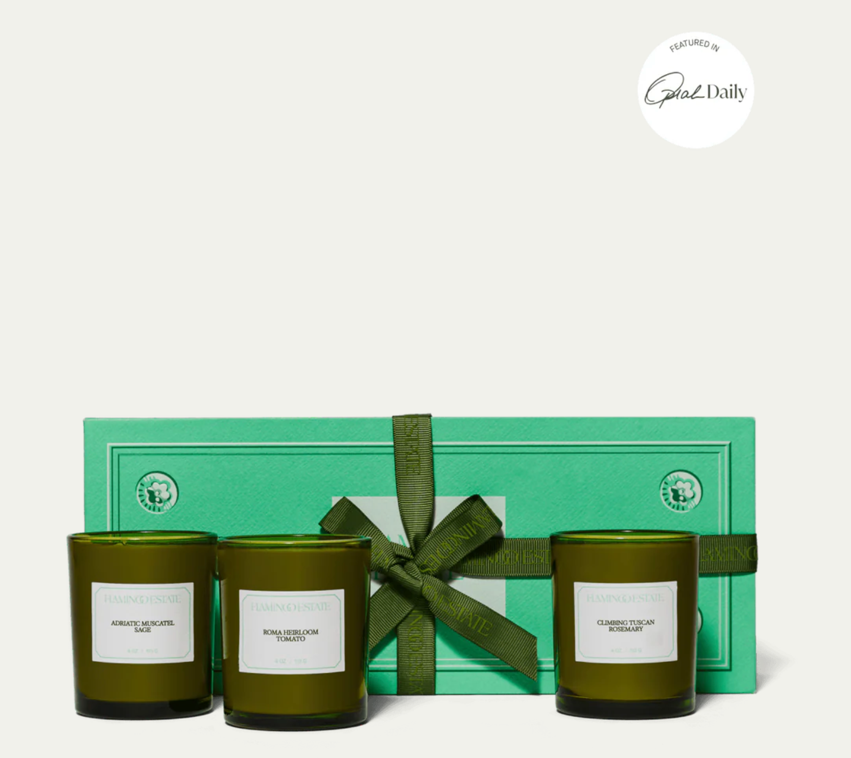 These three Candles are our most beloved scents. They are our origin story, and an embodiment of our garden — where a sea of Rosemary, Sage, and Tomato plants tingle your nose and push you along the pathways. We’ve hand-poured them in petite glass vessels so you can light them all at once and create ambiance, gift them, or trial our most iconic scents. A fêtes of light awaits.