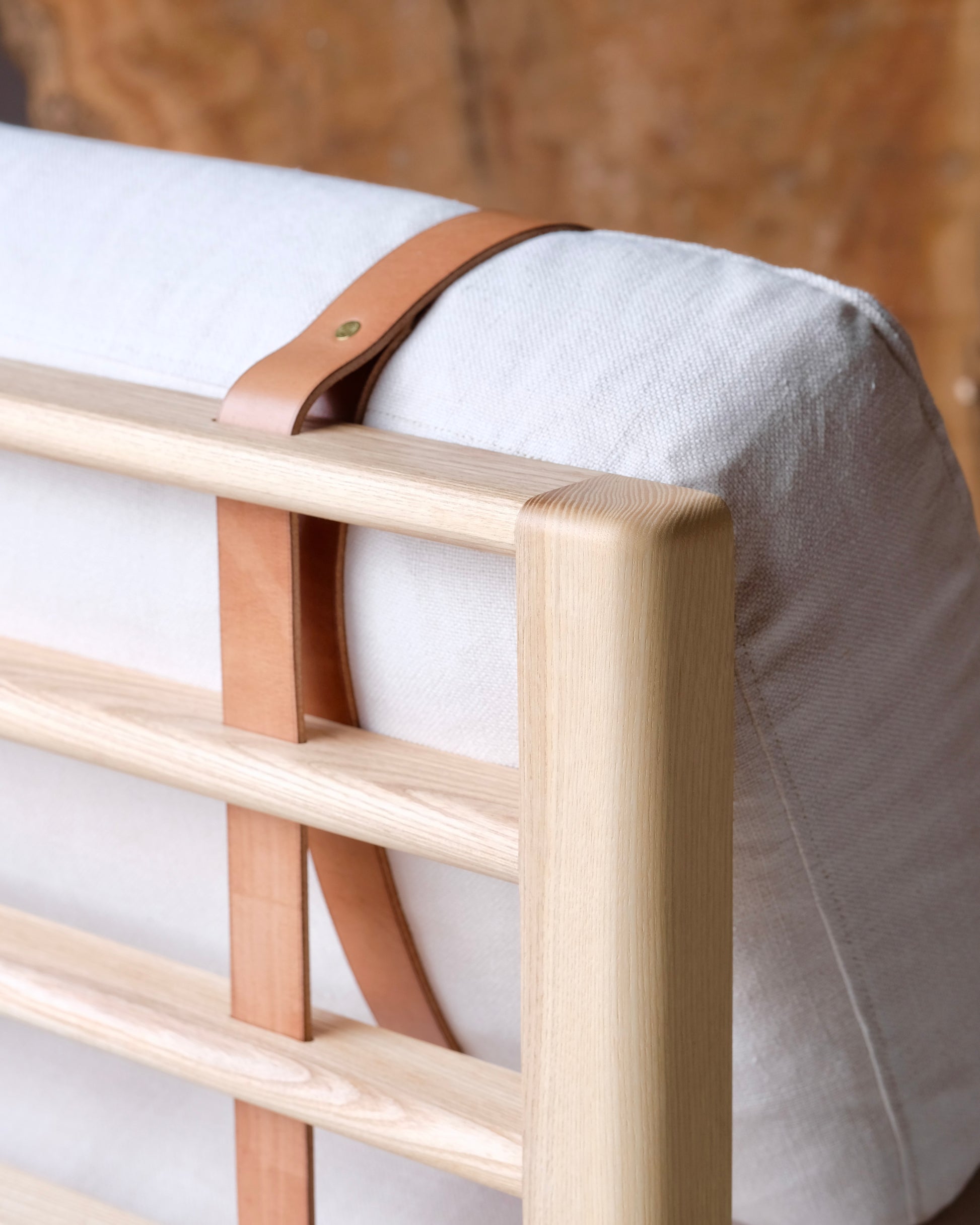 Bespoke Options: Upholstery is in a range of leathers, shearling, or heavyweight linen. Please enquire for the full range. The wood frame choices are ash, sycamore, London plane, elm, oak and walnut. Bespoke colors and finishes are available on request. We are happy to send out samples and sample packs. Please inquire if you would like samples sent to you.