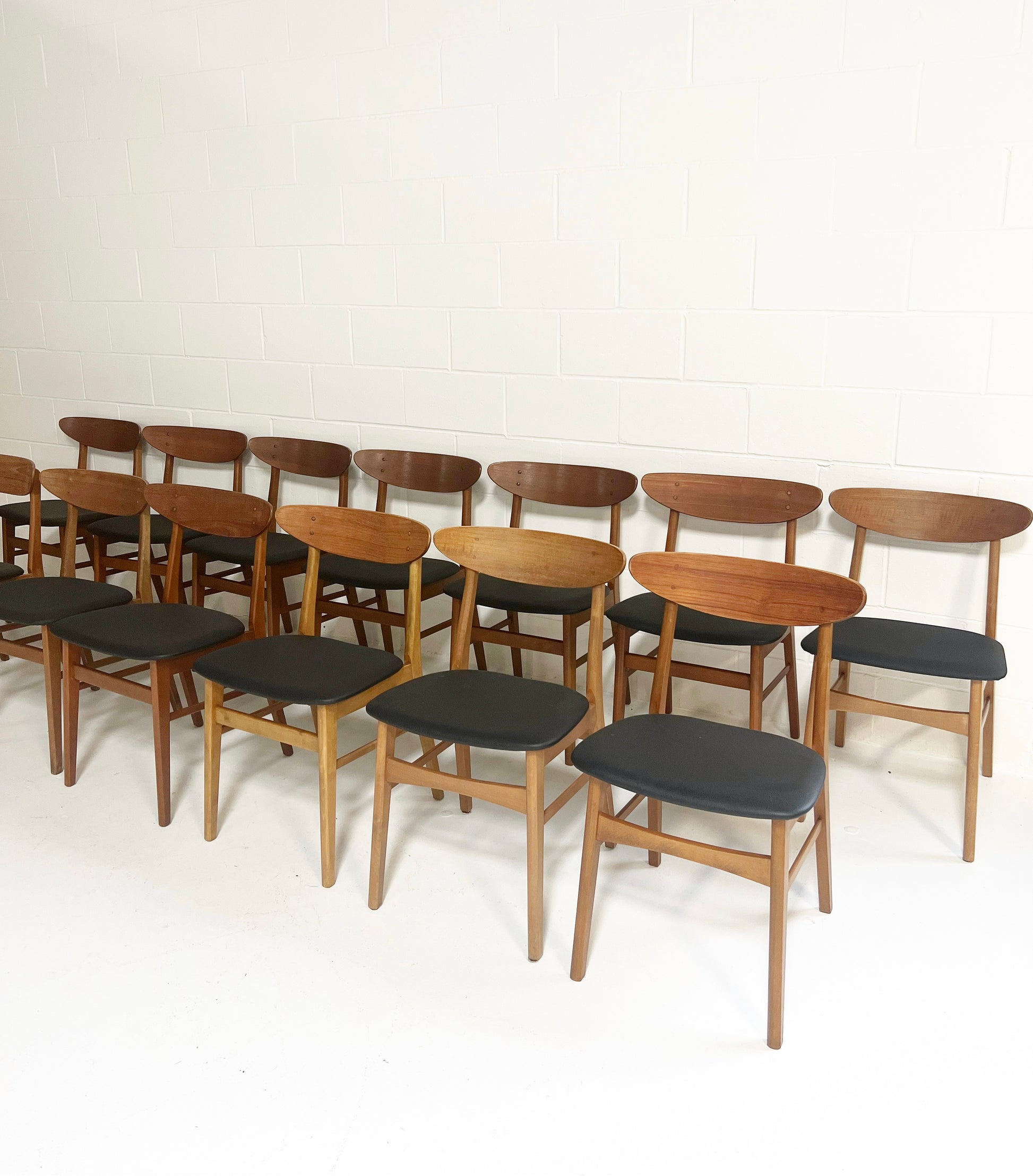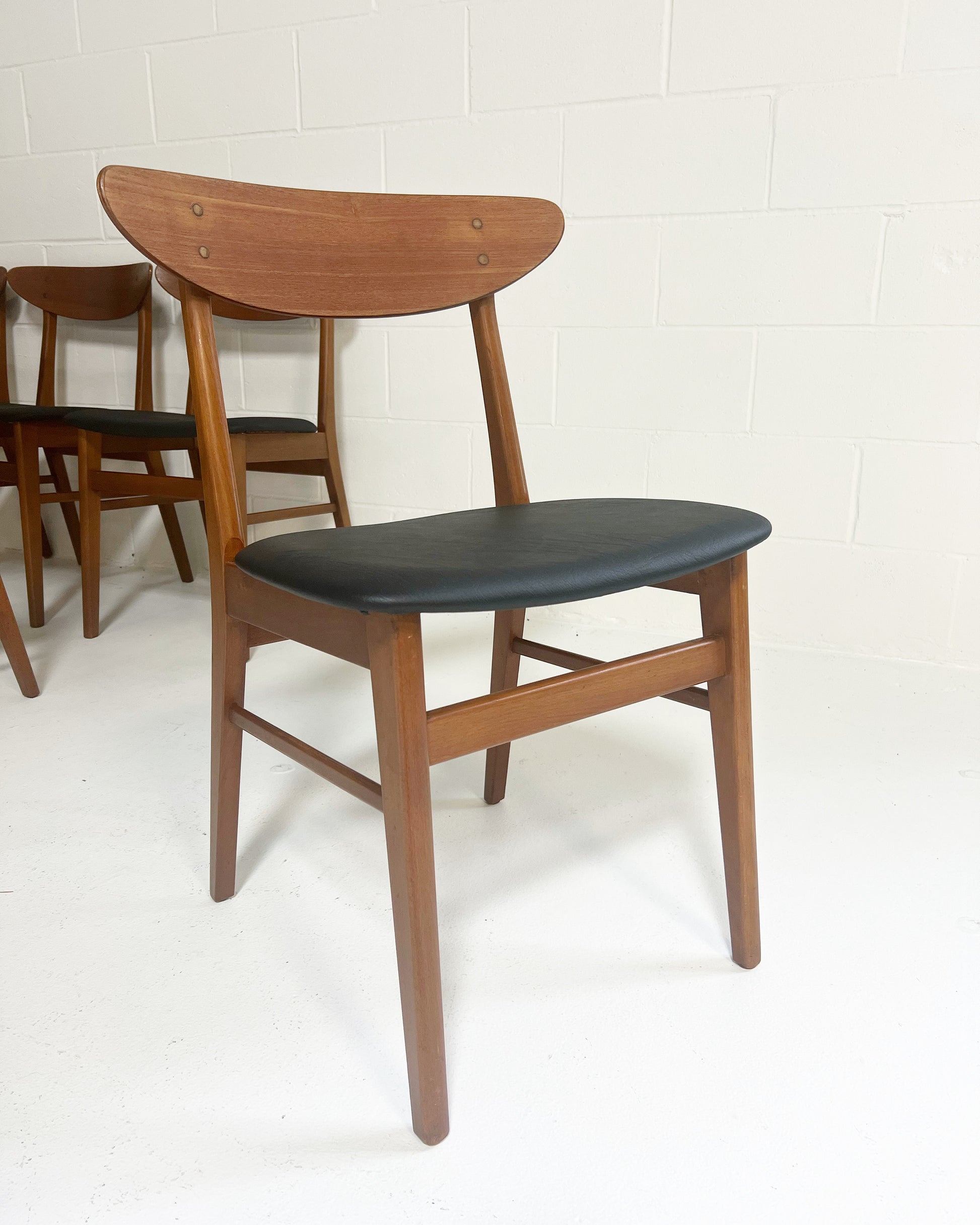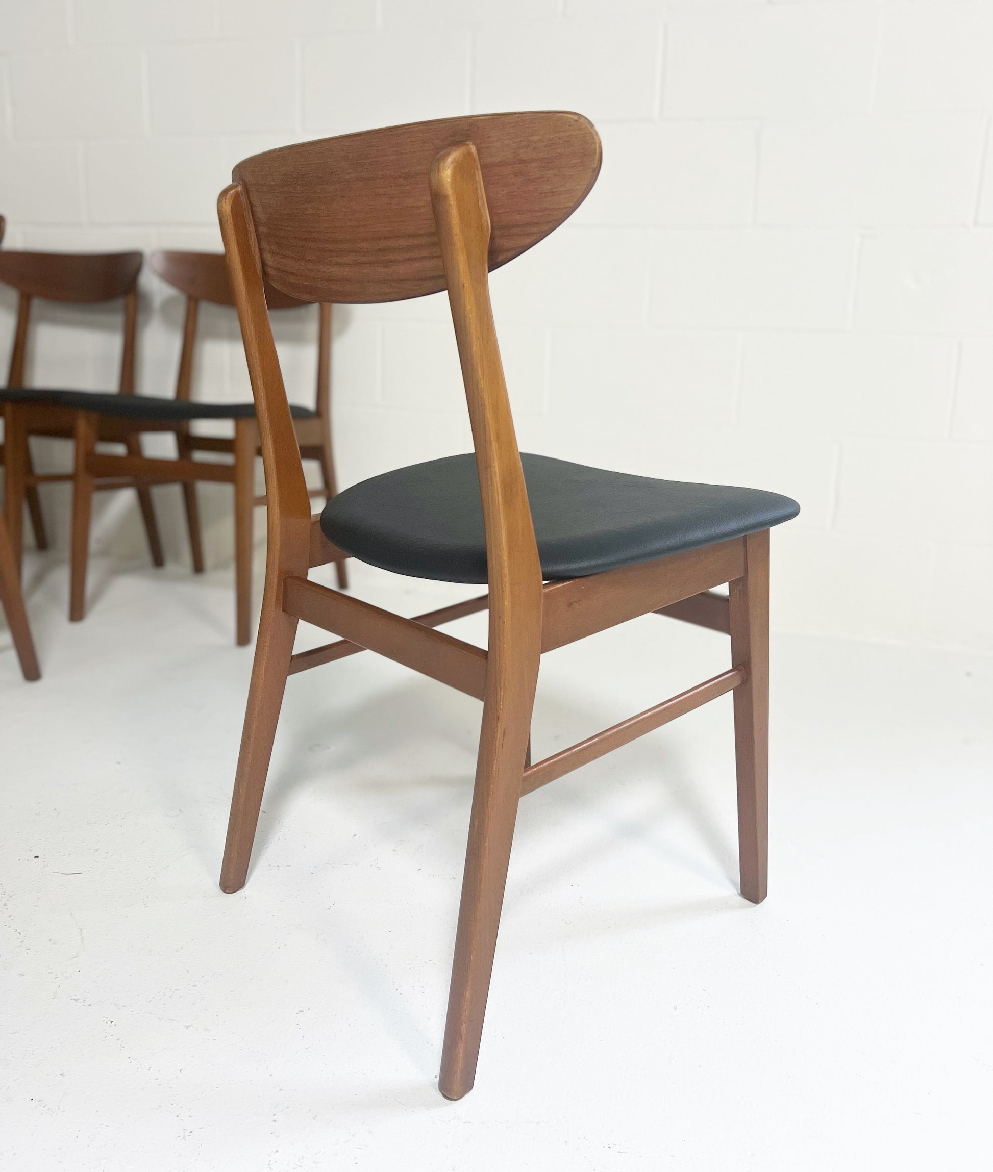The quintessential Danish dining chair. Paper manufacturer's label to underside of one example showing, ‘Farstrup Made in Denmark’. We have 4 remaining chairs available.