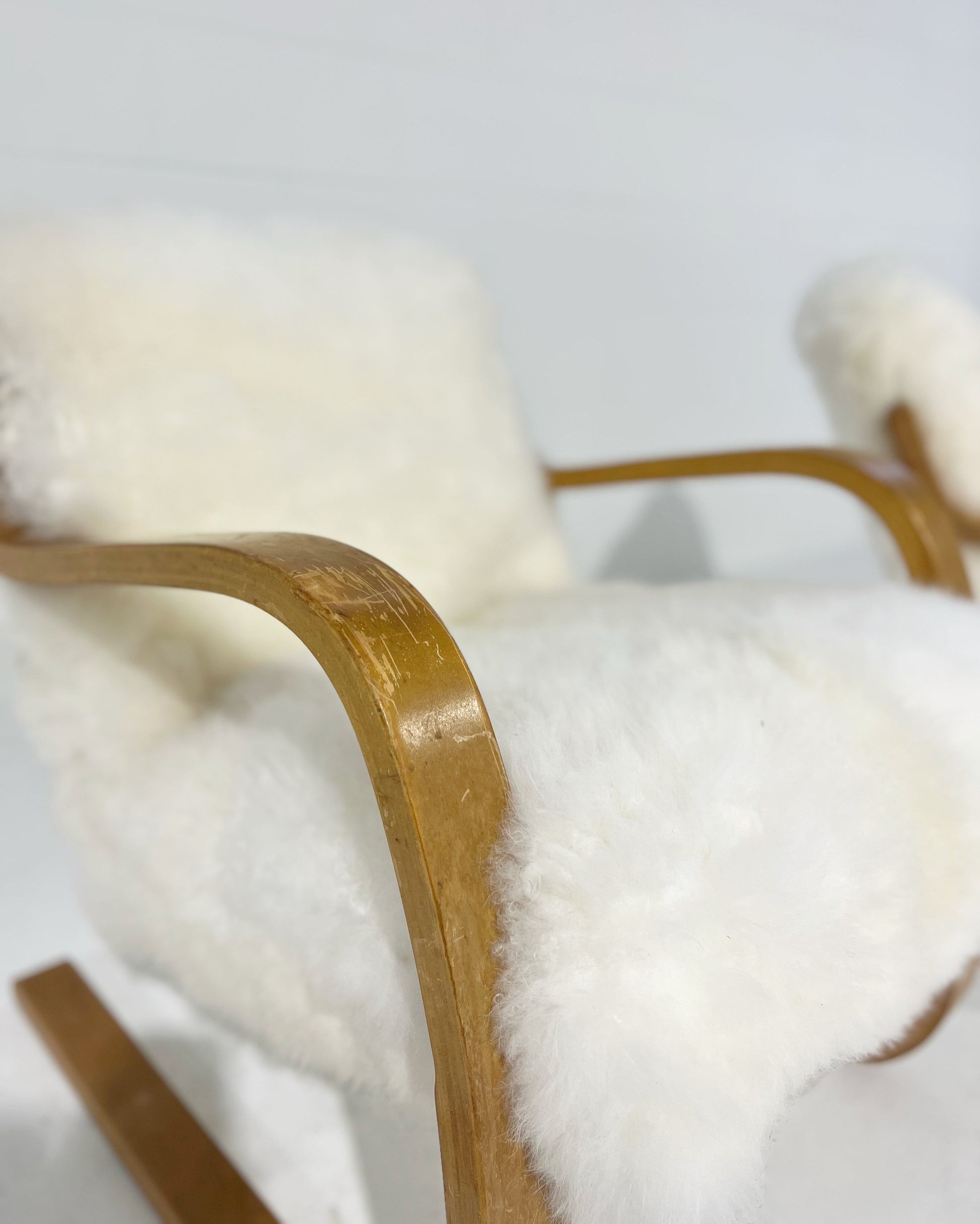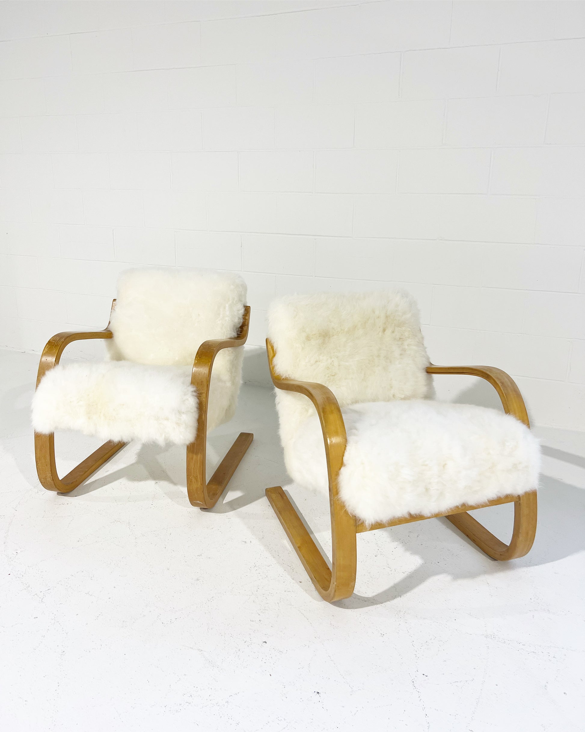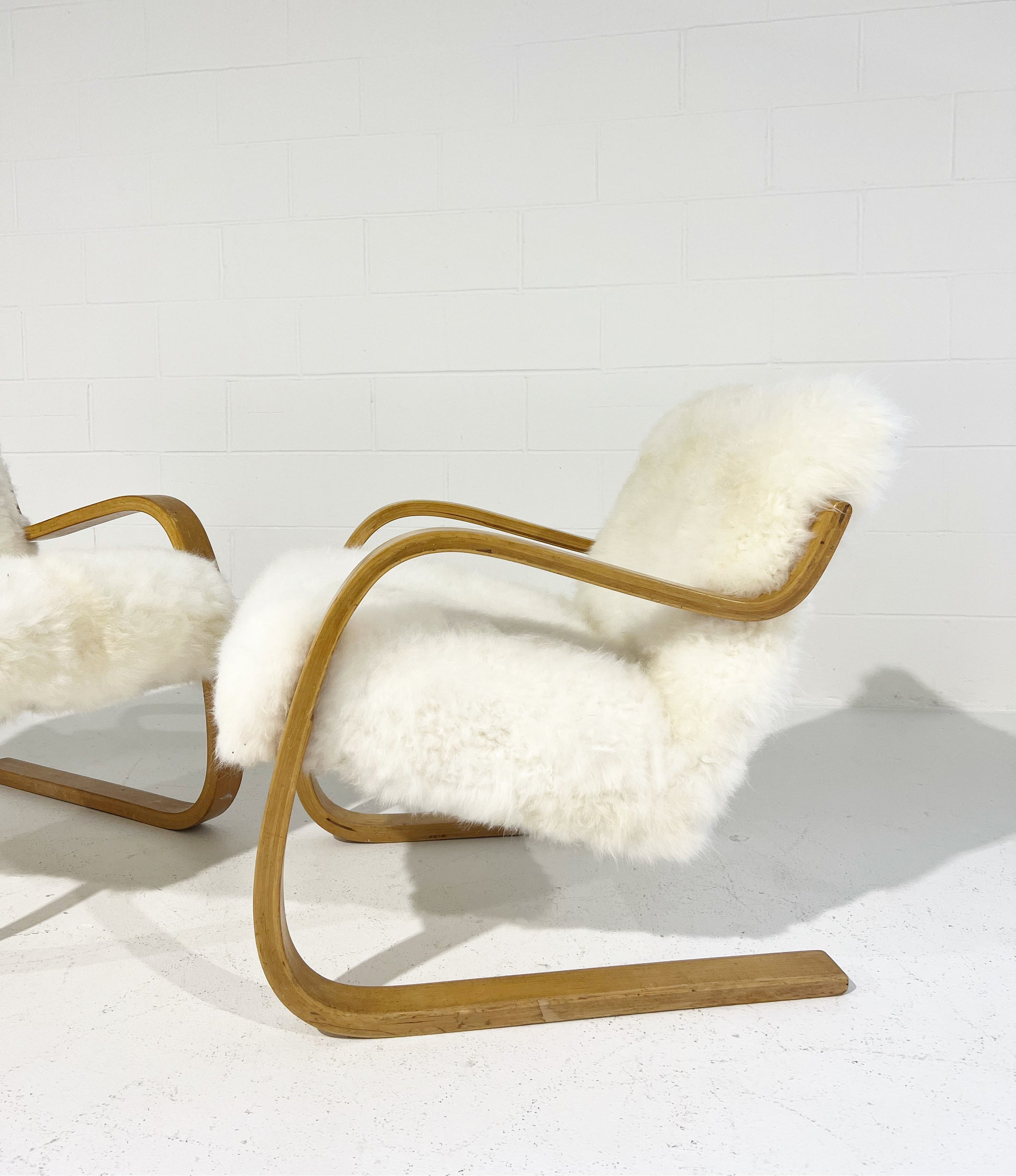 We love Aalto's sculptural cantilever designs showcasing the beauty of bent plywood. With the addition of cashmere shearling, this chair rockets into the next level of comfort. The beautiful combination of natural blond beech wood with the texture and color of the cashmere shearling is a match made in design dreamland.