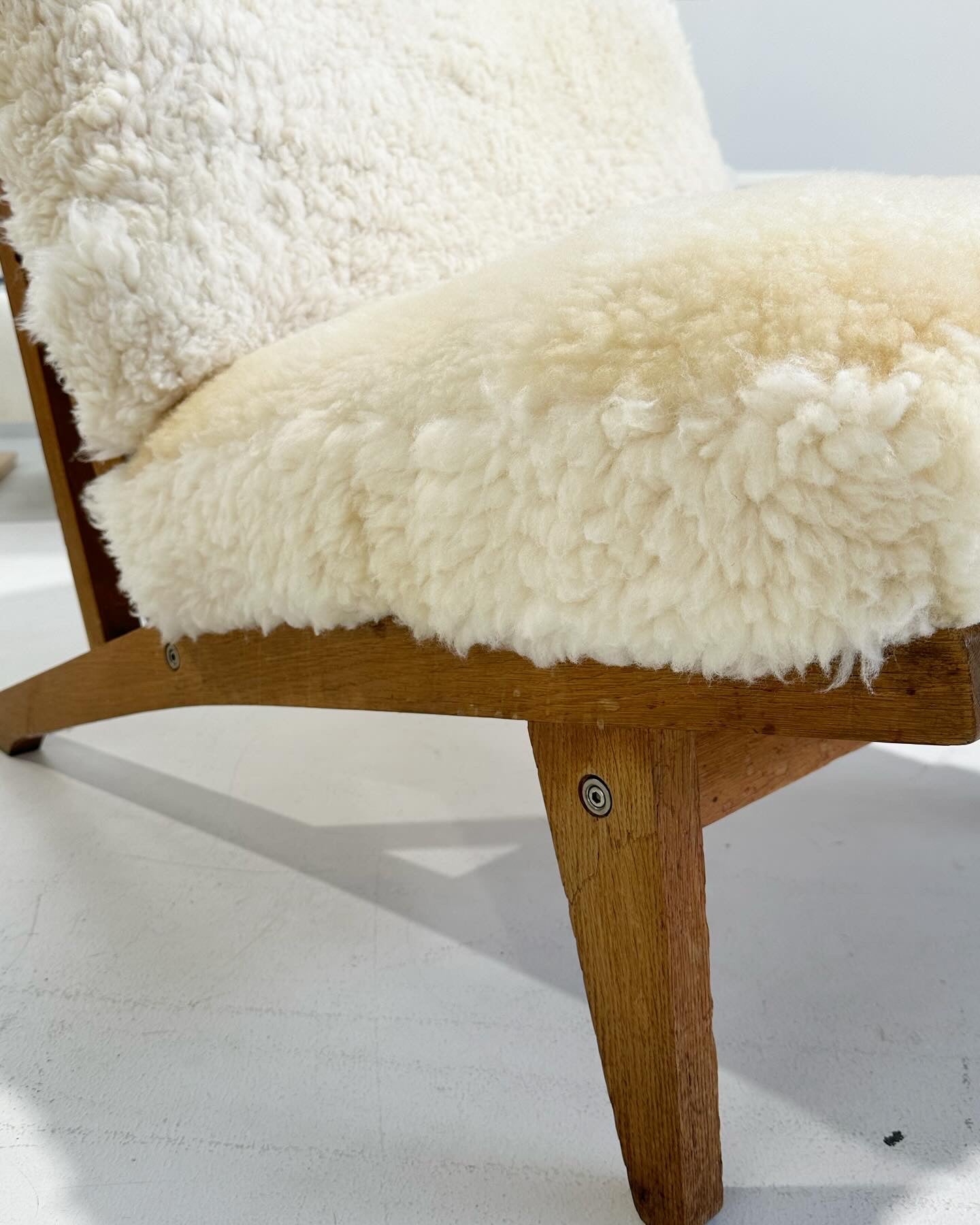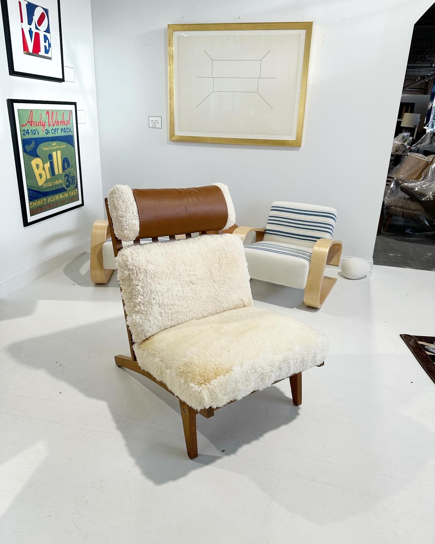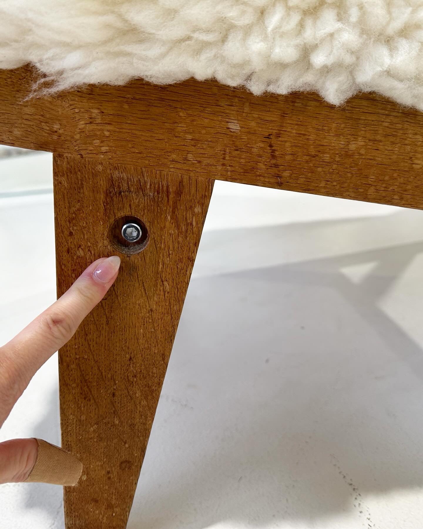 Great vintage condition. Ready for everyday use. Sheepskin cushions are brand new, made in Saint Louis.