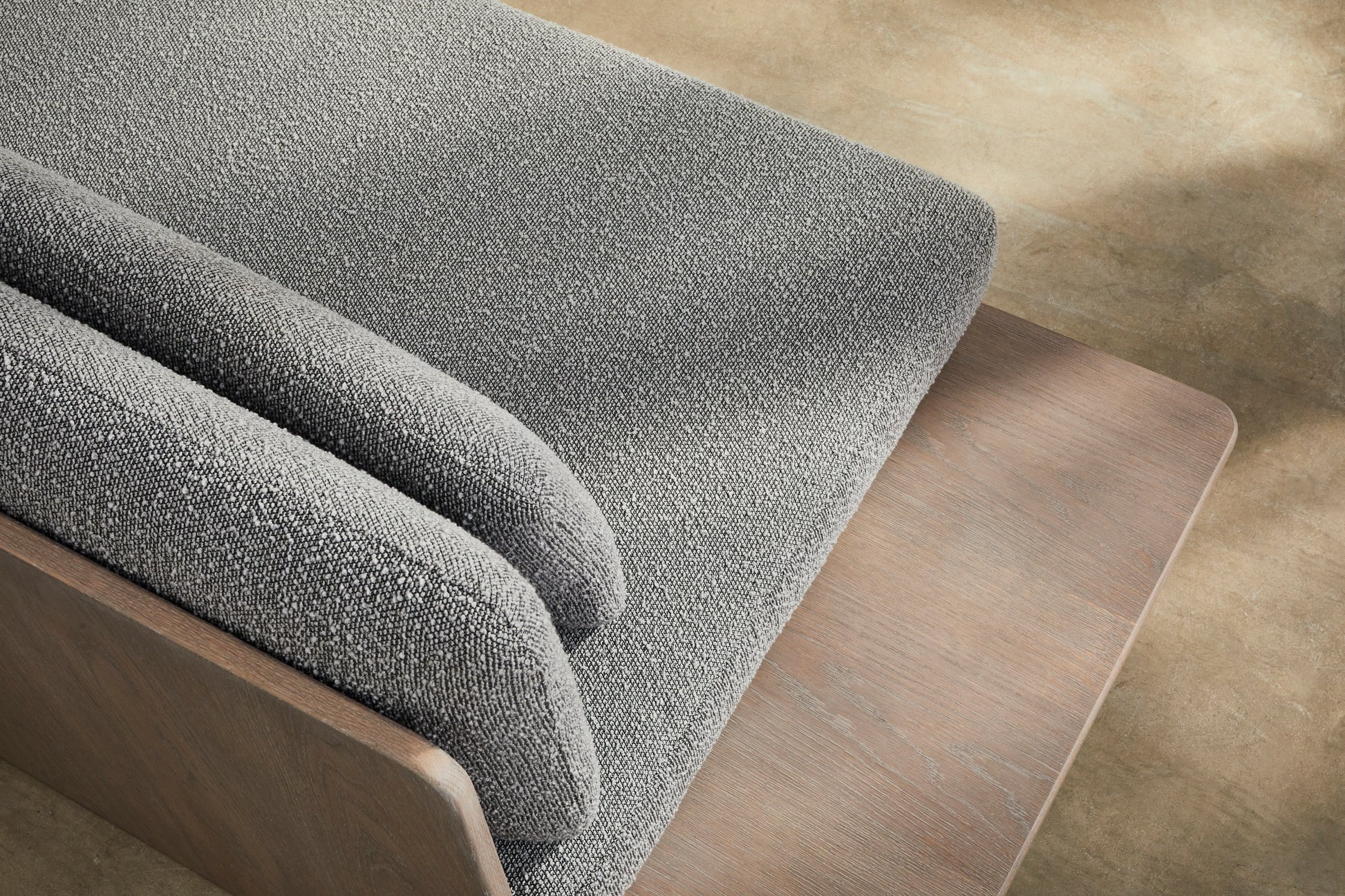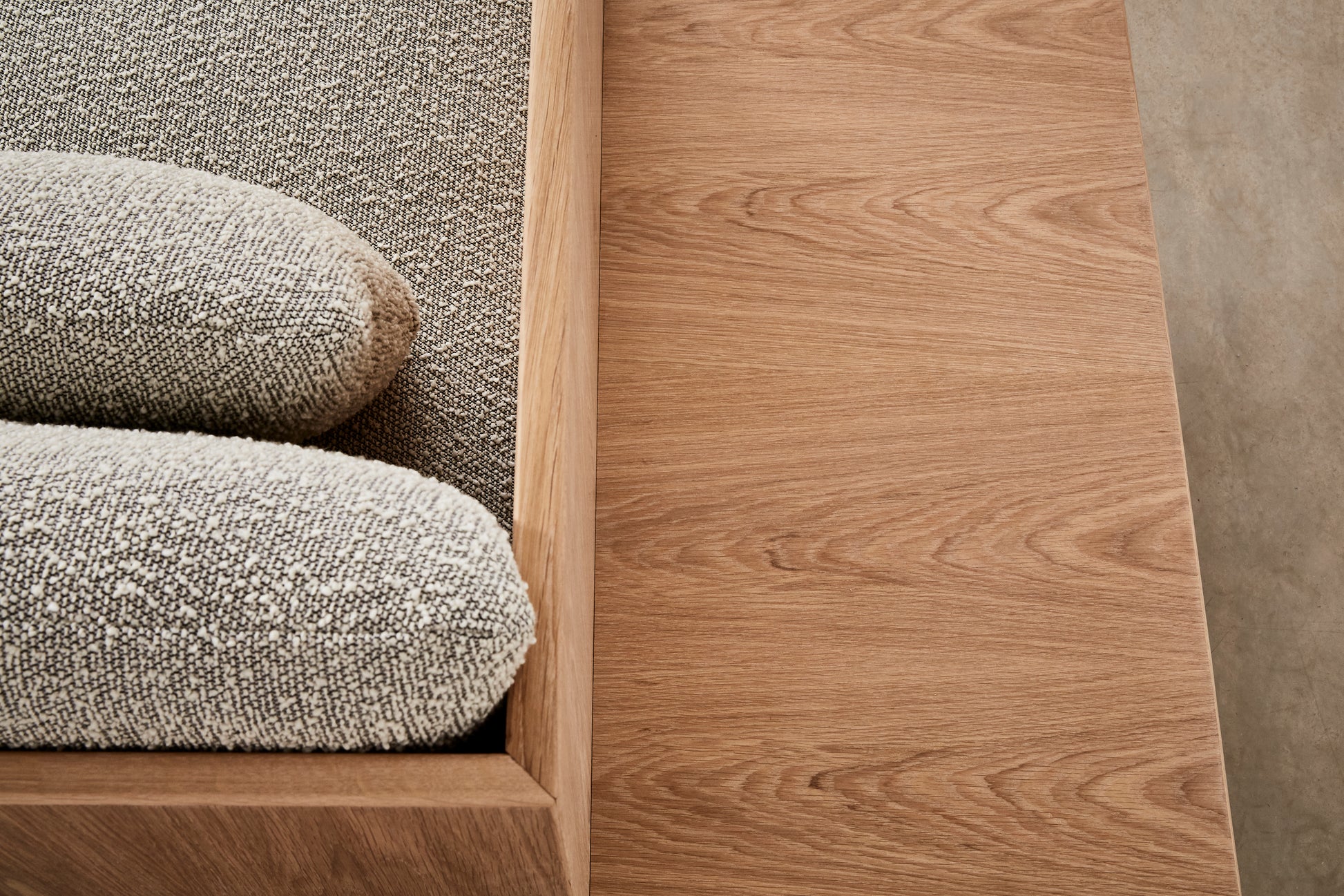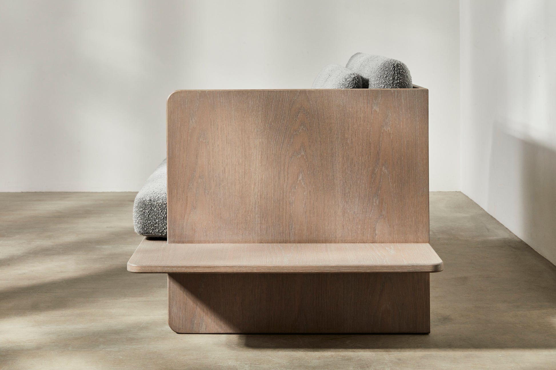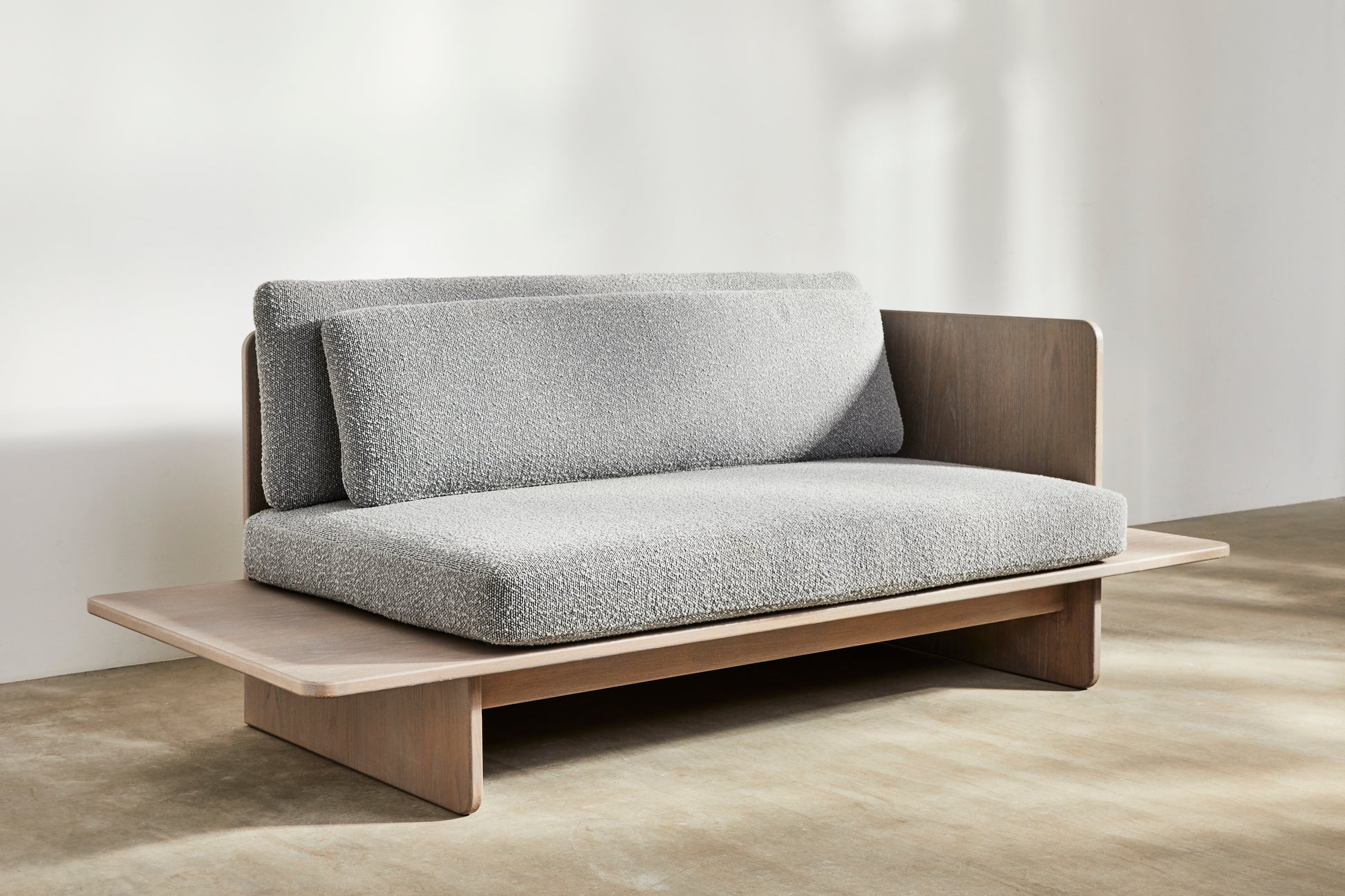 The Muse Sofa is designed for cozy and relaxed lounging. Minimalist in design, the frame is made from oak with a choice of subtly toned finishes that allow the beauty of the grain to be exposed. It is offered with side tables at one or both ends; or alternatively it can be specified without tables with one or two arms. Where just one side table is required, it can be specified as right hand or left hand.