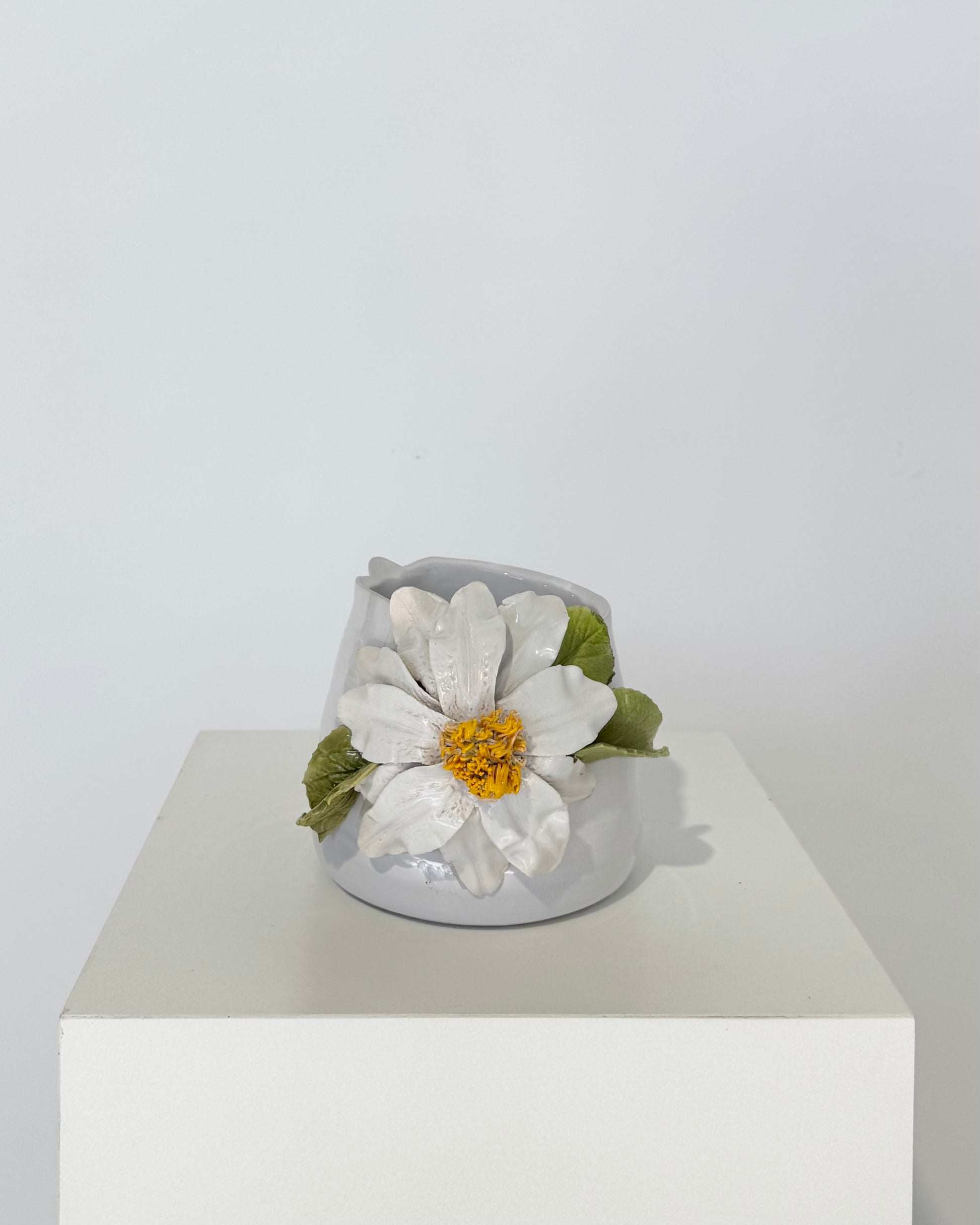 English Porcelain vessel, hand-built and hand-painted flowers.