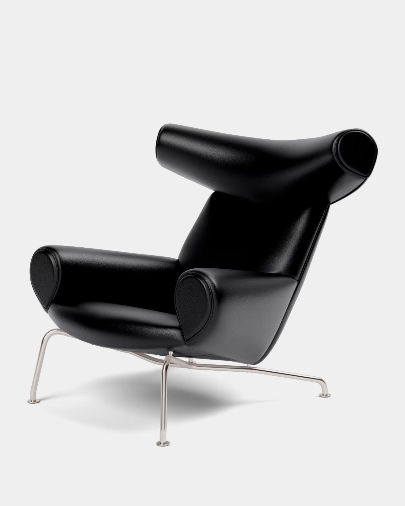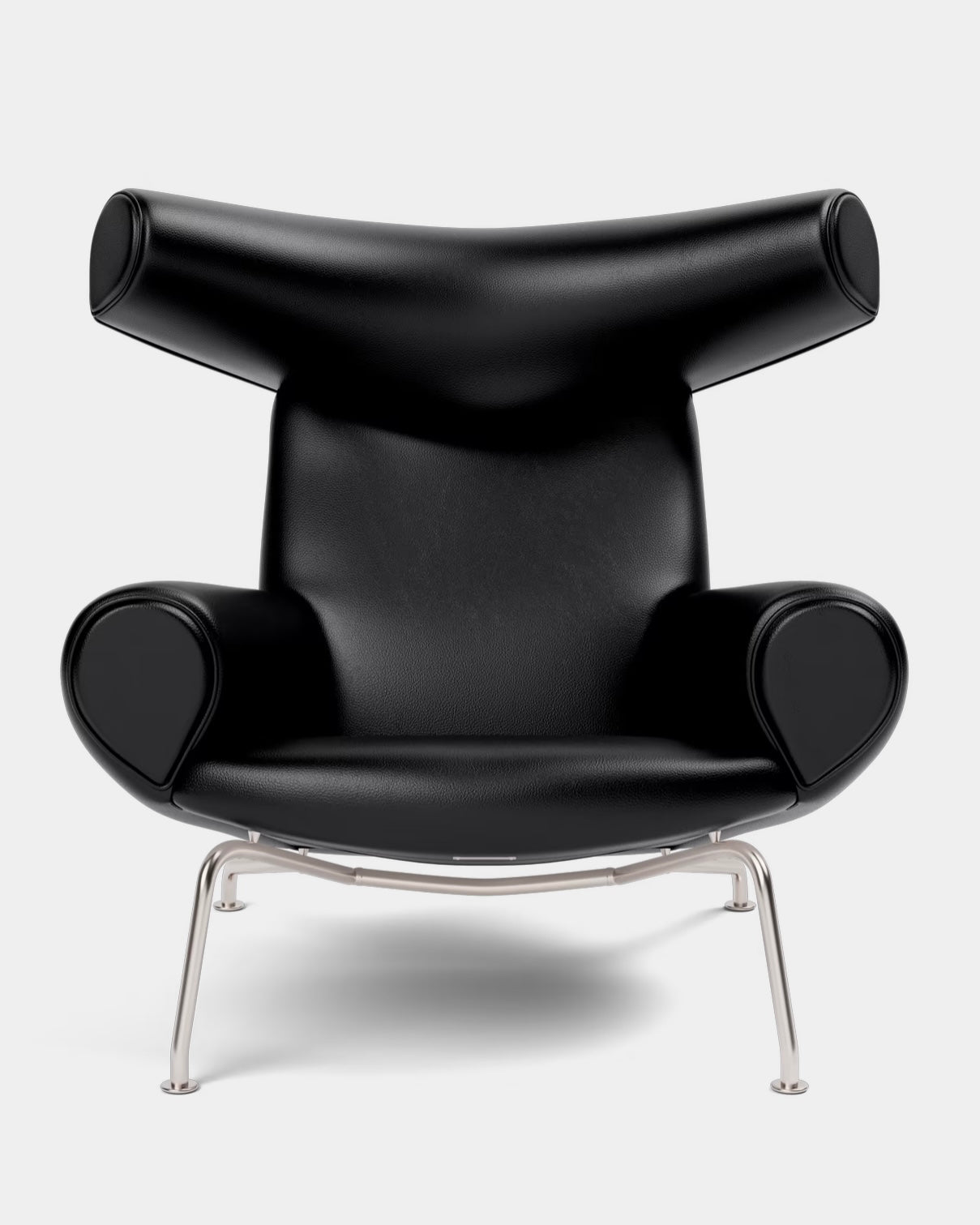 Designed by Hans J. Wegner, the Ox Chair is an iconic statement piece with an indisputable presence. A bold, sculptural chair that challenged the understated aesthetics of Danish design at the time, with its distinctive headrest referencing ox horns and its voluminous body. It demonstrates Wegner’s organic, artistic approach to furniture and desire to redefine traditional seating.