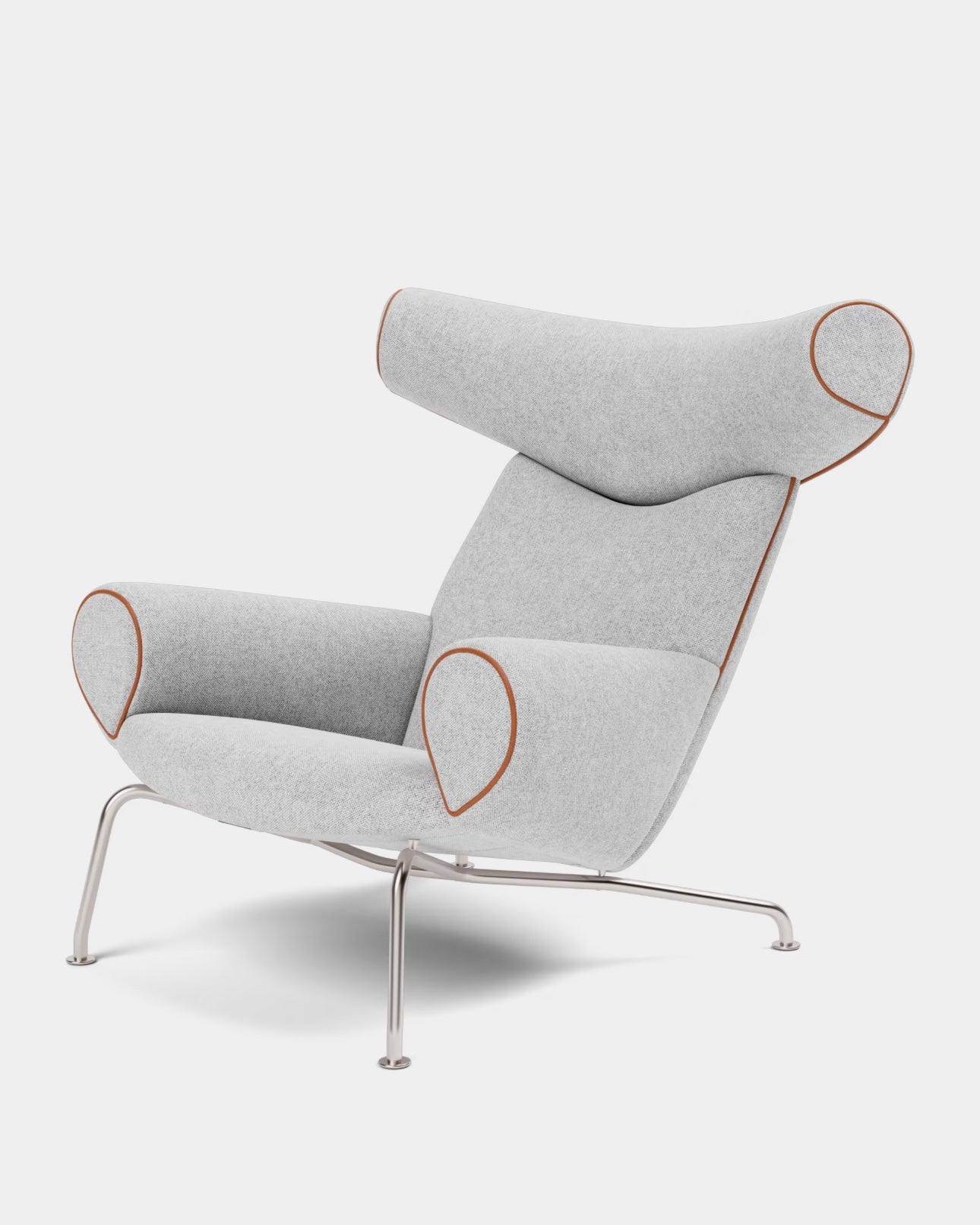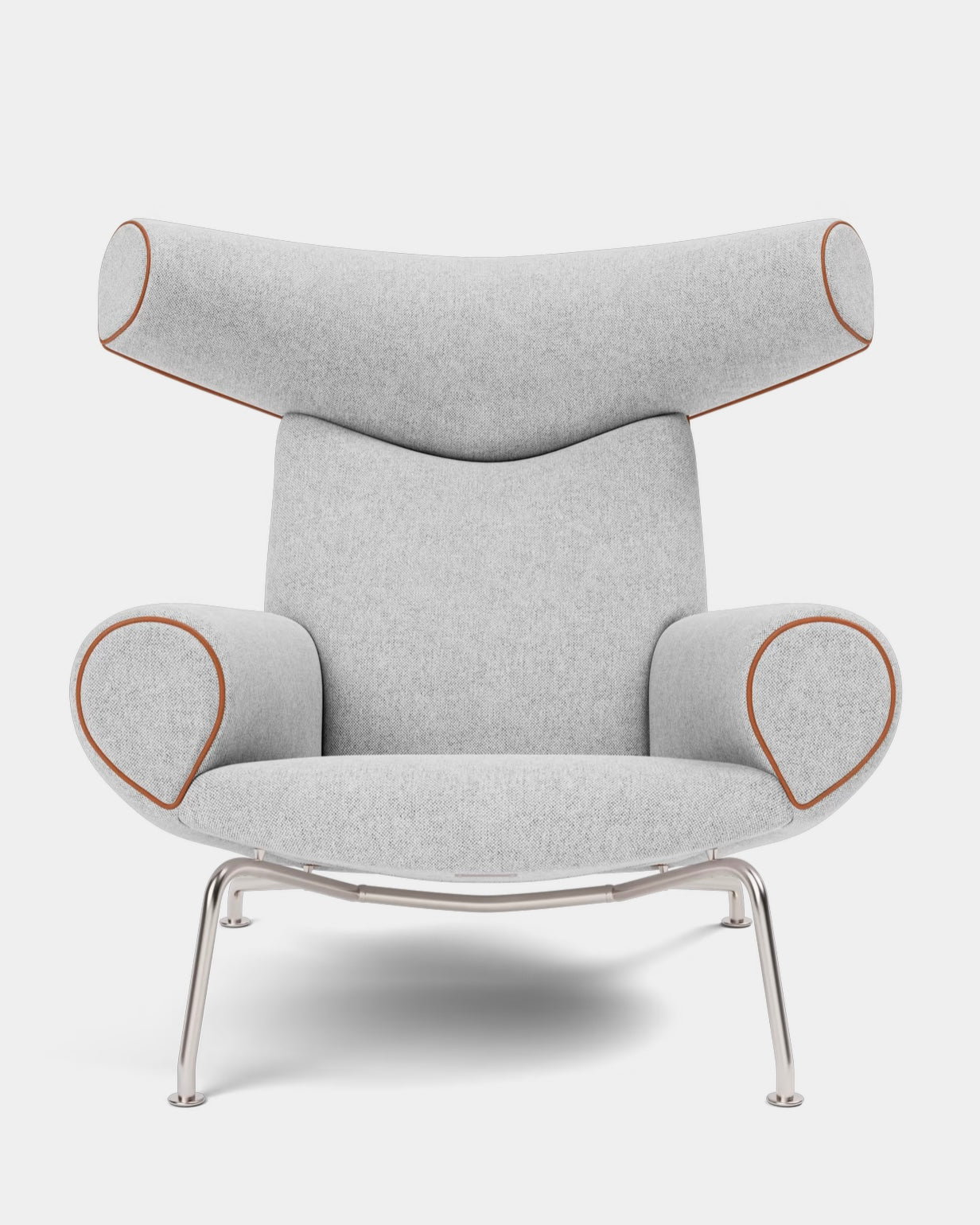 Designed by Hans J. Wegner, the Ox Chair is an iconic statement piece with an indisputable presence. A bold, sculptural chair that challenged the understated aesthetics of Danish design at the time, with its distinctive headrest referencing ox horns and its voluminous body. It demonstrates Wegner’s organic, artistic approach to furniture and desire to redefine traditional seating.