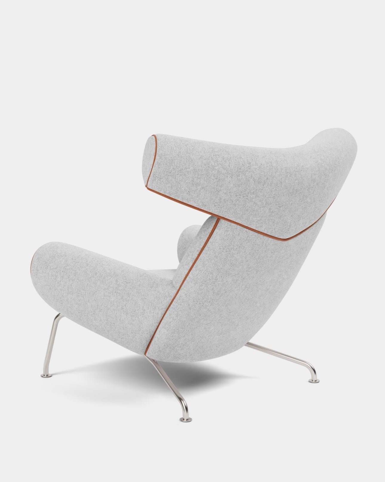 Features | Fully upholstered easy chair in fabric or leather. Inner frame of solid wood and moulded cold cured foam. Pads at neck and armrest includes piping, available in leather as contrast to fabric upholstery. Stainless steel base. Mounted with plastic glides.