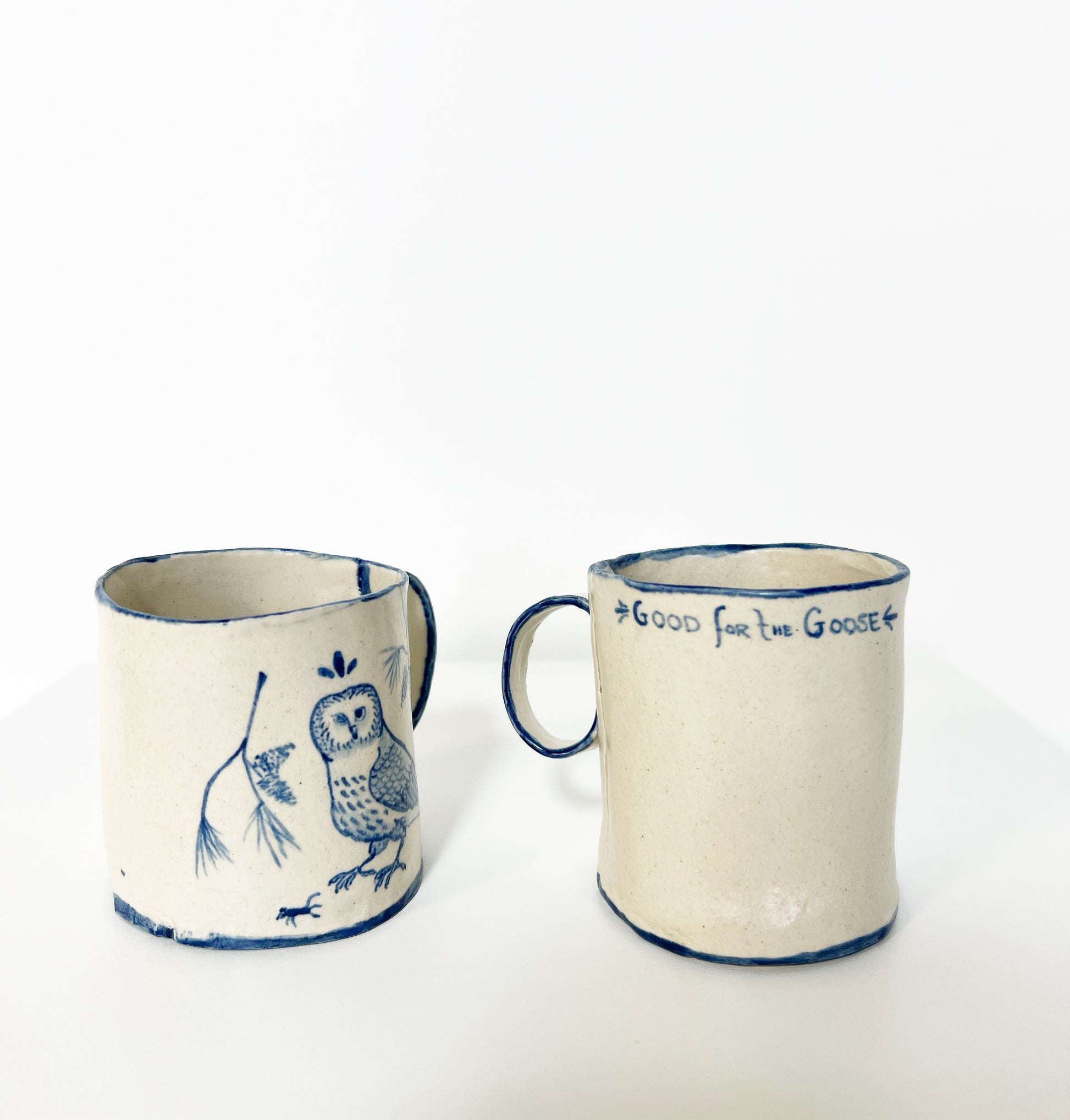 The Country Gentleman Collection by artist Maggie Robertson is a beautiful series of one-of-a-kind stoneware vessels. Each unique piece embraces the seams and irregularities of her hand-built technique complemented by intricate, hand-painted scenes of the English countryside in classic blue and white. The vessels are water tight and food safe, microwaveable and dishwasher safe; however, as they are art pieces and fragile, we would recommend hand washing.