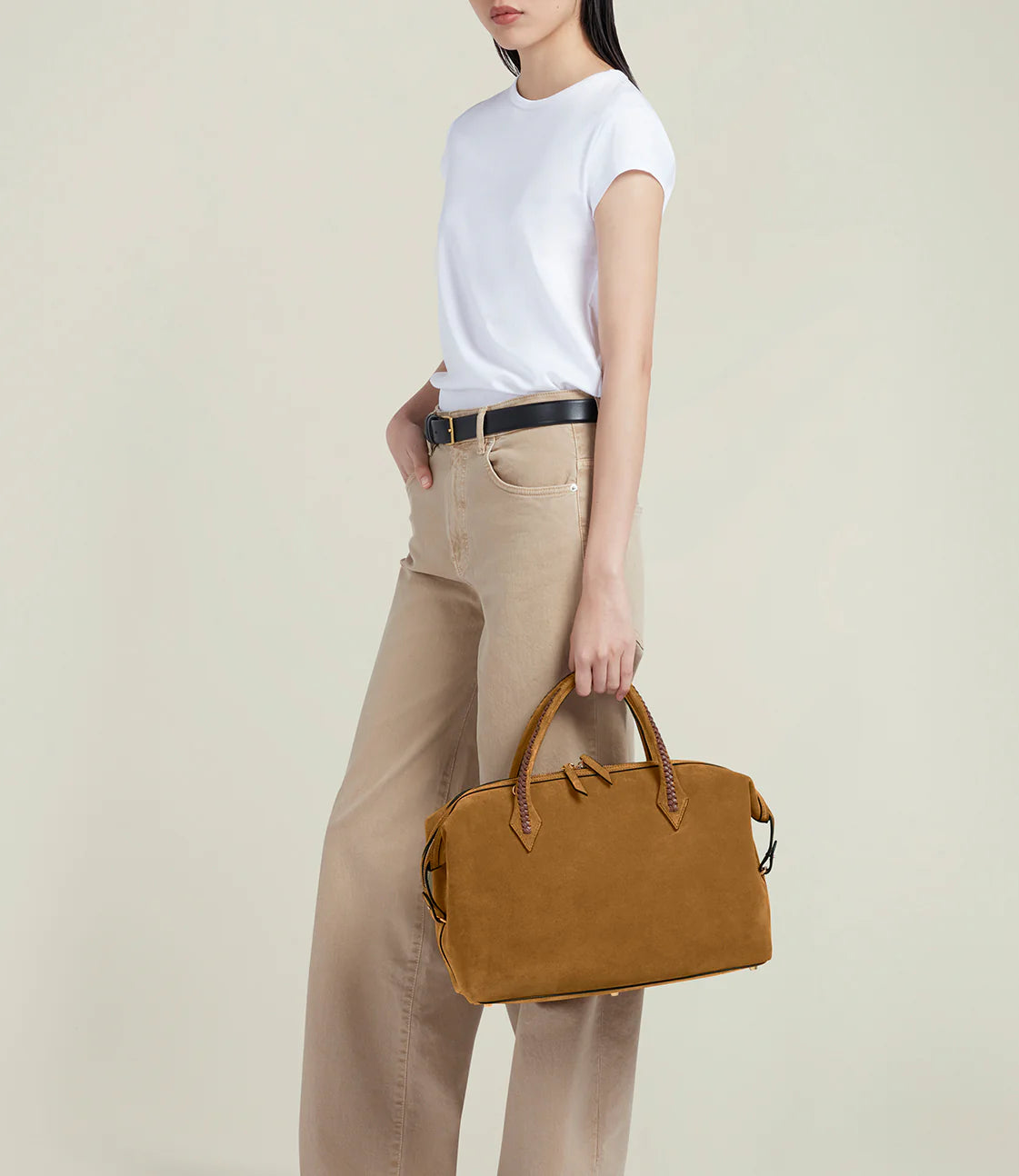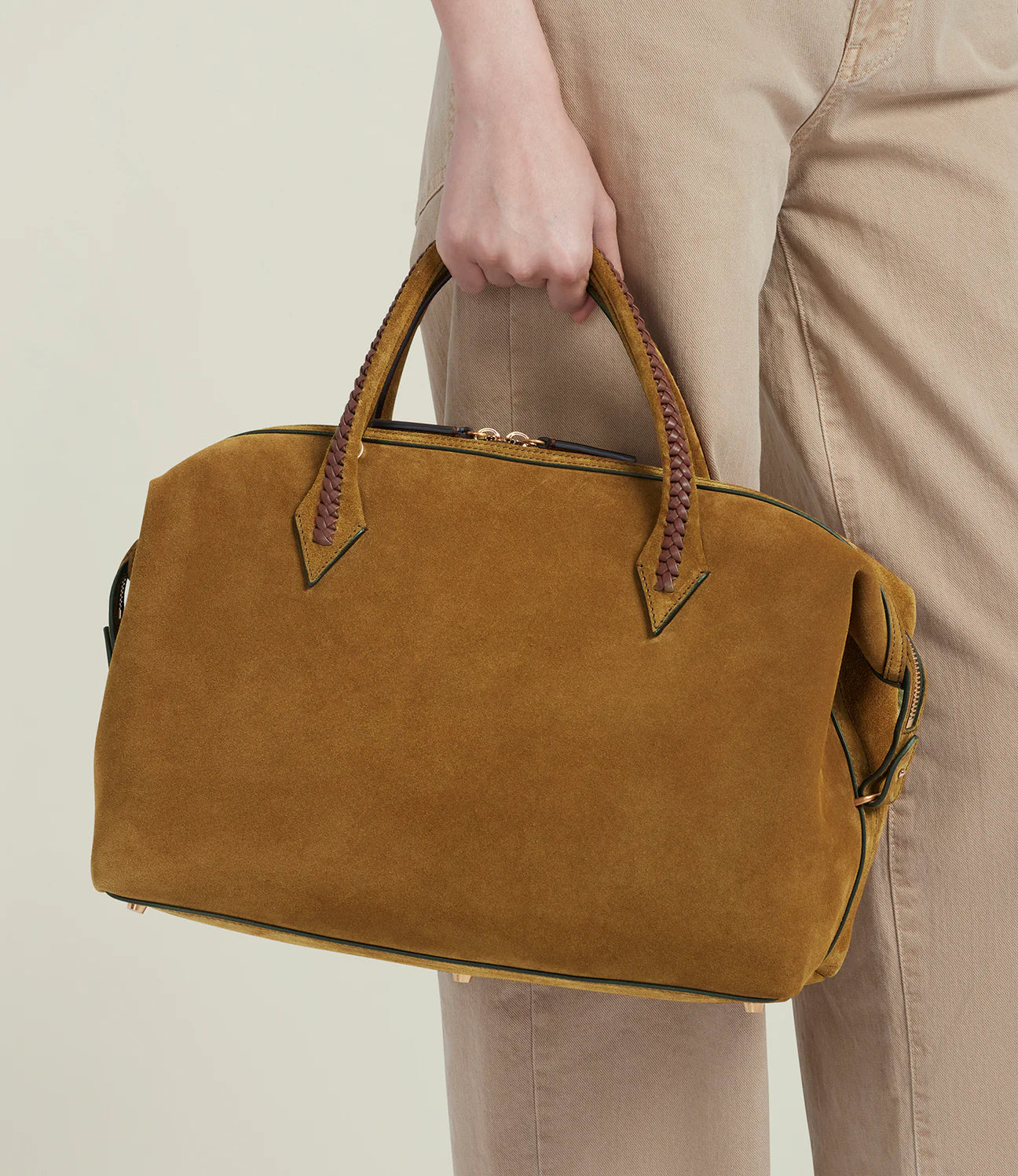Of the highest quality, our Italian suede is exquisitely rich and soft to the touch while also exhibiting a hard-wearing durability. Attesting to its pedigree, without showing signs of pilling, increased use and wear lead to a desirable patina and a character of age to emerge thus documenting your relationship with your bag over time.